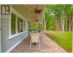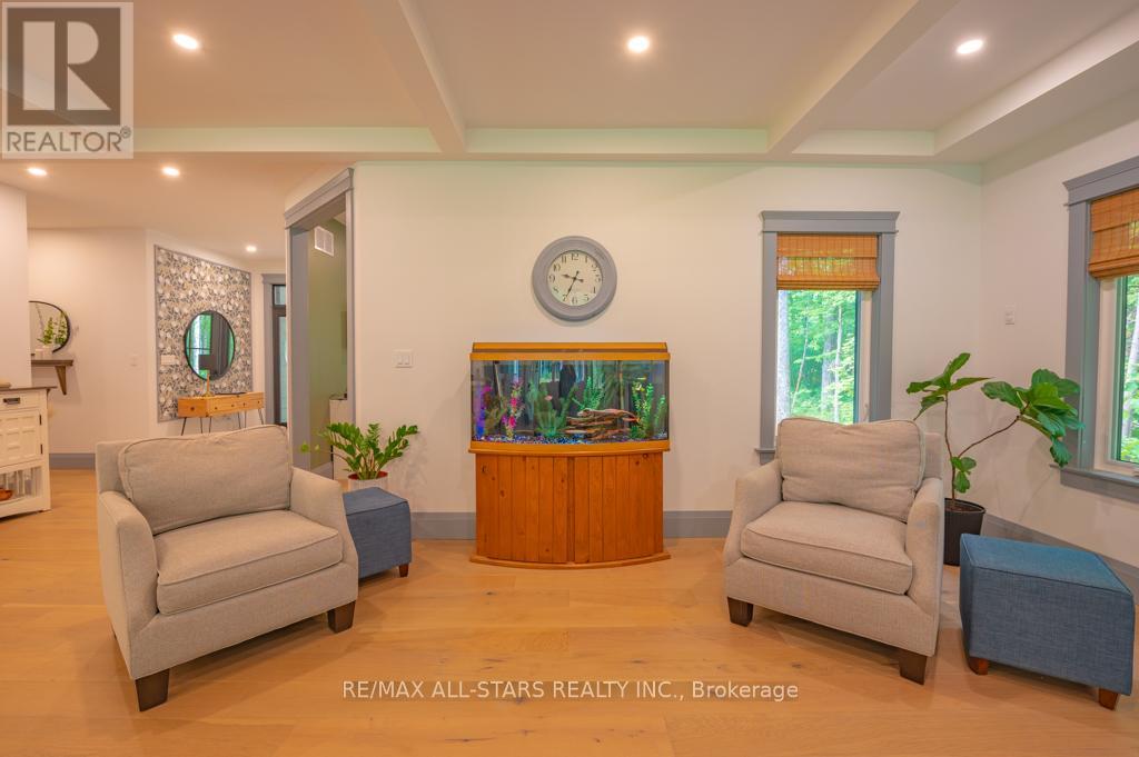 LUXURIOUS CUSTOM HOME IN A PREMIUM VILLAGE LOCATION ON A 1 ACRE PROPERTY! 3000 square foot bungalow with 5 bedrooms & 3 baths. The professionally landscaped gardens bring you into a covered stamped concrete porch which brings you inside to the light filled open concept main area. Coffered ceilings, Napoleon fireplace, heated White Oak floors and the Kitchen with professional appliances & commercial sized freezer & fridge, SS vent hood, 48' Jenn Air Range with double oven, SS griddle & grill, Italian quartz counters with huge island. The modern primary suite offers walk through closet, tray ceiling, gleaming 4 piece bath w/dual showers, soaker tub & a view of the peaceful backyard. Entire home was built using highest quality materials & finishes. PVC siding, radiant floor heating, On Demand HWT, R40 insulation w/R80 in the attic, oversized door, architectural mouldings, custom laundry room with black granite counters. Home guy with built in sauna, tons of walking & biking trails, marinas, boat launches & close to downtown Bobcaygeon. (id:61423)