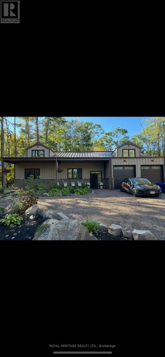 Experience Modern Country Living in Style! Discover this custom steel-built Barndominium, completed in 2022 and perfectly set on a private 1-acre lot. Located In Norland In the Heart of cottage country. This home Blends durability with high-end design, this 4 potential 5 bedroom home offers a lifestyle that is as practical as it is luxurious. As you enter the grand entrance you're greeted with soaring ceilings, expansive windows, and a sleek modern aesthetic filled with natural light. At the heart of the home, the massive chefs kitchen features premium cabinetry, walk -in pantry with coffee bar, a large built-in island overlooking the spacious dining and living areasperfect for entertaining or family gatherings. The backyard contains a large covered patio with a brand new hot tub, and a fire pit area to truly enjoy privacy and nature. The primary suite is a private retreat with a spa-inspired ensuite and walk-in closet, while three additional bedrooms provide flexibility for family, guests, or a home office. The second floor mezzanine overlooks the great room. It hosts a bedroom with a large closet, a bonus room, office area and sitting lounge. Comfort is elevated with radiant in-floor heating, ductless heat pumps, while modern conveniences include a GenerLink generator hook-up, EV charger. Built with solid steel construction, this residence ensures unmatched strength, energy efficiency, and low maintenance, an investment built to last. Outside, enjoy the peace of rural living with space to relax, entertain, or simply take in the beauty of the Kawartha countryside. This is more than a home its the Kawartha Lifestyle, redefined. (id:61423)
