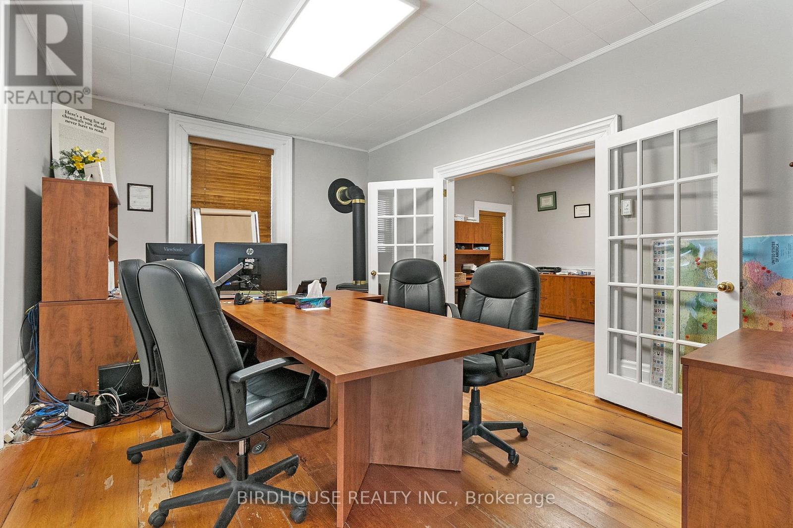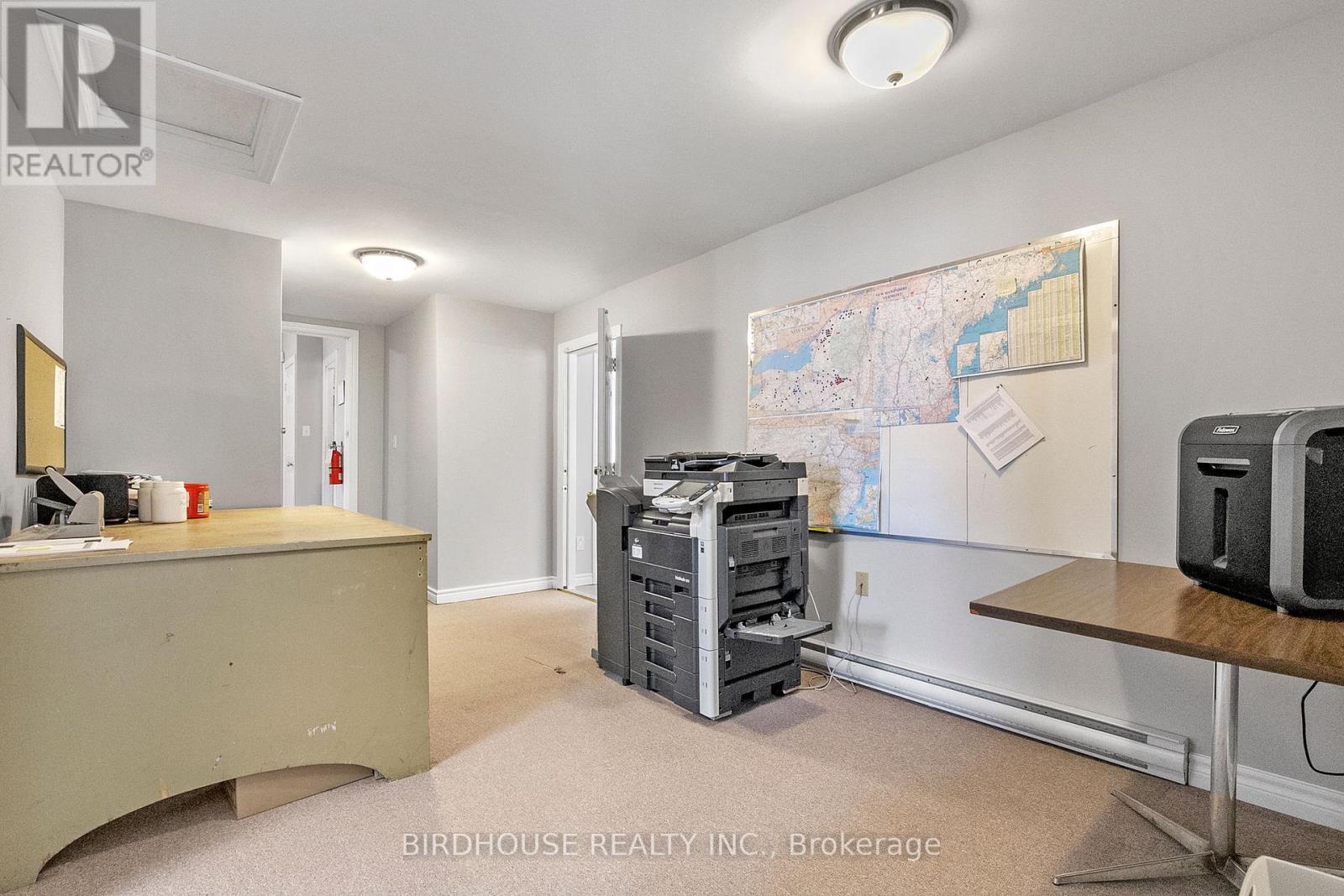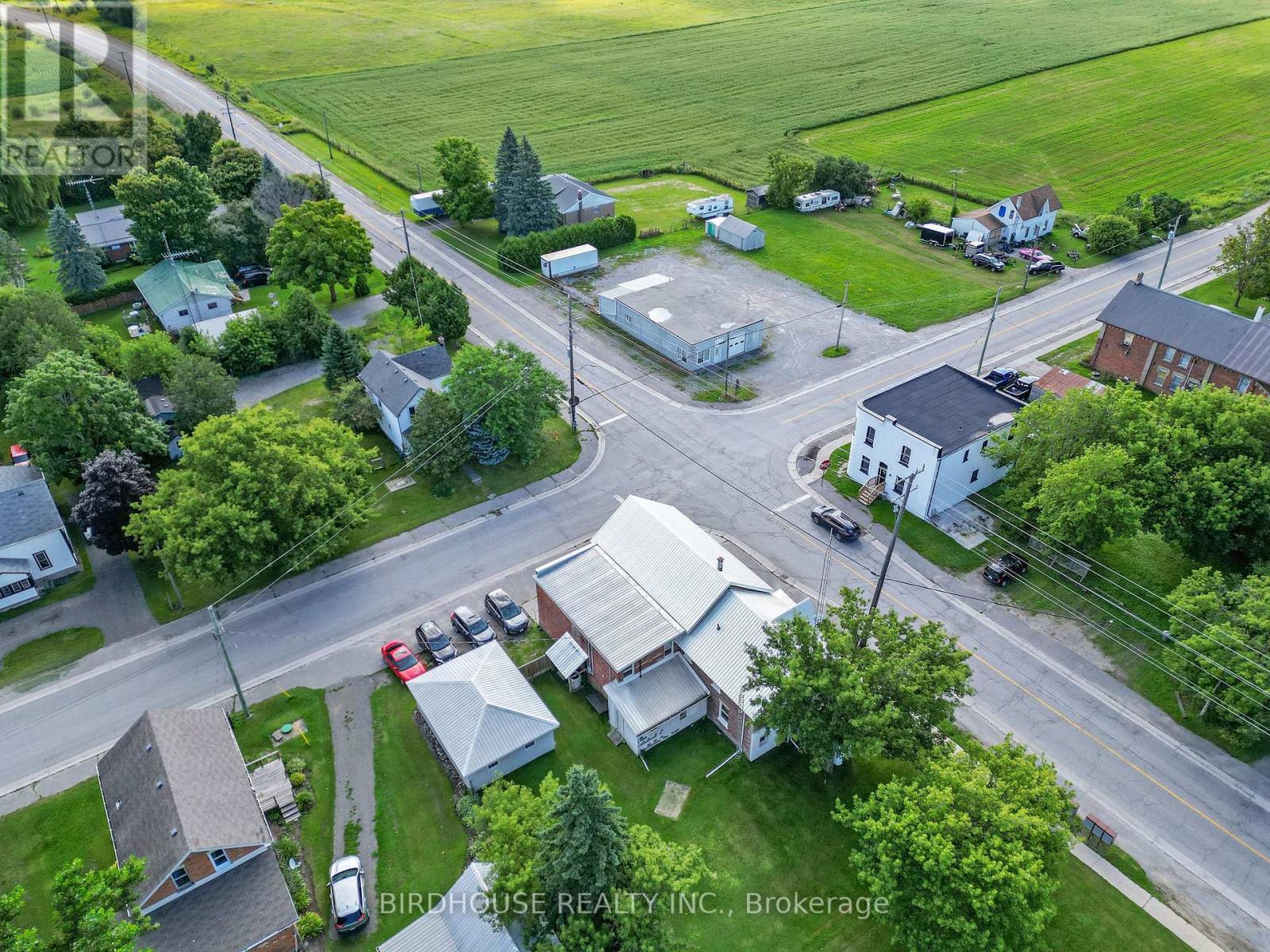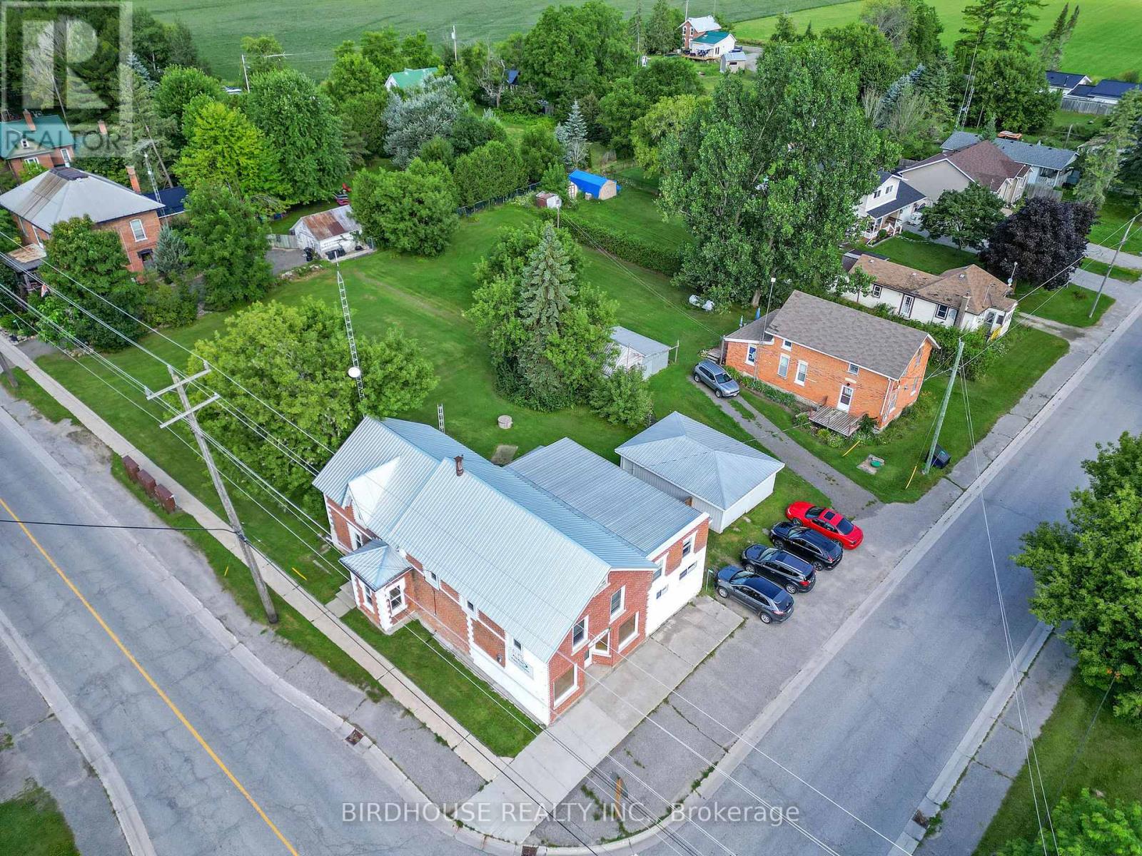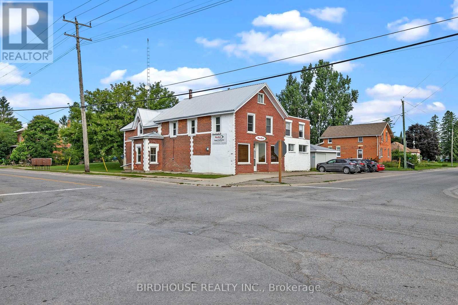 A well-maintained & updated 4458 square foot two-story brick building in Cambray. Located in Cambray at the busy junction of Elm Tree Rd & Highway 9, just minutes outside Lindsay & under an hour to Peterborough & Port Perry. Large spacious corner lot (0.41 acres) with room for additional buildings & parking. Currently used as a large office building. Commercial & residential uses permitted. Rear part of the building is already setup for a 3 bedroom 1 bathroom with kitchen living quarters for a business owner. The building could also be split into two separate office spaces with separate entrances, hydro & HVAC systems. Bonus detached 20'x 28' double garage with concrete floor. Commercial (C1) zoning allows for residential use of part of the building along with numerous alternative uses including but not limited to retail sales, health centre, commercial school, business or professional offices, restaurant, upholstering & furniture repair. Numerous updates in the last 10 years, including windows (2017), HVAC (2018), attic insulation (2021) & office renovation (2016). So much potential! (id:61423)