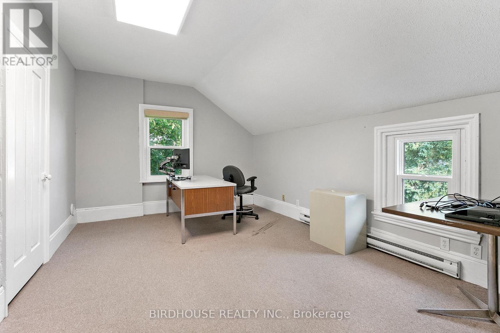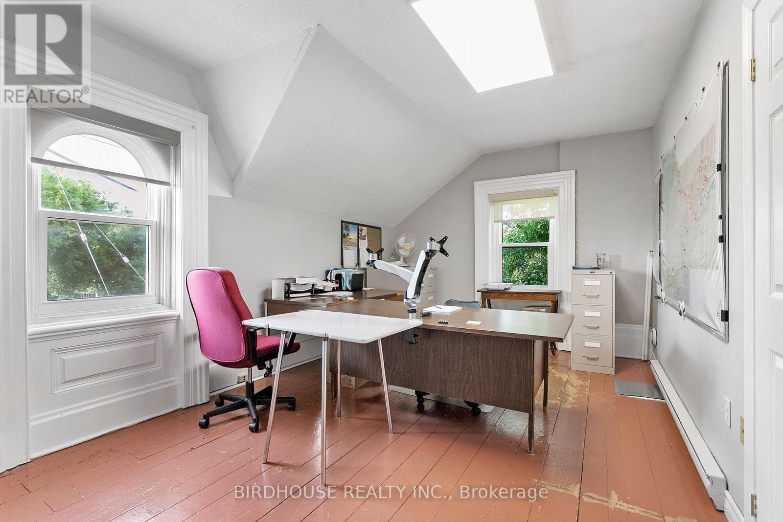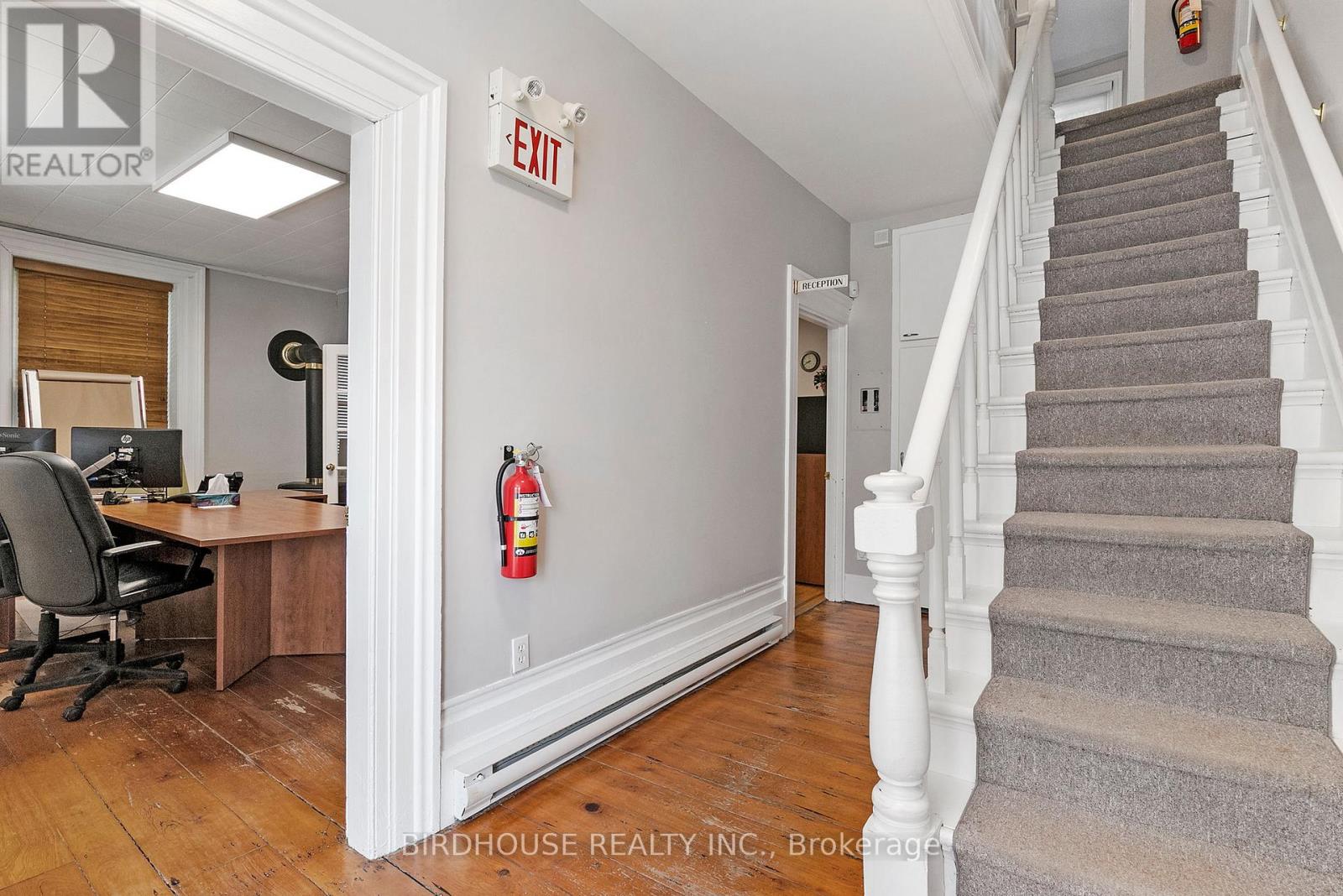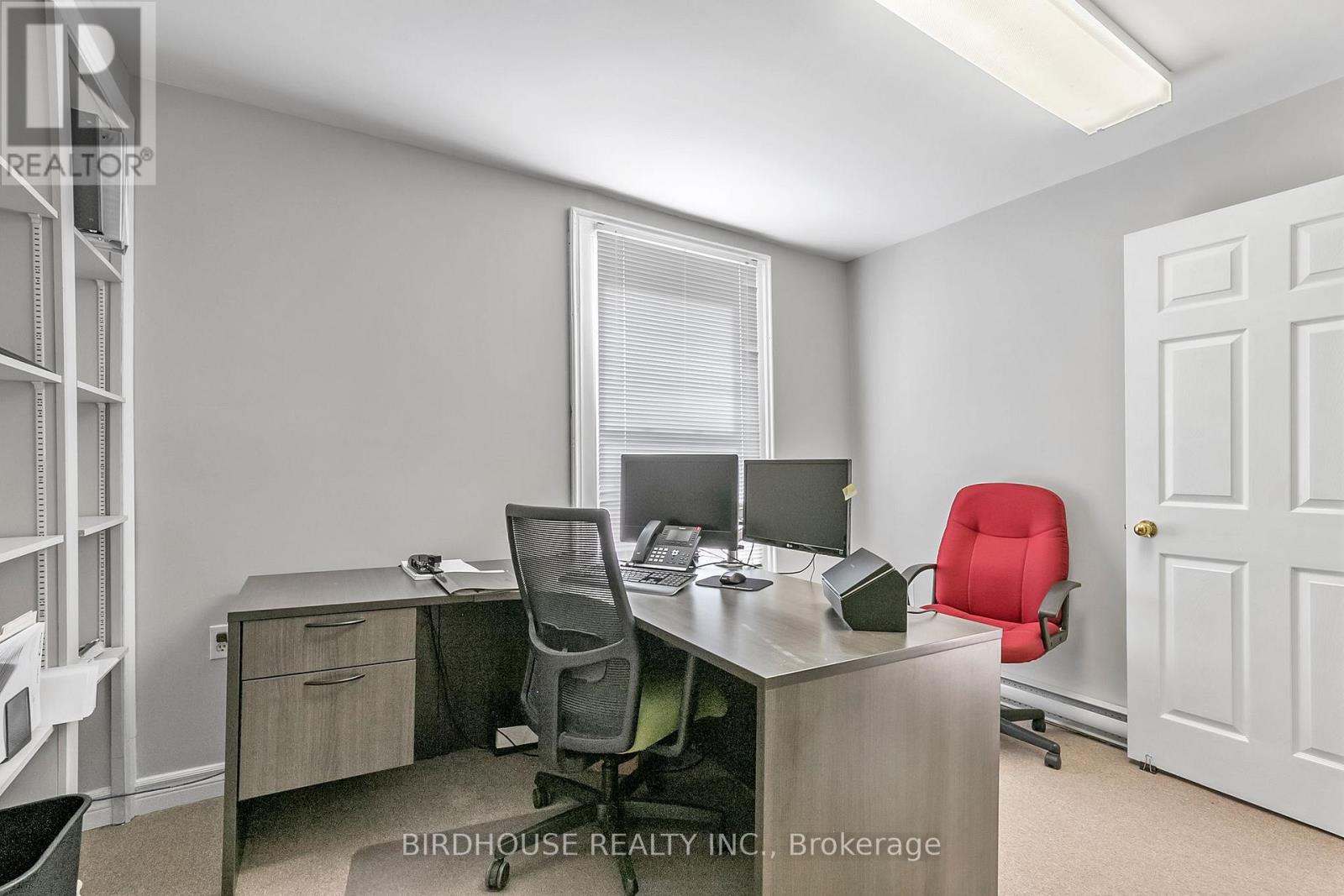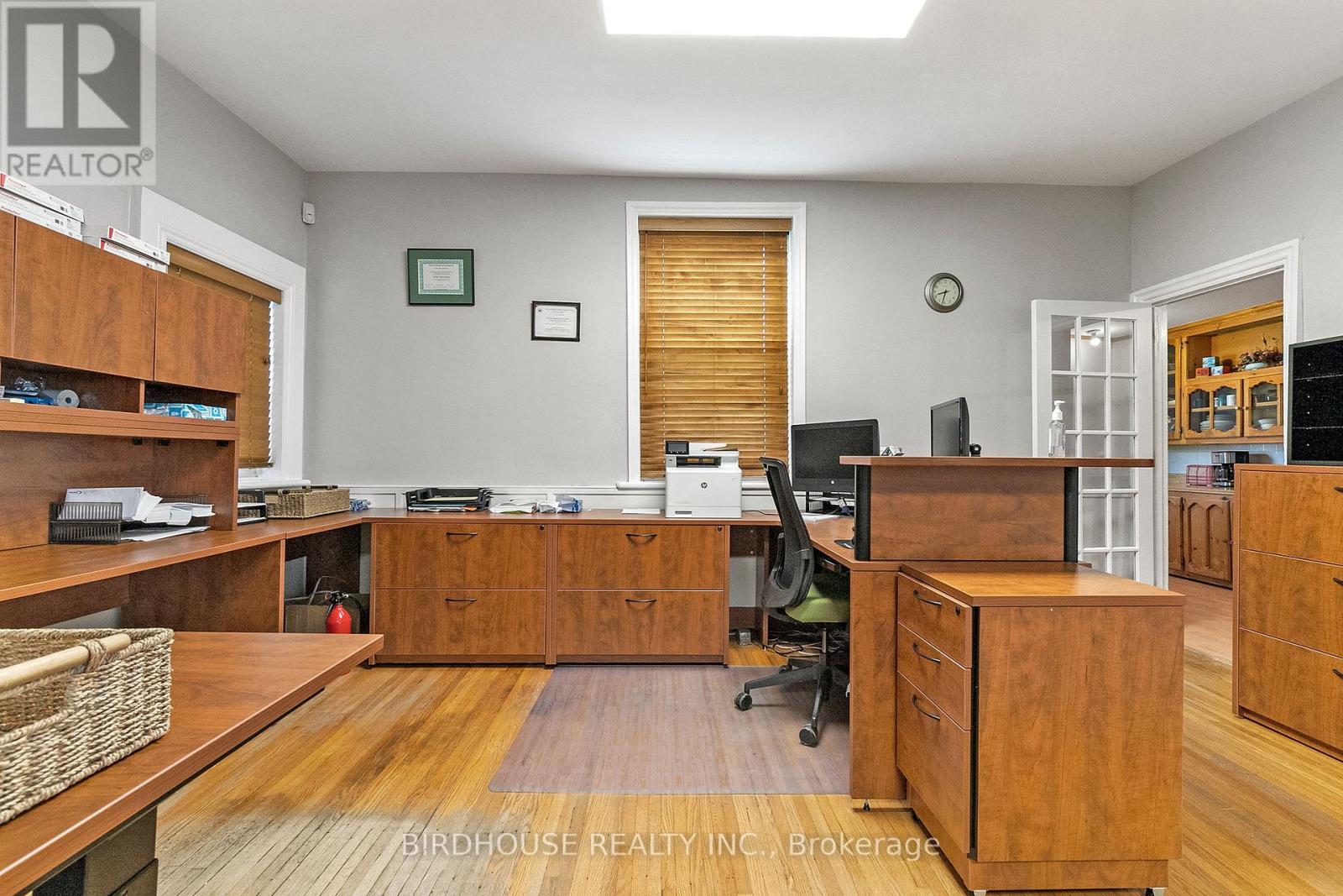 A well-maintained & updated 4458 square foot two-story brick building in Cambray. Located in Cambray at the busy junction of Elm Tree Rd & Highway 9, just minutes outside Lindsay & under an hour to Peterborough & Port Perry. Large spacious corner lot (0.41 acres) with room for additional buildings & parking. Currently used as a large office building. Commercial & residential uses permitted. Rear part of the building is already setup for a 3 bedroom 1 bathroom with kitchen living quarters for a business owner. The building could also be split into two separate office spaces with separate entrances, hydro & HVAC systems. Bonus detached 20'x 28' double garage with concrete floor. Commercial (C1) zoning allows for residential use of part of the building along with numerous alternative uses including but not limited to retail sales, health centre, commercial school, business or professional offices, restaurant, upholstering & furniture repair. Numerous updates in the last 10 years, including windows (2017), HVAC (2018), attic insulation (2021) & office renovation (2016). So much potential! (id:61423)