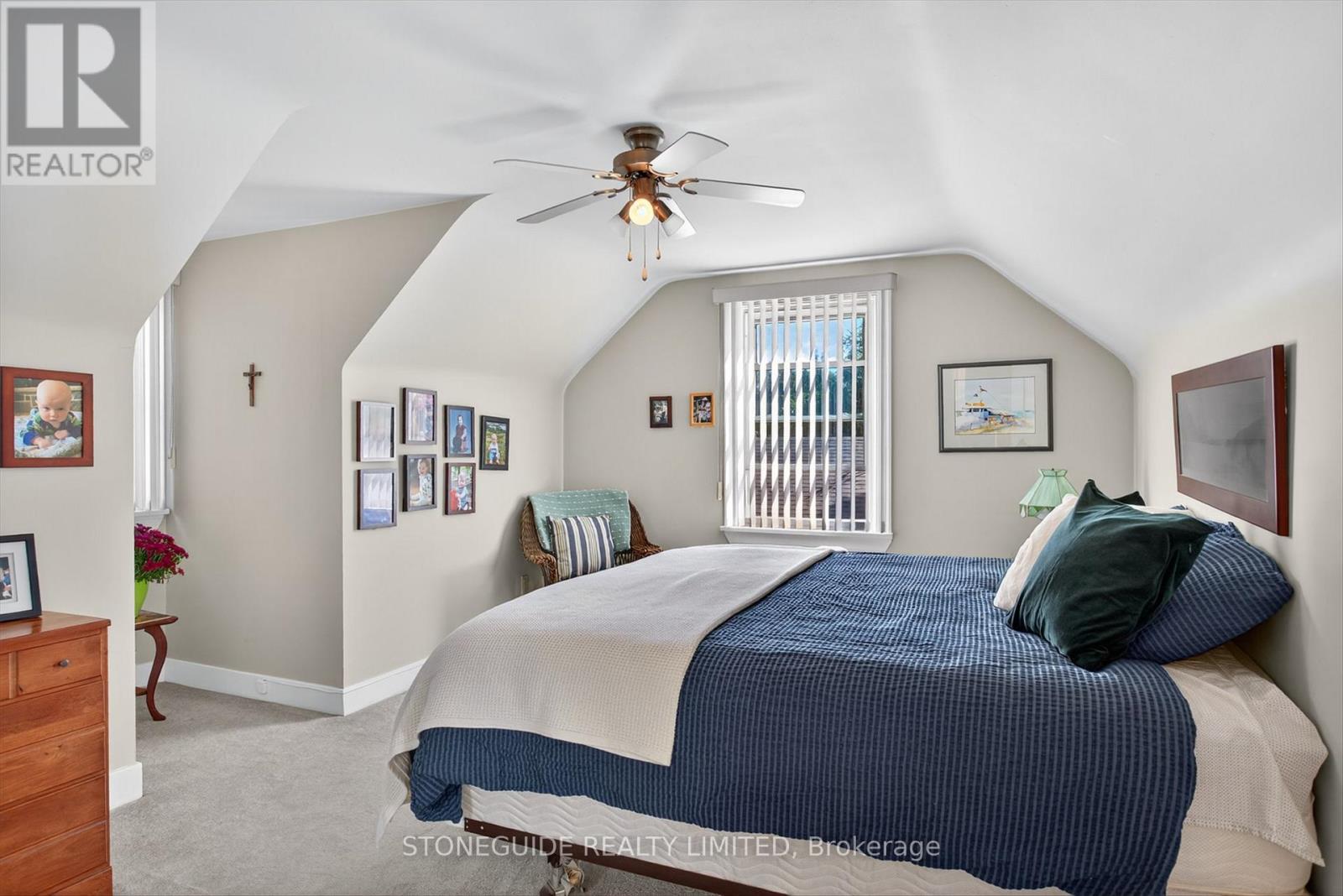 Here's a rare find. An East City charmer on a well treed 88' x 178' private lot. Offering move in convenience, this 3 bedroom home offers immediate occupancy. The main level offers an open concept feel with spacious eat in kitchen with work island, formal LR with cozy gas fireplace (hardwood under carpet) a newly updated 3 pc bath with laundry and third bedroom now used as a den. 2 large bedrooms on upper level, both with hardwood under carpet and a 3 pc bath with air message soaker tub. Primary enjoys a walk in closet and the second bedroom offers an unfinished bonus room above the living room. Lower level offers above grade windows in the rec room complete with gas woodstove, a 4th bedroom, 3 pc bathroom and walk up from the laundry. The detached garage was built in 2001. Some of the many updates include shingles '18, MF bath in '23 as well as windows and eave troughs. The wrap around porch offers a place to unwind and enjoy the community feel of East City. (id:61423)
