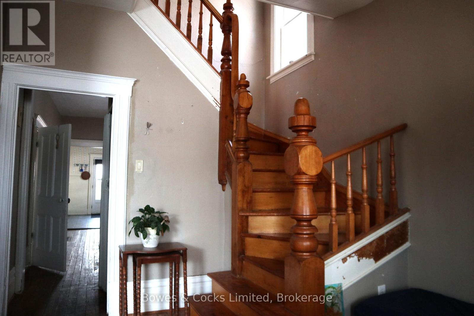 Built in 1900, this solid double brick Queen Anne Design century home sits proudly on a quiet side street on the desirable west side of the bridge in Campbellford. Brimming with character and potential, this grand 3-bedroom, 1 1/2-bathroom home is ready for its next chapter - offering an incredible opportunity to renovate and restore it to its original elegance. Inside, you'll find spacious principal rooms, two kitchens, and flexible living spaces. The living room has been thoughtfully divided to create two separate rooms, though the wall could easily be removed to return the space to its former openness. Upstairs, a wall was remove in the hallway that once separated the main home from a self-contained apartment, allowing for versatile living arrangements. The newel post, stair railing, and stained glass windows are still in original condition. The antique fireplace in the den has been decommissioned. The included 1-bedroom apartment features its own ground-level entrance. Kitchen, with laundry, on the main floor, bedroom and bathroom on the second level - ideal for multi-generational living, guests, or potential rental income. Shingles were replaced in 2015, gas furnace 2015, and most windows 2020. The second floor 3-piece bathroom has been combined with a bedroom and is in roughed-in condition. Enjoy morning coffee on the covered front porch, and take advantage of the small detached garage currently used for storage. Perfectly located within walking distance to everyday conveniences including No Frills, Tim Hortons, Canadian Tire, and the scenic canal walking trail. Campbellford offers a full range of amenities, including the new Sunny Life Recreation and Wellness Centre, three local golf courses, a hospital, dental offices, a variety of restaurants and services. This is a rare opportunity to own a stately piece of Campbellford's history and bring it back to its grand presence. (id:61423)