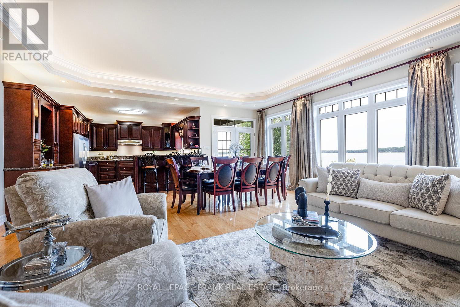 Experience perfection from the moment you arrive at this stunning custom-built Waterfront Home, just 15 minutes north of Port Perry. The property welcomes you with a beautifully designed interlock stone driveway, complemented by elegant wrought iron fencing & meticulously placed armour stone landscaping continuing seamlessly to the spectacular views over Lake Scugog. Open the door to discover sophisticated architectural design featuring coffered ceilings, a striking Travertine stone fireplace, and rich hardwood floors. Each principal room is designed to capture breathtaking panoramic lake views, offering a lifestyle of unparalleled beauty. The heart of the home is a chef's dream kitchen, blending elegance and functionality. It boasts custom wood cabinetry, high-end stainless steel appliances, and granite countertops, complete with a spacious breakfast bar perfect for everyday living and entertaining. The open concept living & dining area is flooded with natural light from floor-to-ceiling windows & pot lighting inside & out. Step through the garden doors to a deck crafted for relaxation or entertaining, with unobstructed views of Lake Scugog's serene waters. The primary suite is a sanctuary, featuring his & her custom walk-in closets and a spa-inspired ensuite with a custom stone shower & luxurious Jacuzzi tub. The lower level is ideally set up for multi-generational living or additional entertainment space. It includes a walkout to the lake & pond, separate entrances, a recreation room, & additional living spaces with a kitchen, two bedrooms, and a games/exercise area. For those with plenty of toys, you'll love the oversized double upper and lower garages with a staircase to the lower level plus a large loft. With convenient access to the GTA, Markham, and Thornhill, this breathtaking home is approximately 50 minutes away. Your private waterfront paradise is calling you! Don't miss this one-of-a-kind impeccable property! (id:61423)