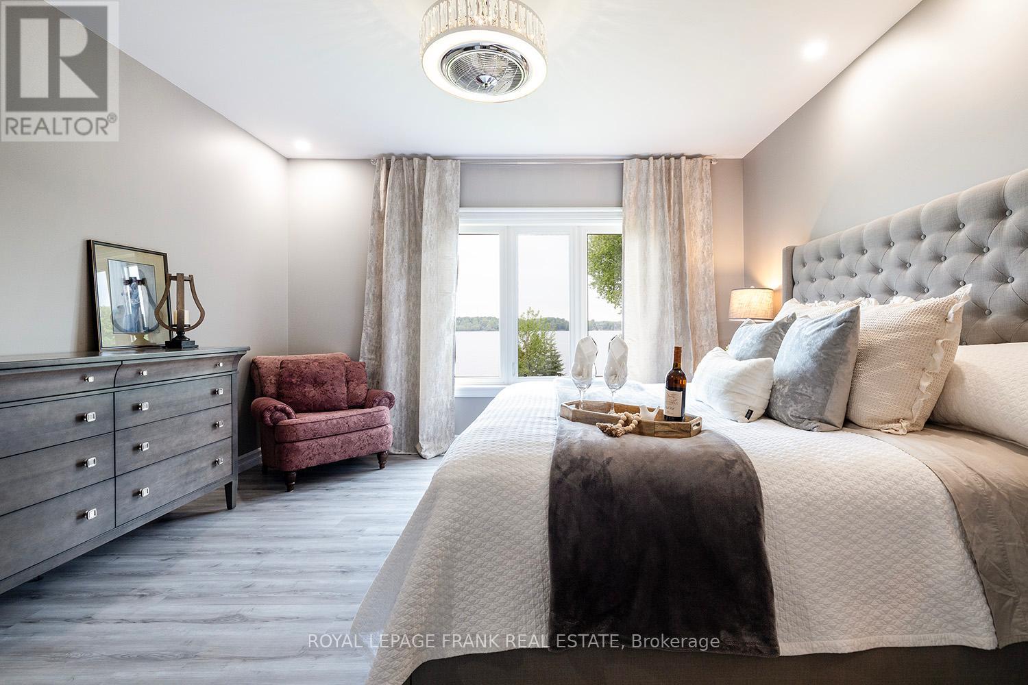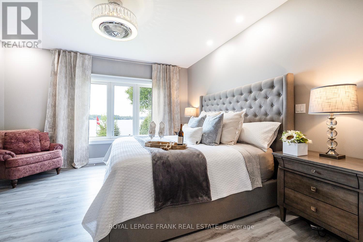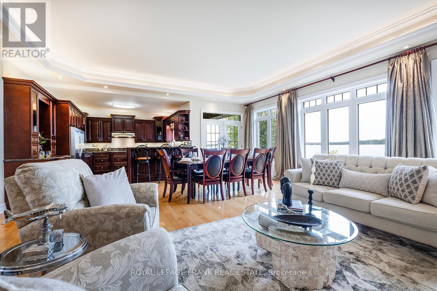 You CAN Have It All - Luxury Waterfront Living with Easy GTA Access! Opportunities like this on Lake Scugog are rare. This stunning custom-built waterfront home is ideally located just 15 minutes north of Port Perry & approx 50 minutes to the GTA, offering the perfect balance of luxury, privacy & convenience. From the moment you arrive, the impressive interlock driveway, wrought iron fencing, & armourstone landscaping create a striking first impression while drawing your eye to the spectacular panoramic lake views. Inside, sophisticated architectural details elevate the home, including coffered ceilings, hardwood floors, travertine stone fireplace & beautifully designed principal rooms that capture breathtaking water views. The chef-inspired kitchen is the heart of the home with custom wood cabinetry, granite countertops, stainless steel appliances & a breakfast bar ideal for everyday living & effortless entertaining. Bright open-concept living & dining areas are filled with natural light through expansive windows & enhanced by extensive pot lighting. Step through the garden doors to a lakeside deck-perfect for entertaining or enjoying peaceful mornings overlooking the water. This is the lifestyle buyers wait for. The primary suite offers a private retreat with his-and-her walk-in closets & a spa-inspired ensuite featuring a Jacuzzi tub & custom roll-in stone shower. The fully finished lower level adds exceptional versatility with a walkout to the lake, separate entrances, recreation room, second kitchen, two additional bedrooms & flexible space ideal for guests or multi-generational living. Car enthusiasts & hobbyists will appreciate the oversized upper & lower double garages with interior accesses & a large loft for additional storage. Rarely does a property offering this level of luxury, space & waterfront lifestyle become available so close to the GTA. Move quickly to secure your private lakefront retreat & be ready to enjoy the upcoming waterfront season! (id:61423)