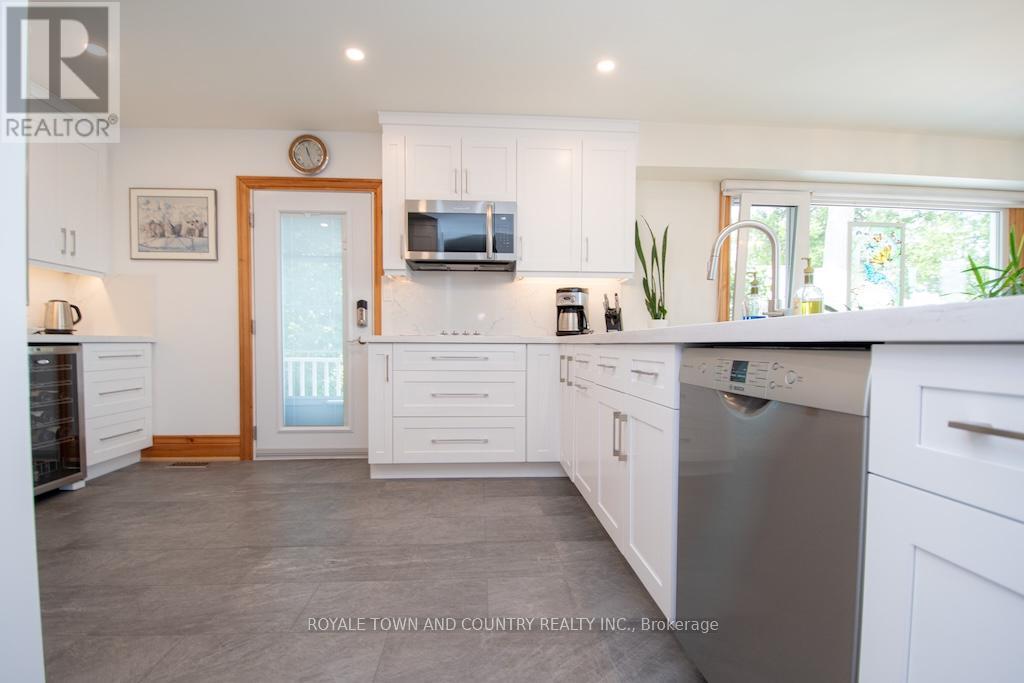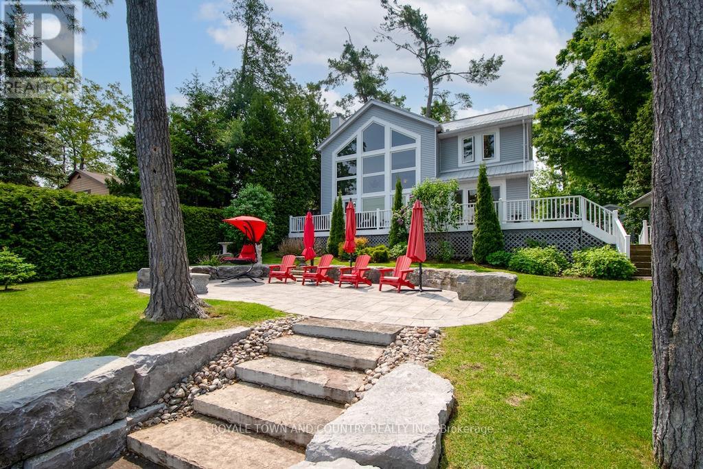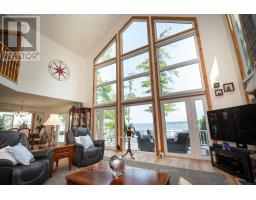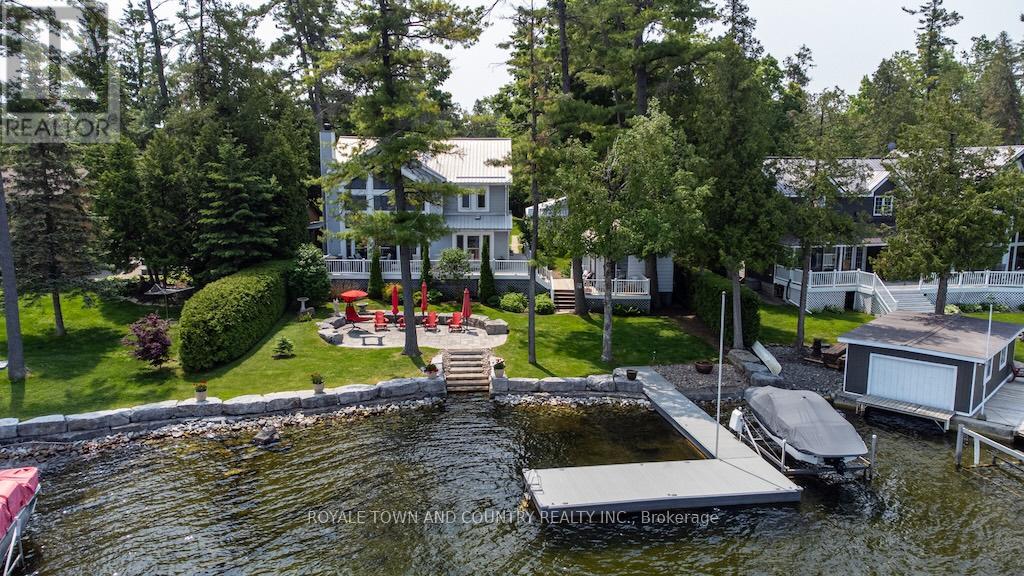 Sought-After Balsam Lake Waterfront Retreat! Welcome to your dream home on the highly desired shores of Balsam Lake! This beautifully updated 5-bedroom, 2.5-bathroom home offers the perfect blend of luxury, comfort, and unbeatable lakefront living. Facing west, you'll enjoy breathtaking sunsets and expansive views from the comfort of your own living room thanks to soaring 24-ft cathedral ceilings and stunning floor-to-ceiling windows.The newly renovated kitchen is a chefs delight, and multiple large decks provide the ideal setting for entertaining or relaxing while soaking in the scenery. The shoreline features an armour stone front, a permanent maintenance-free dock, and a hard bottom perfect for swimming and excellent boating right from your backyard. The second-floor living area is a show stopper, offering panoramic views of the lake, while a cozy bunkie adds even more charm, complete with a 2-piece bathroom, living space, and a spacious bedroom for guests or extended family. Additional features include a two-car garage, a handy shed for storage, and beautifully landscaped grounds. This is a rare opportunity to own a premium waterfront property in a truly spectacular location. Lake life starts here dont miss your chance! (id:61423)