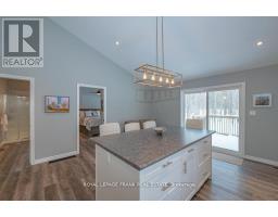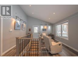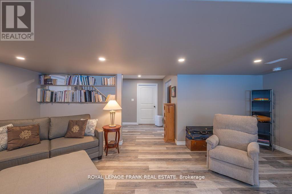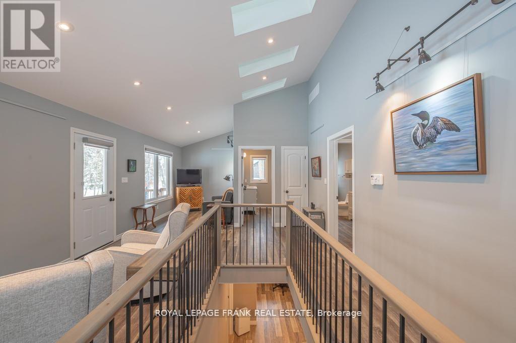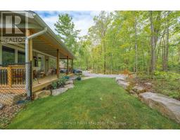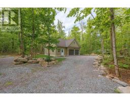 Lovely custom bungalow located a short walk to a public access on Pigeon Lake. Launch your kayak, take a swim or just relax and enjoy the lake views. Situated on a double lot with great curb appeal and an inviting covered front veranda. Tastefully finished with 2 main floor baths, vaulted ceilings, large bright kitchen with sitting area, stainless steel appliances and a walkout to a large deck. The lower level is nicely finished with a lovely rec room, 2 piece bath, office, lots of storage and the potential for another bedroom. Fabulous double car garage. 1100 square feet of space including a heated workroom and 2-piece bath on the main floor. The second floor consists of a large open room and is heated and cooled by a heat pump. Enjoy the private yard which is nicely landscaped with Armour stone, a partially fenced area, fire pit and a hard wired generator. Located on a township road in an area of nice homes, close to marinas and a short drive to the town of Buckhorn. (id:61423)
