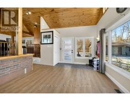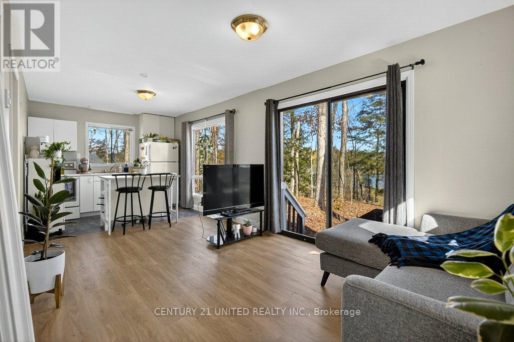Stepping into resort-style living, this 2+2 bedroom, 2 bathroom brick bungalow sits on a sprawling 6+-acre property with 500ft of clean water frontage. Tucked away at the end of a quiet dead-end road, the home offers complete privacy while still being close to everyday conveniences. The property features everything you could imagine: an oversized heated shop, a secondary dwelling with 1 bedroom, separate kitchen and bathroom with rental or multigenerational living potential, a backup generator (2025), and an outdoor wood furnace that provides cozy heat all winter. Recent updates include a new dock (2023), a new oversized composite deck (2024), new vinyl plank flooring throughout (2024), stainless steel appliances, and numerous other upgrades. Perched on the stunning shores of Julian Lake, this home offers peace and seclusion while keeping you connected. Just a short 1 km walk away, you'll find the Woodview General Store, which also serves as the post office and LCBO. For added convenience, the fire station and pickleball court, park are just a 5 minute drive down the road. The property is only 15 minutes from Apsley, with its public school, grocery store, shops, restaurants, and community centre with a skating rink and gym. Lakefield is just 20 minutes away, and Peterborough, with its hospital and larger shopping options is only 40 minutes away. This home combines the best of both worlds: the feeling of a private resort retreat with the comfort of knowing amenities and community are never far. (id:61423)