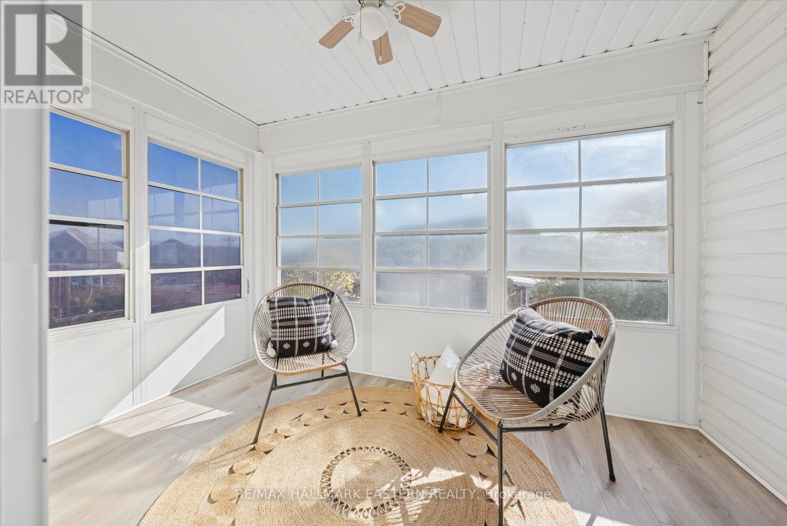 **Get the full experience - watch the reel now!** Updated and move-in-ready bungalow that offers modern comfort, flexibility, and a prime location in Peterborough's desirable east end. Just steps from schools, parks, Beavermead Beach, and trails. Step inside to discover a bright open-concept living and dining area, vaulted ceilings ideal for entertaining or relaxing by the gas fireplace in the main-floor great room. The eat-in kitchen provides plenty of space for casual dining and opens to a screened-in 3-season room. The main floor includes two spacious bedrooms, a primary suite with a 4-piece ensuite, main-floor laundry, and approximately 1,500 sq. ft. of living space. The walk-out basement offers incredible potential for an in-law suite, featuring a large rec room, three additional bedrooms, a 4-piece bath, and laundry hookups - ideal for guests, extended family, or rental income opportunities. Outside, enjoy a double driveway, detached double-car garage, and a fenced level yard. 2431 Marsdale Drive combines space, flexibility, and comfort in one of Peterborough's most sought-after neighbourhoods. Book your private showing today before it's gone! (id:61423)