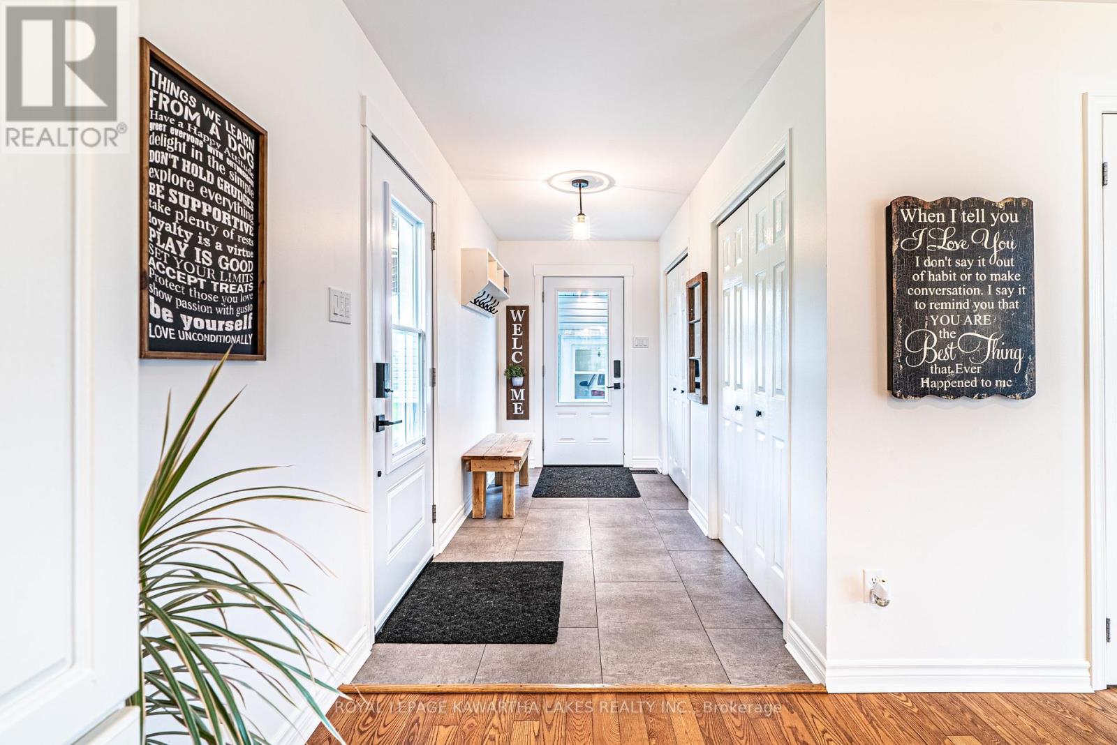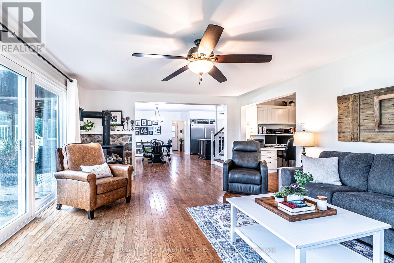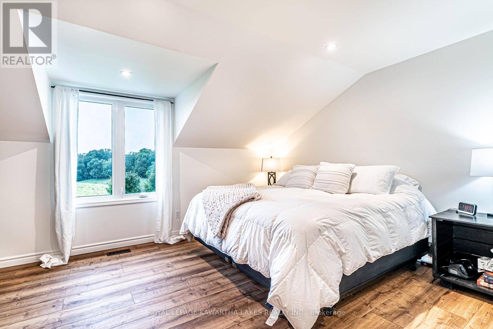 The beautiful Burnt River flows along approximately 1.3 kms of this perfectly maintained country Homestead north of Fenelon Falls, with the updated 3 bedroom, 3 bath farmhouse positioned back from the road providing stunning views of the countryside from every window. 2500 sq ft of relaxed living space with a large, open concept living room, dining room & kitchen and two 12 ft patio doors that provide abundant natural light. The beautifully appointed kitchen and baths have all been updated, as well as flooring & windows throughout the main living space. A large primary bedroom has a sitting area, stunning 4 piece ensuite and walk-in closet. New (2020) 4 car, radiant in-floor heated garage/shop is a dream for the small business owner, outdoorsman or hobbyist. This working farm has 46 acres of crop land and an additional 20 acres of pasture. Two small barns on the farm add to the charm of times gone by. The clean waters of the river offers swimming, fishing & boating into Cameron lake on the Trent System from your own backyard. A full list of updates is available upon request -nothing has been overlooked! Located 15 minutes from Fenelon Falls, Coboconk and Bobcaygeon (id:61423)
