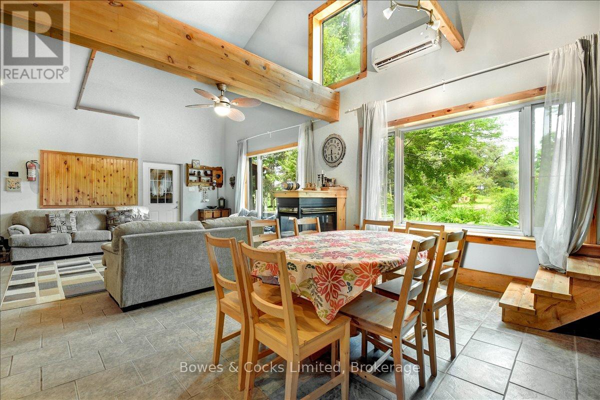 Welcome to this lovely family paradise tucked among the pines! Located South of the hamlet of Coe Hill, just before end of The Ridge Road, you'll come across this delightful log/wood home with a red steel roof giving the property its Red Roof Lodge moniker. More-than 4000 sq. ft., this home hosts to six bedrooms, three bathrooms and ~9 acres of land to explore, this property has a TON of potential. Recent renovations include the creation of an in-law suite or accessory apartment, all new flooring (2021), new septic (2021), new furnace (2021), second kitchen (2021), third bathroom (2022), second laundry (2022), ductless mini HVACs (2022), two extra bedrooms (2022), updated with Smart Home capabilities, and the don't forget the back-up solar panel system (2022)! Spacious and inviting - and with cathedral ceilings & skylights throughout to keep things light, bright, and airy - this home comes with all of the bells and whistles to make rural living comfortable and enjoyable. Whether you're entertaining on the back deck, having fun with the kids on the playset, or taking your meditation/yoga out to the traditional Mongol yurt, the Red Roof Lodge has a little something for everyone and every occasion. Enjoy hiking? Backing the property are HUNDREDS of acres of Crown Land with multiple trails that are not easily accessed by the public. A "rural comfort", there are multiple sheds/barns for storage or animals, a cedar sauna, and two new hardtop gazebos. A "'techy' comfort", the property benefits from full WiFi coverage, and electrical run to each of the outbuildings (yurt & gazebos included!), so you never have to feel disconnected from the world while out in your own remote getaway spot. If you are planning a big event over for the holidays, the accessory apartment quickly reconnects to the rest of the house when the extended family come visit. Peace, tranquility, and adventure can be found here at 2449 The Ridge Rd - come see for yourself all that this home has to offe (id:61423)