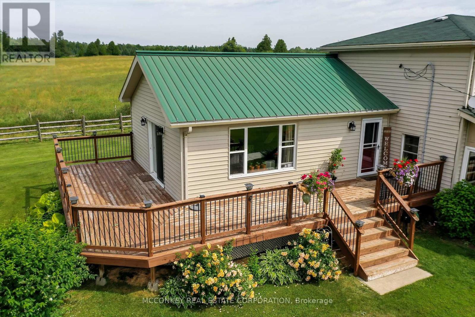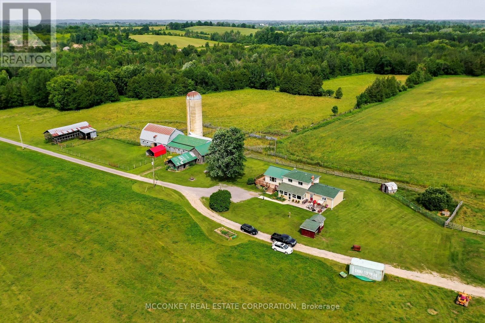 Discover your perfect farm oasis just 15 minutes East of Peterborough. This expansive 122-acre property, situated on a municipally maintained road, offers approximately 55 workable acres, 23 acres of pasture land and beautiful scenery! This property also boasts approximately 750 ft. of Indian River waterfrontage. The historic two-storey log home, built in the 1800s, has been recently tastefully updated and expanded. Enjoy the bright main floor family room addition and relax in the enclosed 4-season sunroom. The modern eat-in kitchen features maple cabinets, granite countertops, and a new wood stove. The spacious living area opens to a wrap-around deck through patio doors. The home includes the primary bedroom on the main floor with 3-piece ensuite, a main floor 4-piece bathroom, 3 bedrooms upstairs, maple hardwood in kitchen and luxury vinyl throughout main floor, laminate flooring upstairs and in living room. New septic system as of 2022.For those looking to operate a working farm, the property has a 100 ft. barn with 9 stalls, a 60 ft.x40 ft. drive shed, a concrete silo, and a workshop! Property has two roll #s: 150601000210700 & 150601000210401. Both roll numbers are included in the listing and are being sold together. (id:61423)