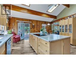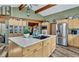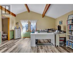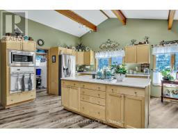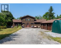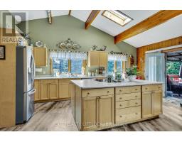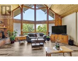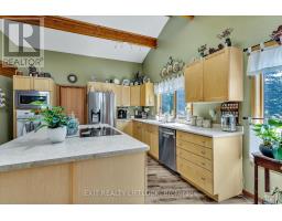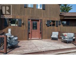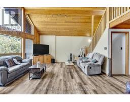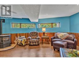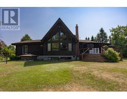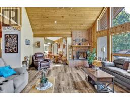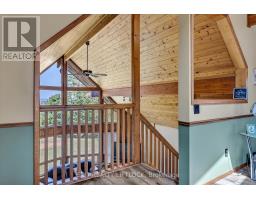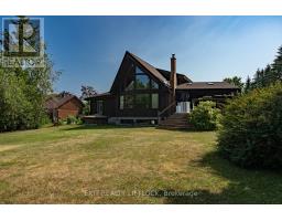 WOW! A great room with cathedral ceiling and a literal wall of windows. This wood house is a pleasure to show. Natural light pours in with the high ceilings and you capture an amazing sense of space. Next to the great room is the kitchen with a large island and built-in appliances. Sky-lights allow additional natural light, with a patio door leading to a covered rear deck. The main floor laundry/pantry has an exit to the side yard. The roomy primary bedroom has a 3pc ensuite with heated flooring, and a patio door to the rear yard. The loft overlooking the great room is set up as an office, but with it's 2pc bath would be a comfortable bedroom. In the lower level is a rec room with laminate floors and a pellet stove. Downstairs you will find a 4th bedroom, den, workshop/craft room and utility room. There is an oversized double detached garage with hydro and pellet stove. The property has a large lot that allows for many options for family fun. The property belongs to an Association with access to a private waterfront park with available docking. Annual fee is $200. (id:61423)