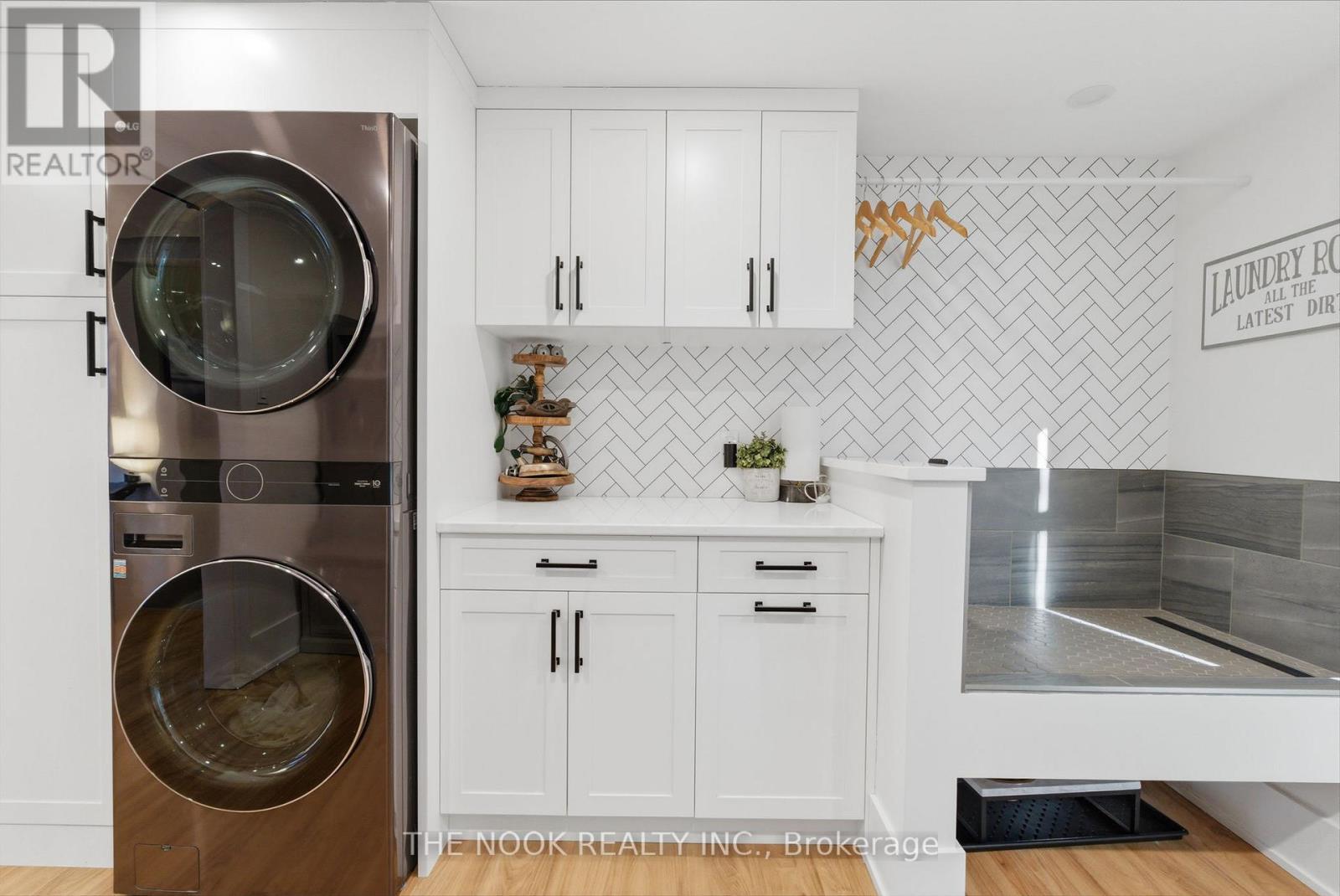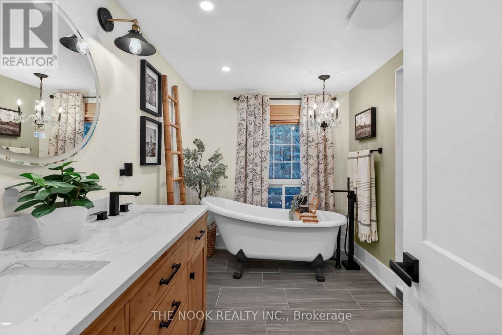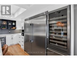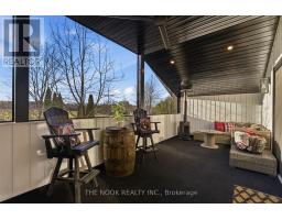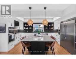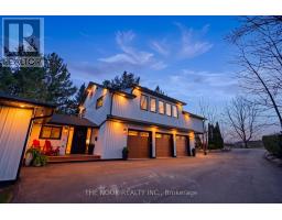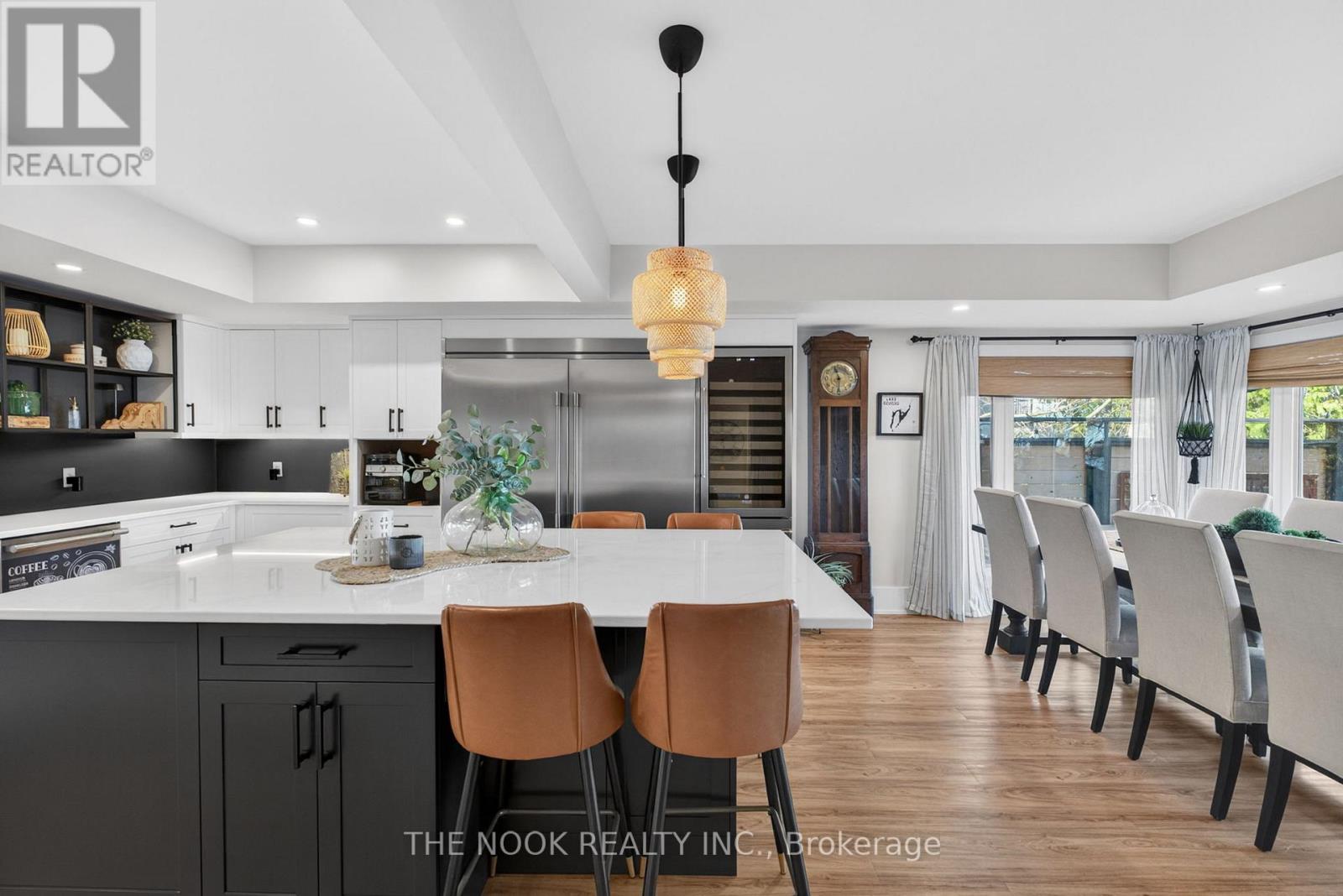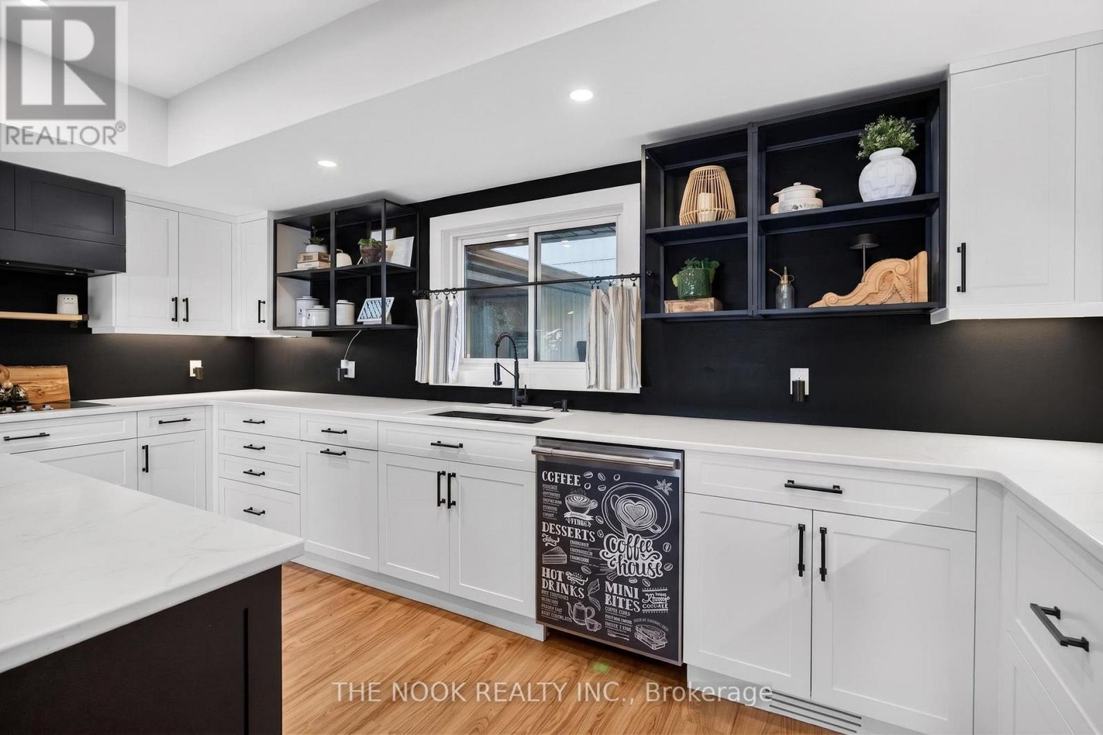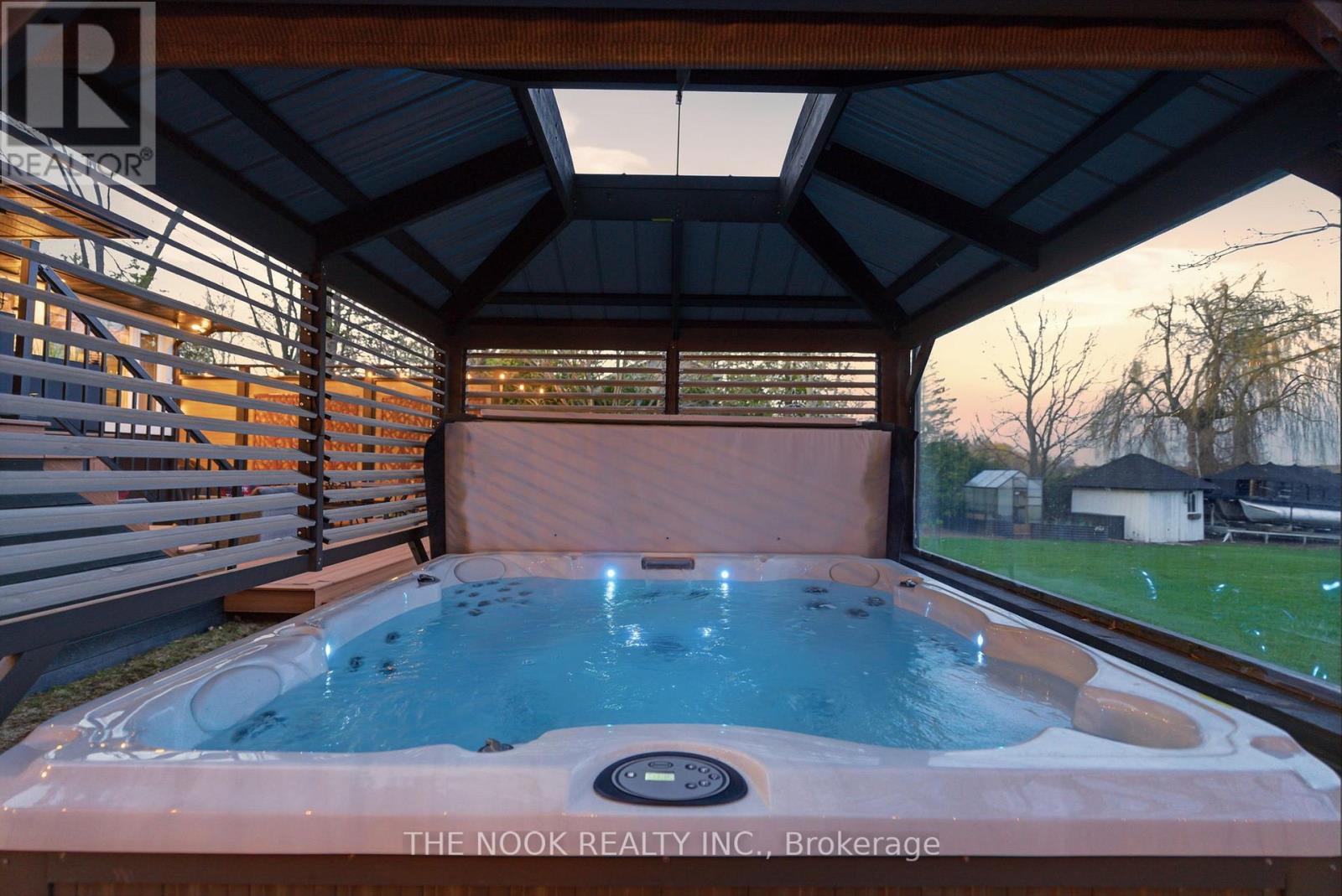 A rare waterfront estate offering uncompromising luxury, privacy, and multi-generational versatility, this fully reimagined residence presents a refined lakeside lifestyle defined by architectural clarity, elevated design, and exceptional south-facing views. Rebuilt in 2023 with over $1M in curated upgrades, the home blends modern sophistication with effortless livability, delivering comfort, scale, and understated elegance. Expansive principal living spaces are anchored by picturesque lake-facing windows that flood the interior with natural light and open to a composite terrace designed for quiet mornings, sunset entertaining, and year-round connection to the water. The kitchen is executed with precision and restraint, featuring quartz surfaces, an oversized island, premium appliances, and bespoke cabinetry integrated into the open-concept layout. Designed for privacy and flexibility, the residence includes a serene upper-level loft retreat with kitchenette, bar, and screened-in terrace, along with a fully finished walk-up lower level offering a second kitchen and generous living space, ideal for extended family or discreet guest accommodation. Outdoors, the property is composed as a private waterfront sanctuary with direct lake access, custom dock, expansive entertaining areas, fire feature, hot tub pavilion, and a newly constructed sauna. An unfinished bunkie with hydro offers future potential for guest accommodation, studio, or additional living space. Behind the aesthetics, the home is supported by dual HVAC systems, dual 200-amp service, new septic (2023), upgraded water filtration, spray foam insulation, and integrated security. The insulated three-car garage and workshop adds a WETT-certified fireplace, EV charging, and dedicated workspace with private bath-crafted for those seeking a true waterfront legacy estate. (id:61423)