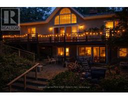 The Gull River is always moving, fresh, alive, and constant, setting the tone for days that start earlier, last longer, and naturally draw you outside. Set on 125 feet of private riverfront, this 3,000 sq. ft. home or four-season cottage blends space, function, and lifestyle in a way that feels effortless from the moment you arrive. The main level is bright, open, and designed for gathering. Three bedrooms, a full bath, and a spacious great room flow seamlessly into the dining area and kitchen, all framed by expansive windows that keep the river in view at all times. Step out to the deck, and you'll find yourself naturally starting the day here, coffee in hand, water moving steadily in the background. Direct access from the attached two-car garage into the kitchen makes everyday living simple, whether coming in with groceries or working on a project. The lower level offers the flexibility that today's buyers are looking for. With a fourth bedroom, full bath, large office, and an expansive family room with adjoining games or dining space, it easily adapts to guests, work-from-home needs, or multi-generational living. Fireplaces on both levels add warmth and character, anchoring the home year-round. Outside is where the property truly opens up. A clean, granite shoreline with deep water invites swimming, boating, and long days on the river. A natural sandbar becomes a destination of its own, while direct access to Shadow Lake expands your time on the water. The flat lawn is ideal for family gatherings, and the private courtyard with a chiminea offers a quieter space to unwind as the day winds down. The detached garage adds valuable space for storage, recreational equipment, or a workshop. This is a property that doesn't wait for the season to begin; it carries you right into it. With space to host, room to grow, and immediate access to the water, it's ready to be enjoyed from the very first warm days of the year. (id:61423)