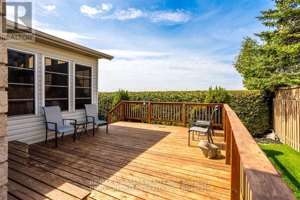 Welcome to this sprawling bungalow tucked away on a quiet in-town street, backing onto lush green space and bordering a municipal park offering a rare blend of privacy and convenience, just minutes from shops, schools, and all amenities . Inside, soaring cathedral ceilings and an airy open-concept layout set the tone for relaxed living. The spacious living and dining areas flow seamlessly into a bright three-season sunroom with a walkout to a large deck perfect for summer BBQs or peaceful morning coffees. The enclosed hot tub adds a touch of luxury, making it an ideal space to entertain or unwind year-round .The main level features two well-sized bedrooms, including a serene primary suite with a walk-in closet, 4-piece ensuite, and private access to the sunroom. Downstairs, the finished lower level offers two additional bedrooms and a full bath perfect for extended family, guests, or a growing family. A welcoming front porch adds even more outdoor living space, perfect for enjoying the peaceful surroundings or planning your next great gathering. This warm, inviting home checks all the boxes for comfort, space, and location truly a must-see! (id:61423)