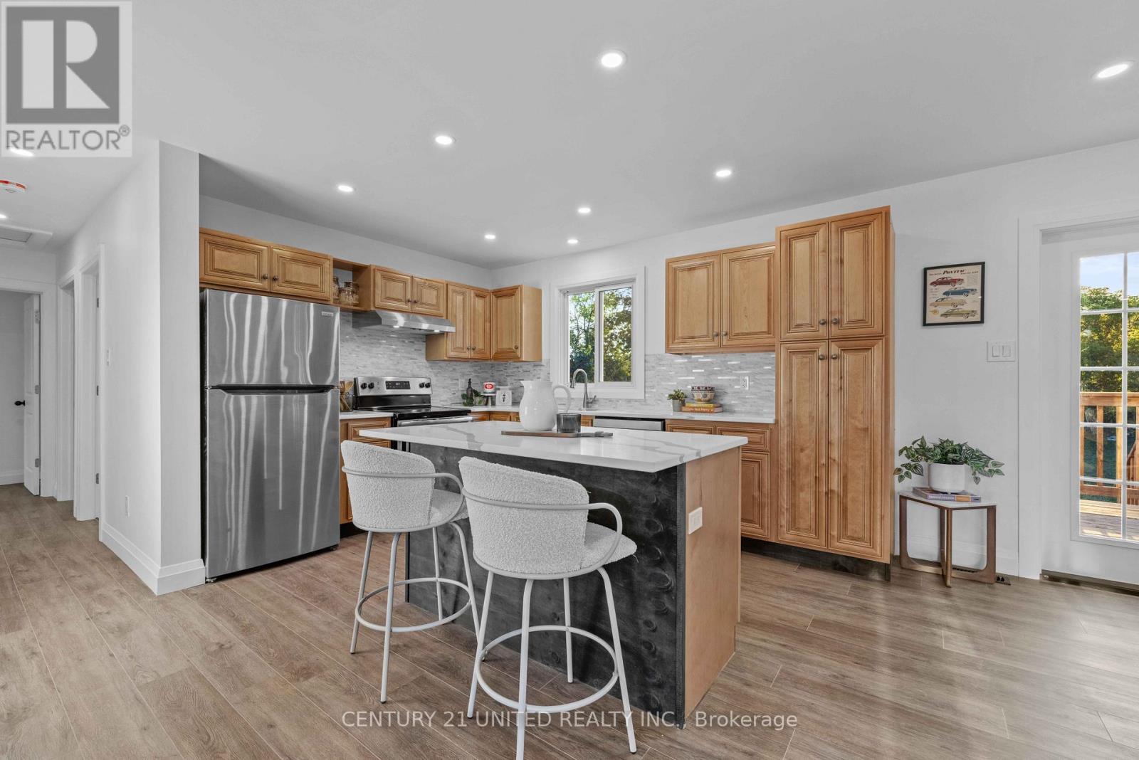 Welcome to Havelock, this beautifully renovated 3+1 bedroom, 2-bathroom raised bungalow nestled in a peaceful and fast-growing rural neighbourhood. An ideal setting for families, professional, or investors looking for long-term value. This turn-key home combines modern upgrades with small-town charm, offering a perfect balance of comfort, style, and functionality. No detail has been overlooked in this extensively updated home. Enjoy peace of mind with a brand-new metal roof, all-new plumbing, HVAC system (heating and cooling), updated insulation, new siding, landscaping, and completely redone interior finished. From the moment you step inside, you'll appreciate the open-concept living space flooded with natural light, modern flooring, custom kitchen cabinetry, quartz countertops, and stainless steel appliances. The lower level features a spacious additional bedroom or home office, a full bathroom, and a large family room. Perfect for multi-generational living or income potential. The private backyard offer ample space for entertaining, gardening, or simply enjoying the tranquility of rural life. Walking distance to schools, parks, and recreational areas, this property is just minutes from all the essentials such as grocery stores, healthcare services, and more. With growing employment opportunities in the medical field, this area is ideal for healthcare professionals or young families looking to settle down in a vibrant, evolving community. (id:61423)