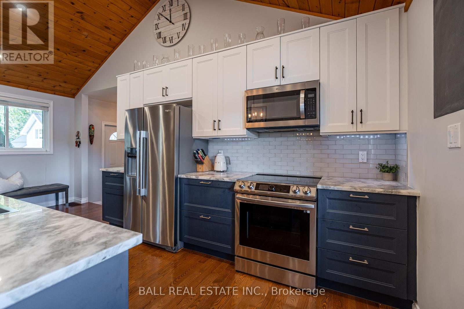 Welcome to this stunning Lower Buckhorn Lake home with a wet slip boat house and three-bay garage. This 3-bedroom, 2-bathroom home completely renovated in 2008 and has been continuously improved since, it combines modern comfort with the serenity of lakeside living. The heart of the home is the 2021 custom kitchen, featuring cathedral ceilings, granite countertops, and updated appliances. Its spacious, open design flows seamlessly onto a large covered balcony overlooking Deer Bay. The main floor includes a large bedroom with four windows and a cathedral ceiling. Also on the main floor is laundry facilities (2021), and a versatile second bedroom/office. The finished basement provides additional living space with a cozy wood-burning fireplace, the third bedroom, and a walk-out to a private patio with easy water access. This home is truly turnkey, with all major systems and features already taken care of. Renovations as follows: In 2008 a Complete home update. In 2021 a New custom kitchen (cabinets, granite countertops, appliances). In 2021 a New Furnace & central air. In 2023 a New three-bay garage with insulated loft space (permit closed). In 2024 a Septic system (permit closed). In 2024 a Metal roof on main house. For those who love the water, this property includes a boat house, docks with a 4 foot depth that goes down to 20 feet - perfect for swimming, boating, and excellent fishing. This property has calm waters, minimal boat traffic, welcoming neighbours, with hiking trails on the other side of the road. This home offers the perfect balance of modern upgrades, spacious living, and a waterfront lifestyle just 20 minutes from downtown Peterborough and 1.5 hours from Toronto. (id:61423)