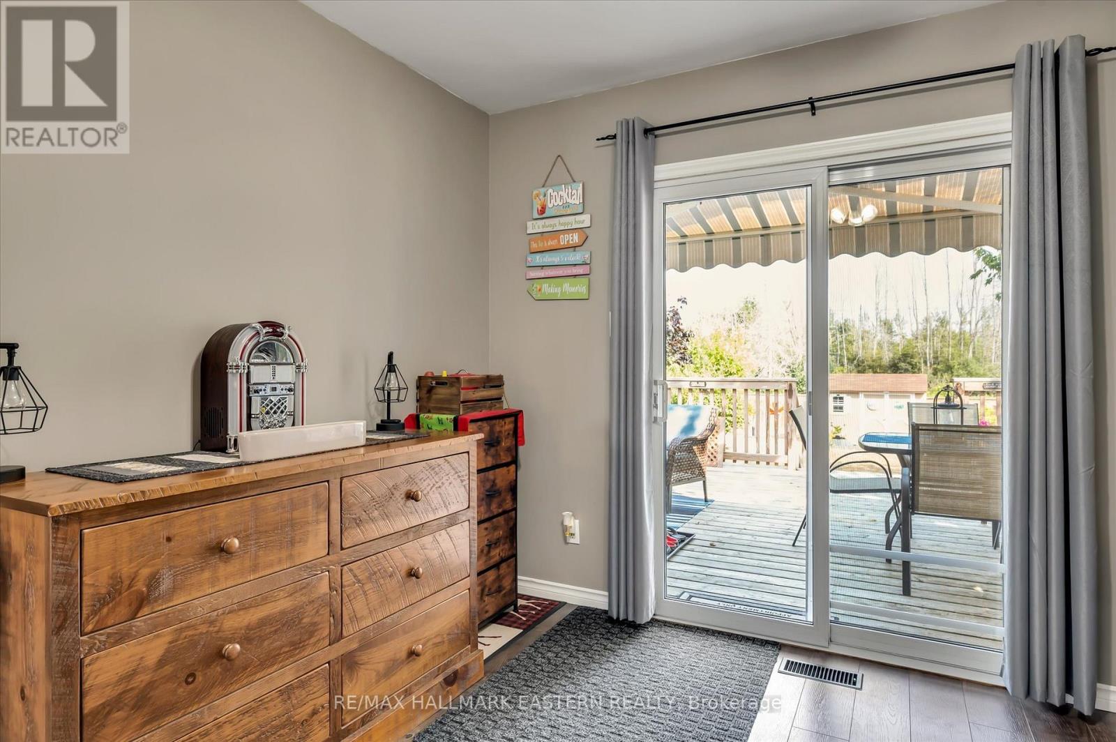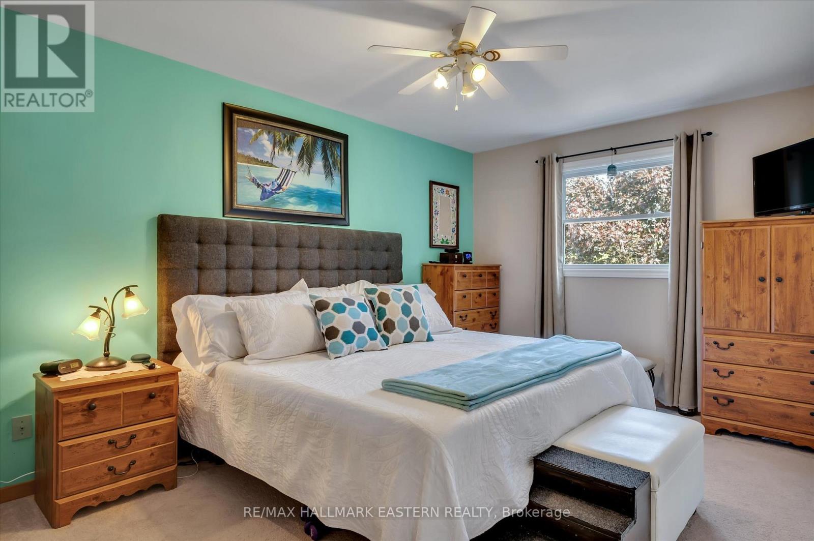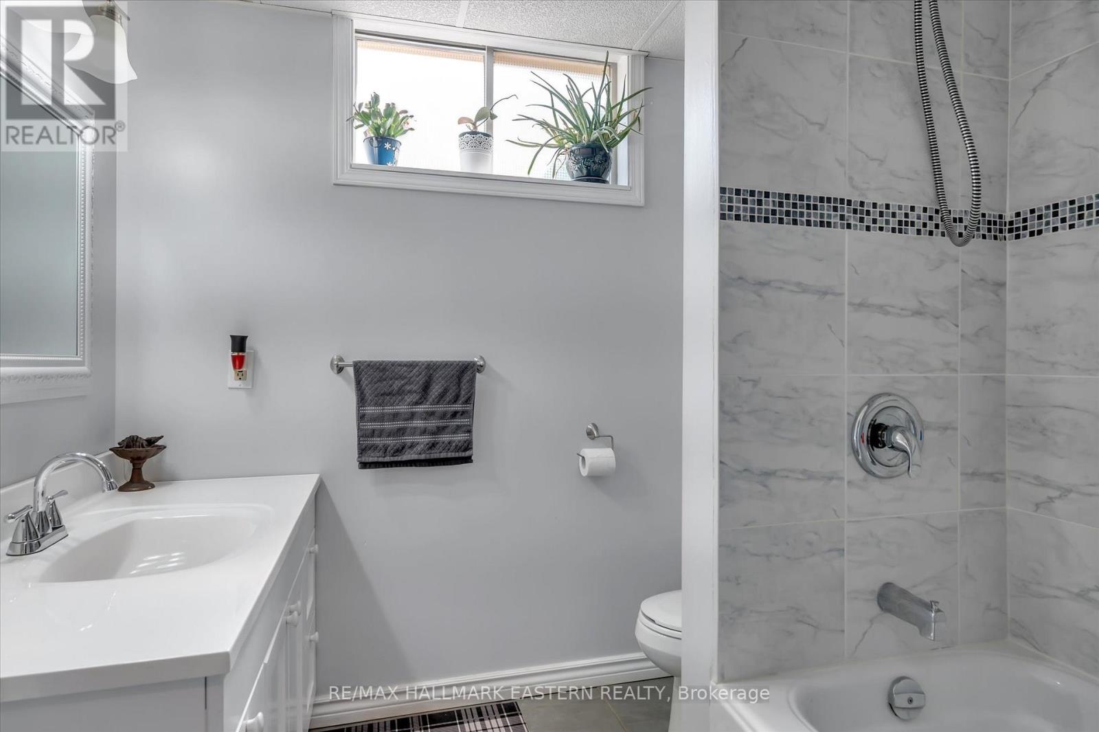 Welcome to this beautifully maintained bungalow located in Peterborough's desirable east end. This move-in ready home offers 2+2 bedrooms and a bright, open-concept main floor featuring a spacious living and dining area, newer kitchen (2018) with updated cabinetry, and a custom solid wood island. The main floor also includes 2 generous size bedrooms, a refreshed 4-piece bathroom and a walkout to a private deck with awning, overlooking a deep, fully fenced backyard with no rear neighbours. The fully finished lower level adds incredible functionality with two additional bedrooms, an updated 4-piece bathroom with tiled tub surround, a large rec room renovated in 2025 with ample natural light, and a workshop and laundry. With a new roof in 2023, this home offers peace of mind and excellent value. Situated within walking distance to schools, parks, and trails and offering easy access to Highway 115 and nearby amenities. This property is ideal for families or downsizer's seeking comfort, space, and convenience without compromise. (id:61423)