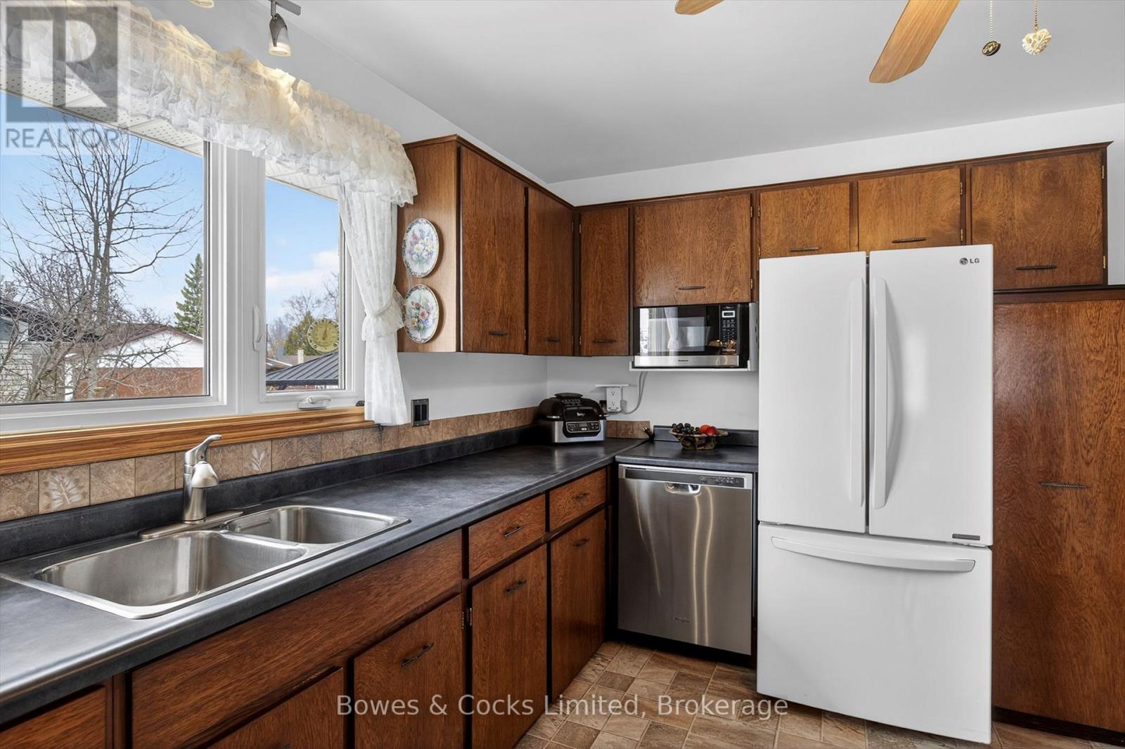 Welcome to this charming 3-bedroom brick bungalow, ideally located just steps from the Otonabee River. It offers picturesque views right from your private front porch complete with a sun shade, perfect for relaxing mornings or evening unwinding. This well-maintained home features both front and side entrances for added convenience. Inside, you'll find a spacious and inviting layout with a large living room filled with natural light from oversized windows, and original hardwood flooring flowing throughout most of the main floor. The generously sized primary bedroom offers comfort and functionality, while additional bedrooms provide flexibility for family, guests, or a home office. The large eat-in kitchen features dark cabinetry and plenty of space for gatherings. A 3-piece bathroom and multiple closets throughout the main level ensure practical living with ample storage. The lower level features a spacious laundry area and a large rec room highlighted by a new gas fireplace with a beautiful brick surround. Unwind in the impressive indoor hot tub, or use the expansive workshop/utility room for hobbies and projects. Step outside to a fully fenced backyard featuring a tiered deck off of the walkout from the third bedroom, a patio with a gazebo, a shed, and thoughtfully designed landscaping and hardscaping. This space is ideal for entertaining or enjoying quiet outdoor living. A fantastic opportunity in a scenic location-this home truly has it all. (id:61423)