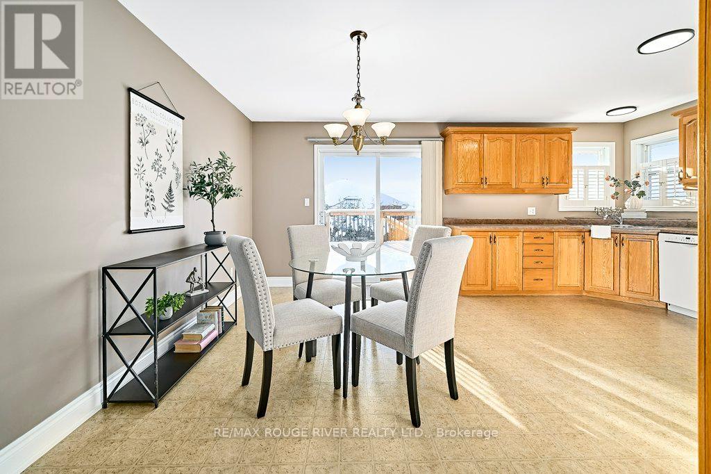 Move in Ready All Brick 2+1 Bedroom,3 Bath Home with An Oversized Dbl Garage in a Family Friendly Neighbourhood ! Large and Airy Design with Loads of Natural Light due to its East West Orientation on the Fully Fenced 51 Ft x 112 Ft Lot. The Eat In Kitchen Boasts Ample Counters and a Corner Double SS Sink and Convenient Under Cabinet Lighting for the Chef ! The Breakfast Area leads to the Sliding doors onto the Large Bbq Deck.Combined Living and Dining Rooms (Super For Large Dinners) and feature Hardwood Flrs and a Picture Window.The Primary Bedroom has a Unique Stepsaver Laundry En-Suite, Plus a Large Bright Wicc and an En-suite 3pce Bath.The Second Bedroom also features a Large Wicc and shares the 4pce Family Bathroom. The Lower Level Boasts a Wet Bar with SS Sink and a Gas Fireplace w/Thermostat.The 3rd Bedroom has a Double Closet and a Large Egress Window, adjacent to Another 4Pce Bath with Spa/Jet Tub ( Think a Peaceful Spa Experience). The Huge Rec Room and Bright Windows Make this a Comfortable Space that doesn't Feel Like a Basement. A Furnace/Utility Room 20 Ft x 17 Ft will provide Ample Storage. Don't Miss this Opportunity to Live in a Well Cared for Home !! Lindsay Sq. Mall, Ross Memorial Hospital, and Schools and Parks All within easy access. (id:61423)