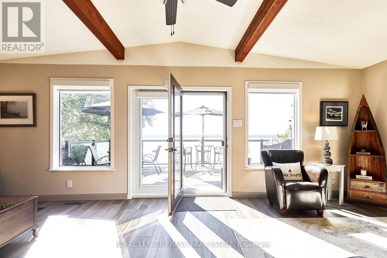 Welcome to 26 Wakeford Rd. where the breathtaking westerly exposure overlooking Lake Scugog provides stunning sunset views setting the perfect mood for evening relaxation. Whether sipping coffee on the deck, entertaining family & friends on the dock or around the campfire, this lovely 4 season waterfront home is perfect for full time living or a seasonal escape. This home truly shows pride of ownership. Every detail has been carefully attended to ensuring a move-in ready experience for new homeowners. Situated on the north shore of Lake Scugog, this is one of the most sought after beaches on the lake, offering great swimming, water sports, fishing & snowmobiling. The vaulted ceiling and open-concept living space creates a bright and inviting atmosphere while the walk-out to the large deck enhances indoor-outdoor living. Sit at the breakfast bar for coffee or enjoy the large dining space where everyone can gather. The primary suite has wall-to-wall closets and space for a sitting area. The lower level features an open living area with a airtight propane fireplace to take the chill off, large windows overlooking the water, wet bar, counters and storage, a four-piece washroom, 2 more bedrooms, laundry/utility room and a separate side door entrance, allowing for endless possibilities. The oversized one car drive-thru garage enables taking boats & toys through to the waterfront, while the shed offers plenty of storage. The manicured grounds and new stone walkways show the exterior has been as lovingly cared for as the inside of this home. A short drive to Lindsay or Port Perry and an easy commute to Hwy. 35 or 407. Do not miss the opportunity to embrace the waterfront lifestyle you have always dreamed of. (id:61423)