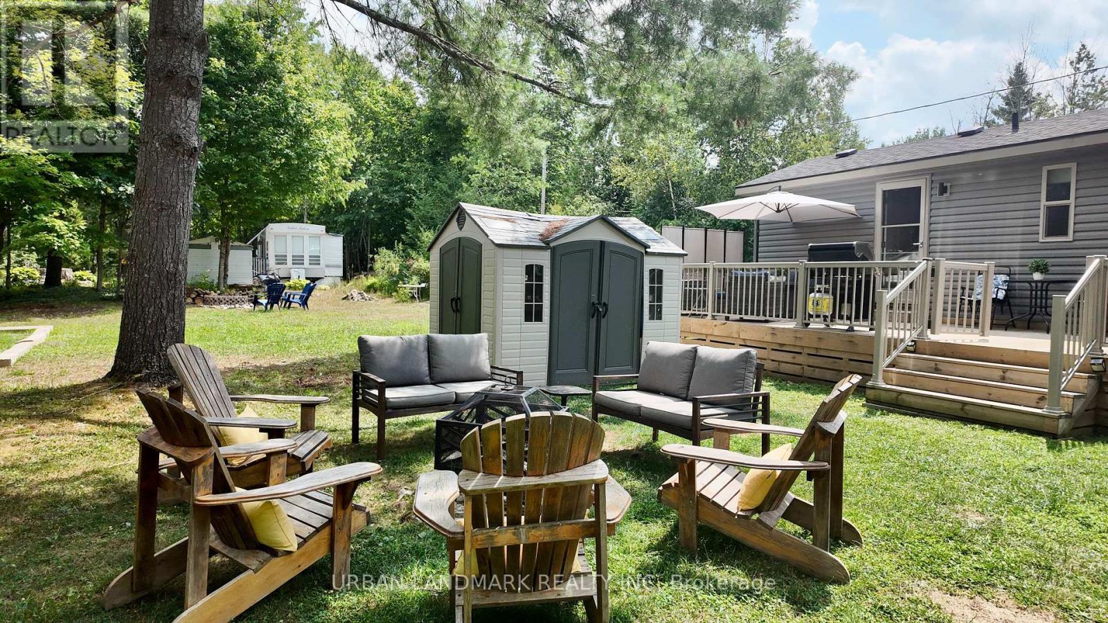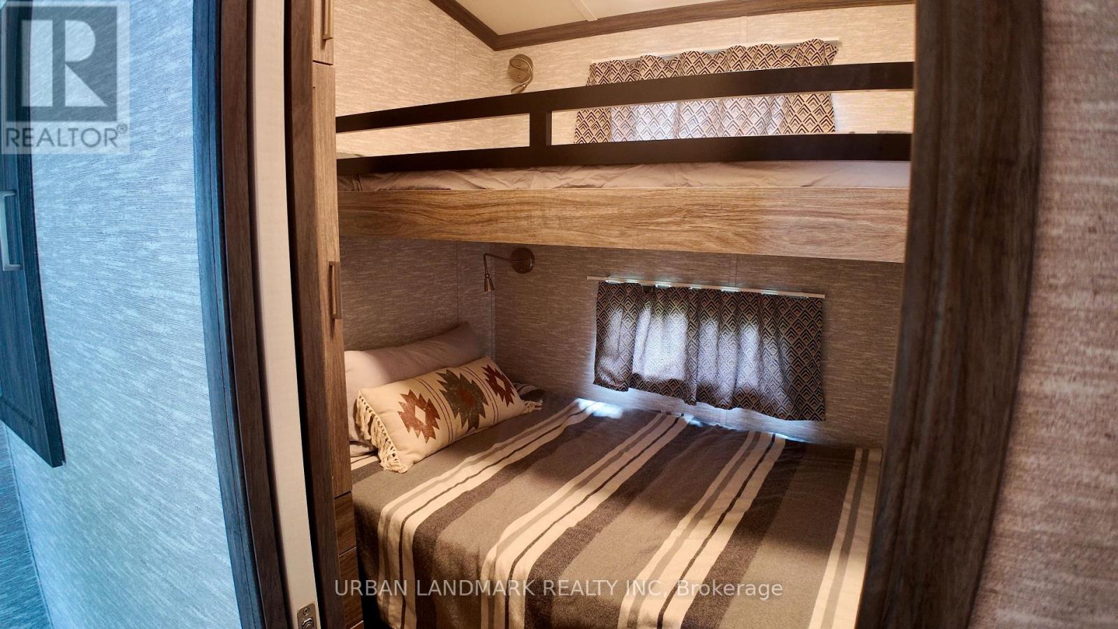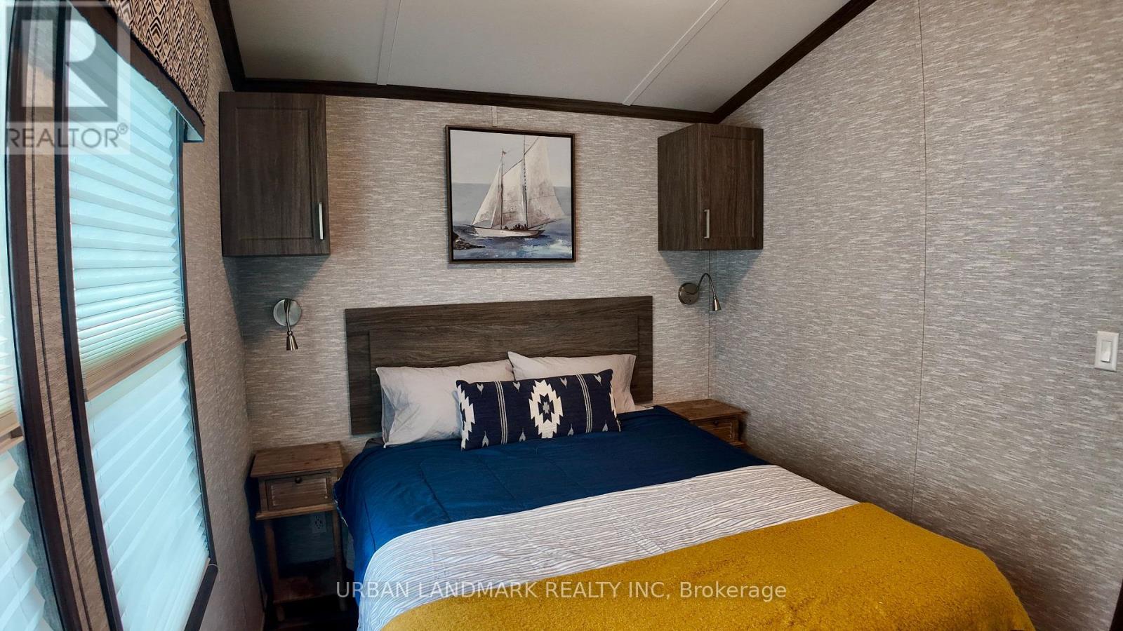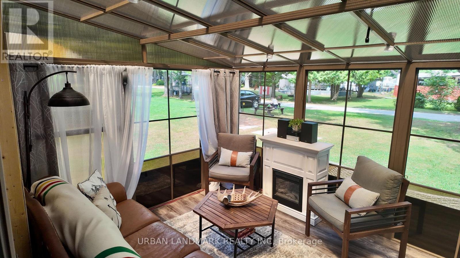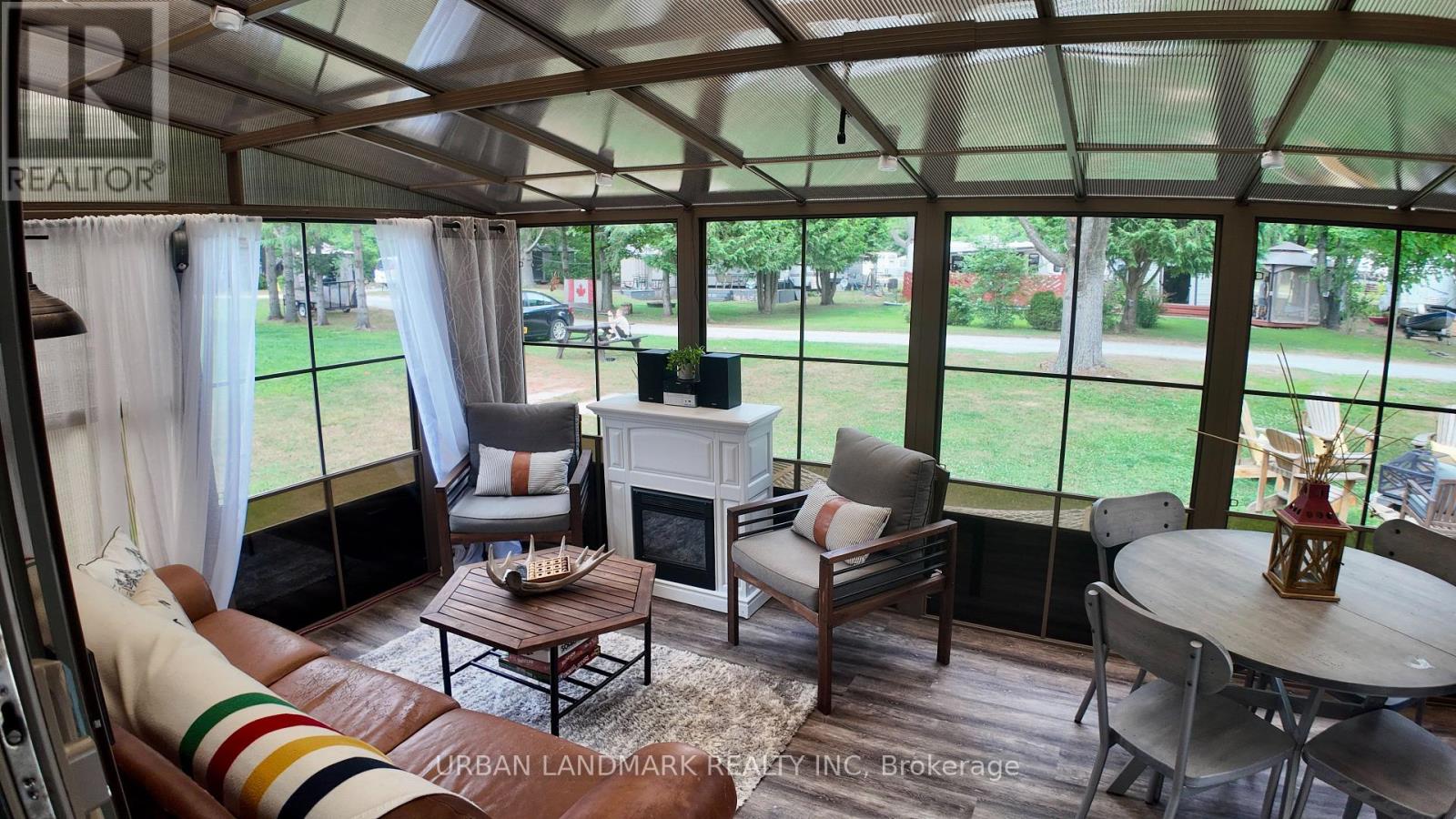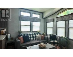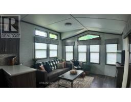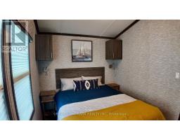 Client RemarksWelcome to your perfect getaway! Built in July 2021 and purchased brand new by its original owner, this immaculate General Coach McKellar is turn-key ready and located on a large, beautifully situated lot within Duck Lake Resort. Sports courts, multiple playgrounds, large swimming pool and sandy beach area ideal for swimming. Access to paddle boards, kayaks, and a large floating water castle. Great fishing spots and weekly community events including Saturday Bingo. Seasonal highlights such as Christmas in July and Halloween trick-or-treating. Coin-operated laundry and well-maintained washroom facilities on-site. Seasonal dock rentals available for boaters. Lot Fees: $4,959 + HST annually, includes weekly septic pump-out, water, and full access to all resort amenities. Hydro: metered and payable at seasons end. Transfer Fee: $5,000 (paid by purchaser) Insurance: Liability insurance is required for the lot. Located on a spacious lot featuring shared horseshoe pits and a welcoming mini-community atmosphere. 10' x 16' all-season solarium with polycarbonate roofing and full surround screening. 41' x 10' deck with sunspace railings and an upgraded double gate. Lifeproof luxury vinyl plank flooring 100% waterproof and durable. Full-size kitchen appliances including a propane stove, vented microwave, and fridge. Bunk rooms with a double bottom bunk, single top bunk, and built-in drawers. Primary bedroom with under-bed storage, full mirrored closet, and built-in dressers. Cozy living room with propane fireplace (remote controlled) and a pull-out couch. Bathroom with full-size toilet, half tub, and shower. Heated by forced air propane furnace and air conditioned for summer comfort. (id:61423)