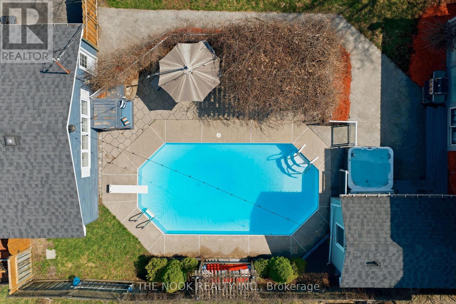 Timeless Vintage Home On An Exceptional Oversized Corner Lot With Inground Pool & Detached Garage. This Property Blends Rich Character With Thoughtful Modern Updates. This Original Brick Two-Storey Showcases Beautiful Character Details Including High Ceilings, Original Wood Trim, High Baseboards & An Original Bannister. The Main Floor Has Been Opened To A Bright, Airy Open-Concept Layout, Anchored By A Spacious Custom Kitchen With Oversized Island & Seamless Flow Into A Family Room Featuring Brick Accent Walls, Floor-To-Ceiling Windows With Shutters & A Warm, Southern-Inspired Charm. A Functional Mudroom & Updated 3-Pc Bath With Glass Shower Complete The Main Level. Upstairs Offers 3 Bedrooms & A Fully Renovated 3-Pc Bath With Walk-In Glass Shower & Vintage-Inspired Tilework. The Partially Finished Basement Includes Laundry, Ample Storage & A Versatile Bonus Space With Window Ideal As A 4th Bedroom, Den Or Rec Room. Mechanically Updated With Furnace (2016), Roof (2017) & Insulation (2011). Step Outside To A Perfectly Private Backyard Featuring Inground Pool, Hot Tub & A Large Detached Double Garage! Garage Features Space To Park, A Pool Change Room & A Bonus Recroom. A Rare Opportunity To Own A Truly Unique Home Where Historic Charm Meets Everyday Functionality In A Fantastic Location! (id:61423)