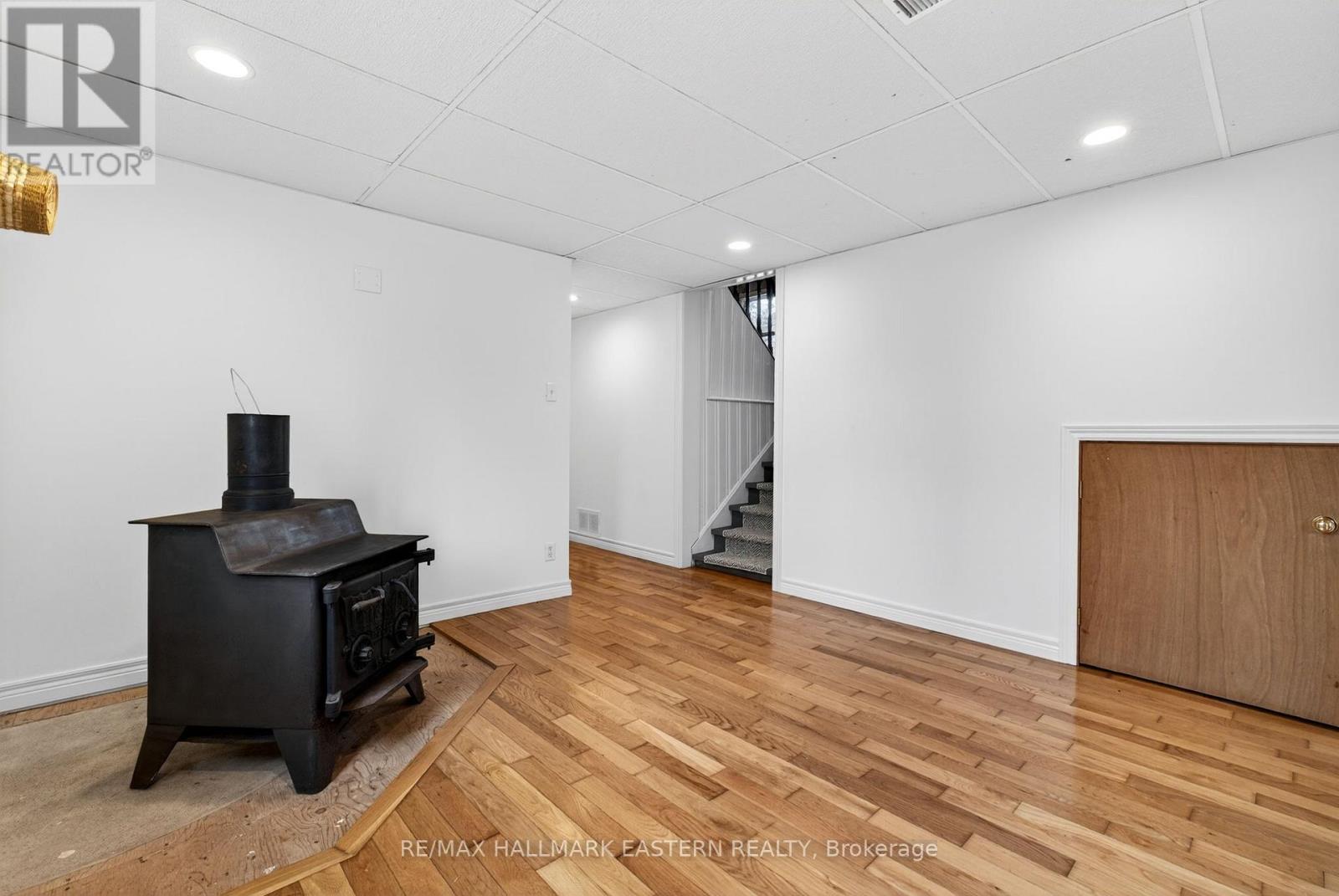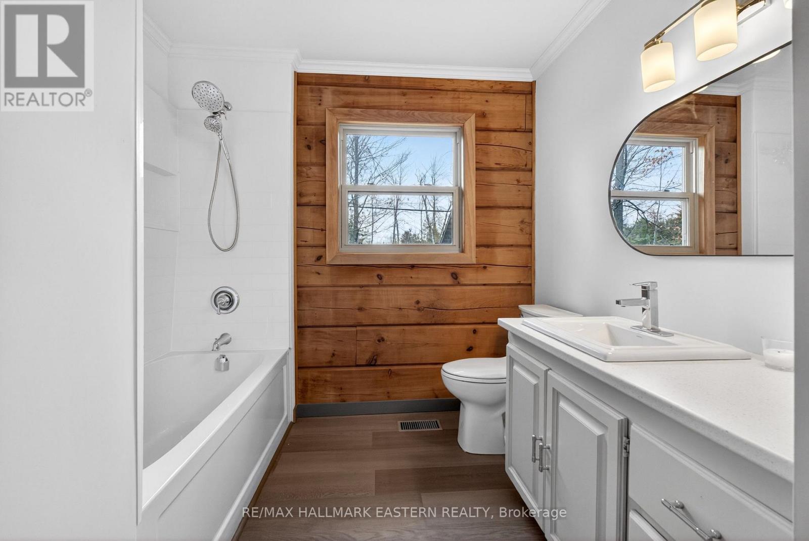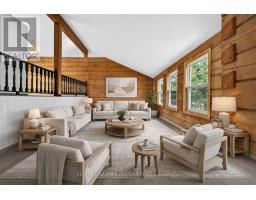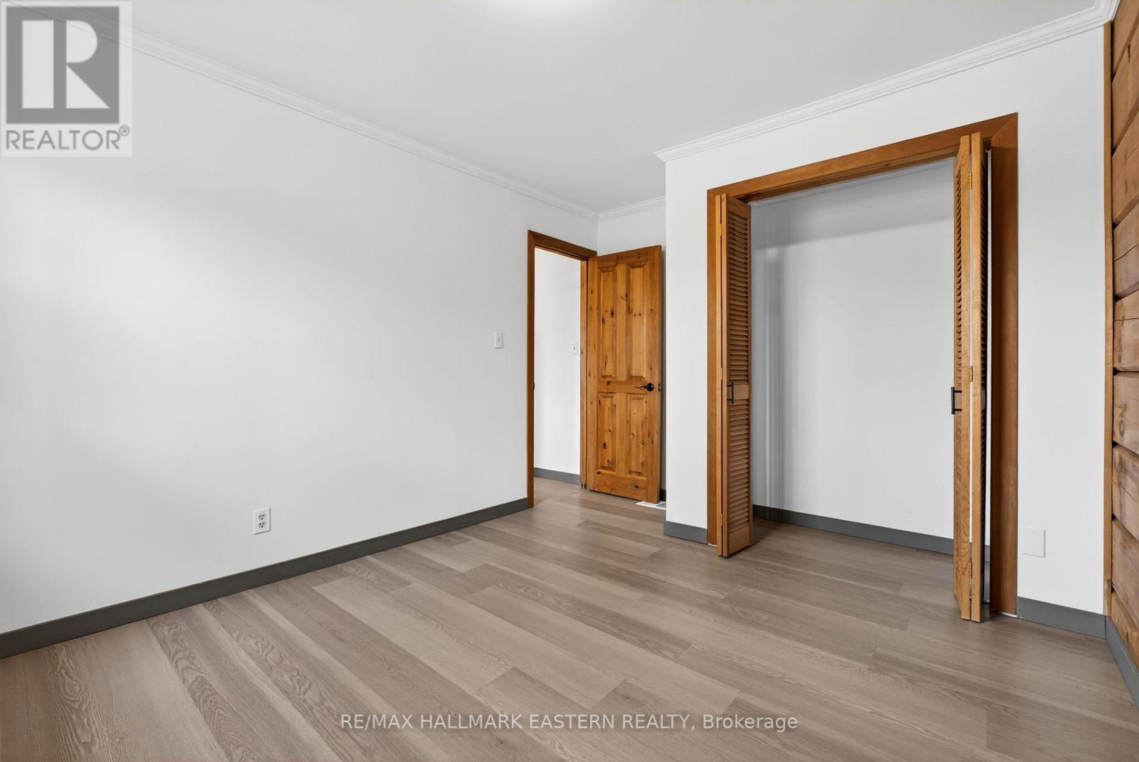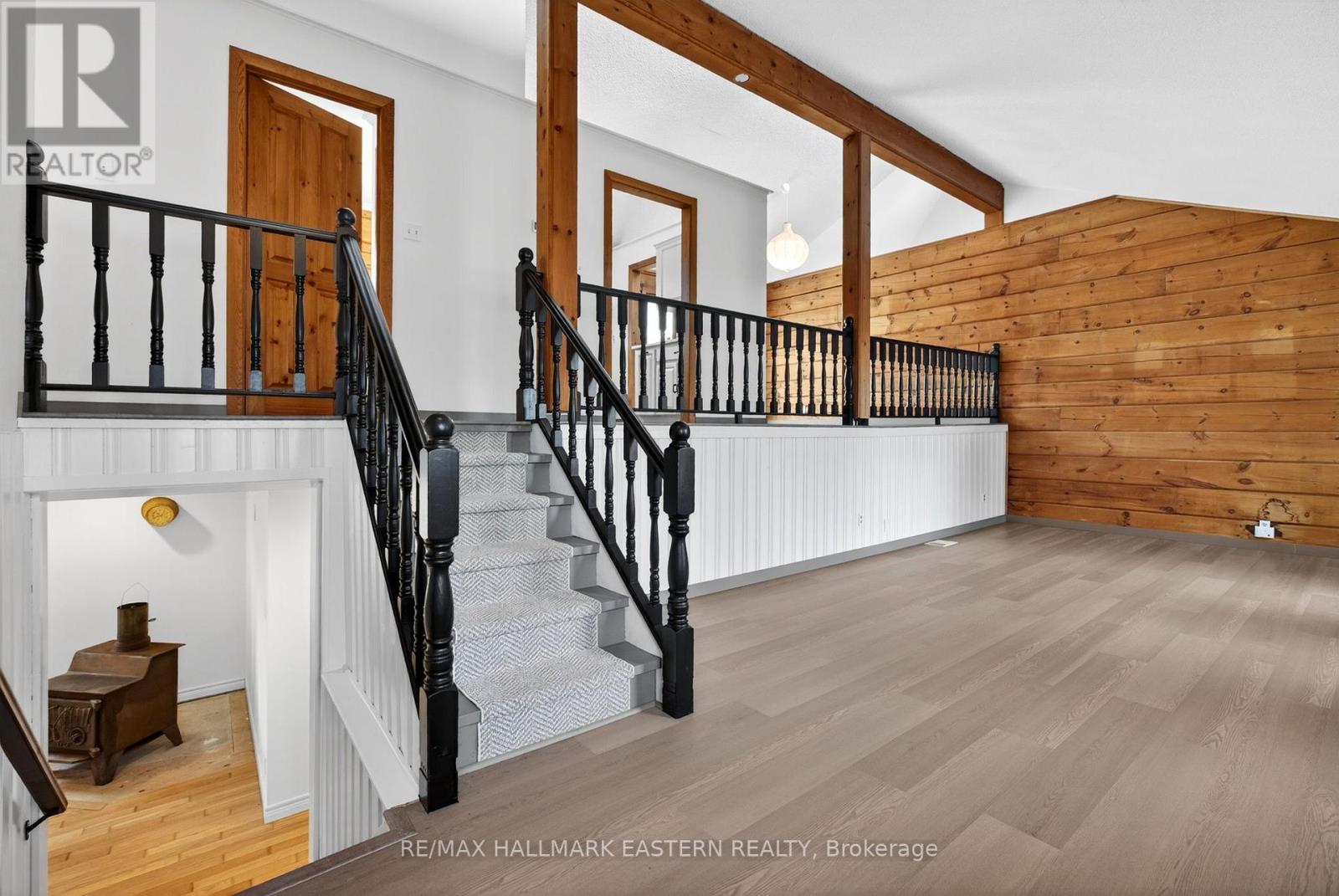 Located across from Chemong Lake, with beautiful Water Views. Set on a quiet, family friendly cul-de-sac, just shy of 1/2 an acre & Nestled in the heart of the Kawartha's, this 5-bedroom Viceroy log split level home offers a unique blend of rustic charm and modern updates. Launch your paddle board or canoe & enjoy the lake life with Right of Way access without the lakefront taxes! Recently refreshed and move-in ready, the home features new laminate flooring throughout, updated bathroom fixtures and lighting, & fresh paint. The bright, three-level layout showcases soaring cathedral ceilings in the family room and transom windows that fill the space with natural light. The dining area offers patio doors that open to a large cedar deck and a private backyard surrounded by mature maple, aspen, and oak trees.The main floor offers a spacious primary bedroom with a walk-in closet and updated ensuite with new vanity, mirror, faucet, lighting, and toilet. The cozy kitchen features solid wood cabinetry, freshly painted with new hardware. Opportunity to create a beautiful open concept eating/dining area. Upstairs includes an updated bathroom with new sink, faucet, mirror, lighting, and shower surround, plus two well-sized bedrooms with closets overlooking the backyard. The sunlight filled lower level features hardwood flooring, a rec room, two additional bedrooms, and a laundry room with well-maintained systems and access to the crawl space and furnace. A standout feature is the log-faced oversized 2-car garage and workshop (approx. 810 sq ft) with 11-foot ceilings. The workshop is finished with barn board wainscoting and tongue-and-groove pine, and is equipped for future heating or stove installation. Enjoy peaceful country living with lake access, space, and versatility-just minutes from Lakefield amenities. (id:61423)