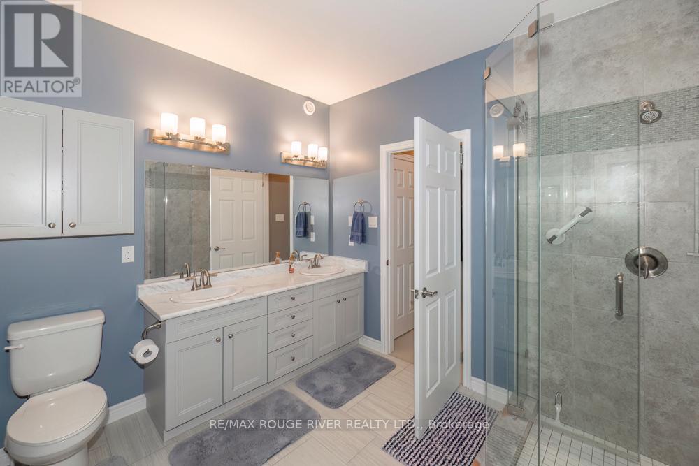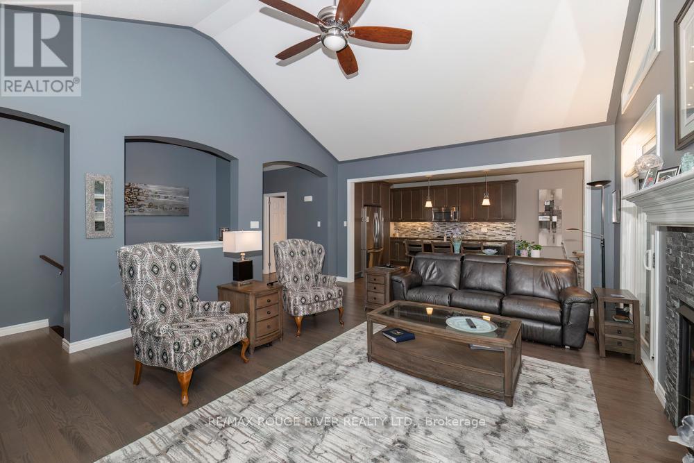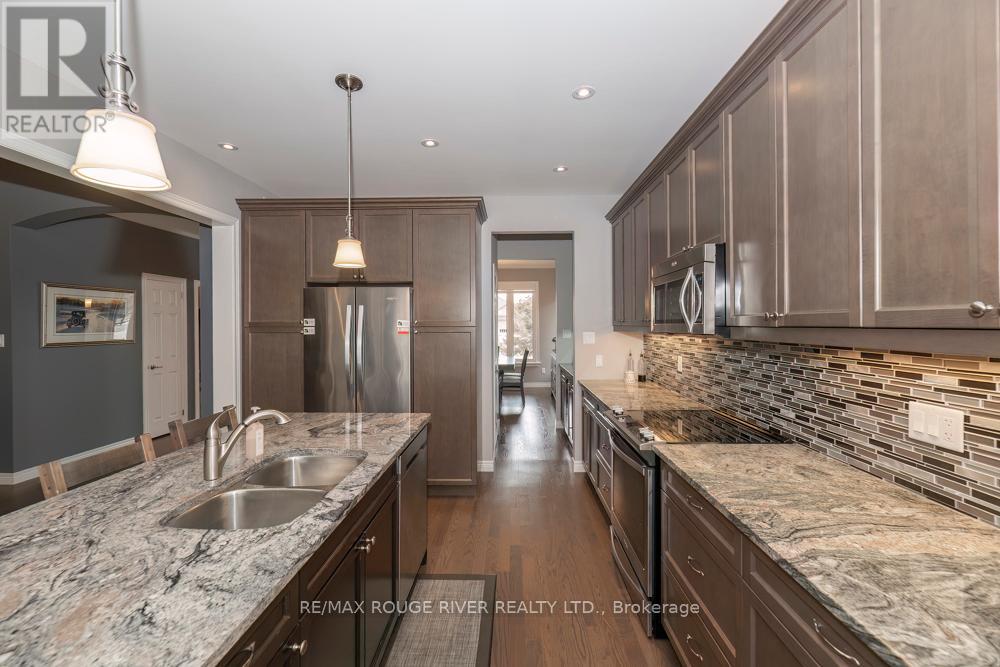 Absolutely spectacular Marshall built home in Port 32 adult lifestyle community with private club, marina and access to lake and Trent Severn Waterway! 1960 model with finish walkout basement and amazing upgrades including builder enlarged 3 season sunroom at back with gorgeous views! Double car garage was also builder enlarged! Butler pantry off kitchen! Well over 3000 total square feet of quality living space including two fireplaces! Beautifully landscaped, please check out the summer picture included in the attached photography! Membership to shore spa is included with tennis courts, inground pool, billiards and games room lounge gym and library! Natural gas lines are in the process of being installed in community so home can be converted to forced air gas heating! List of extensive upgrades is attached to listing! This home is an absolute must see! Second bedroom presently being used as den. (id:61423)
