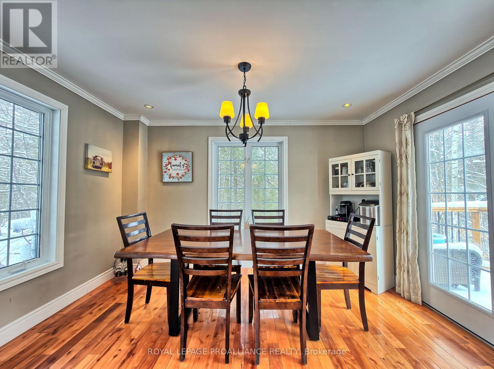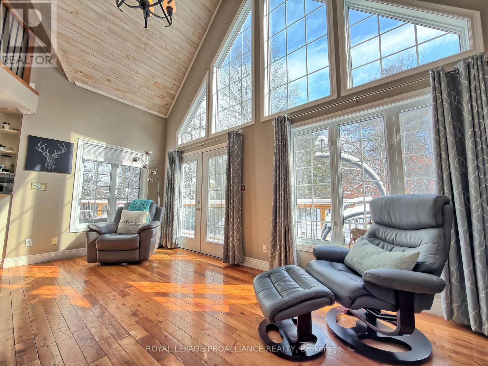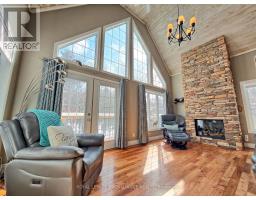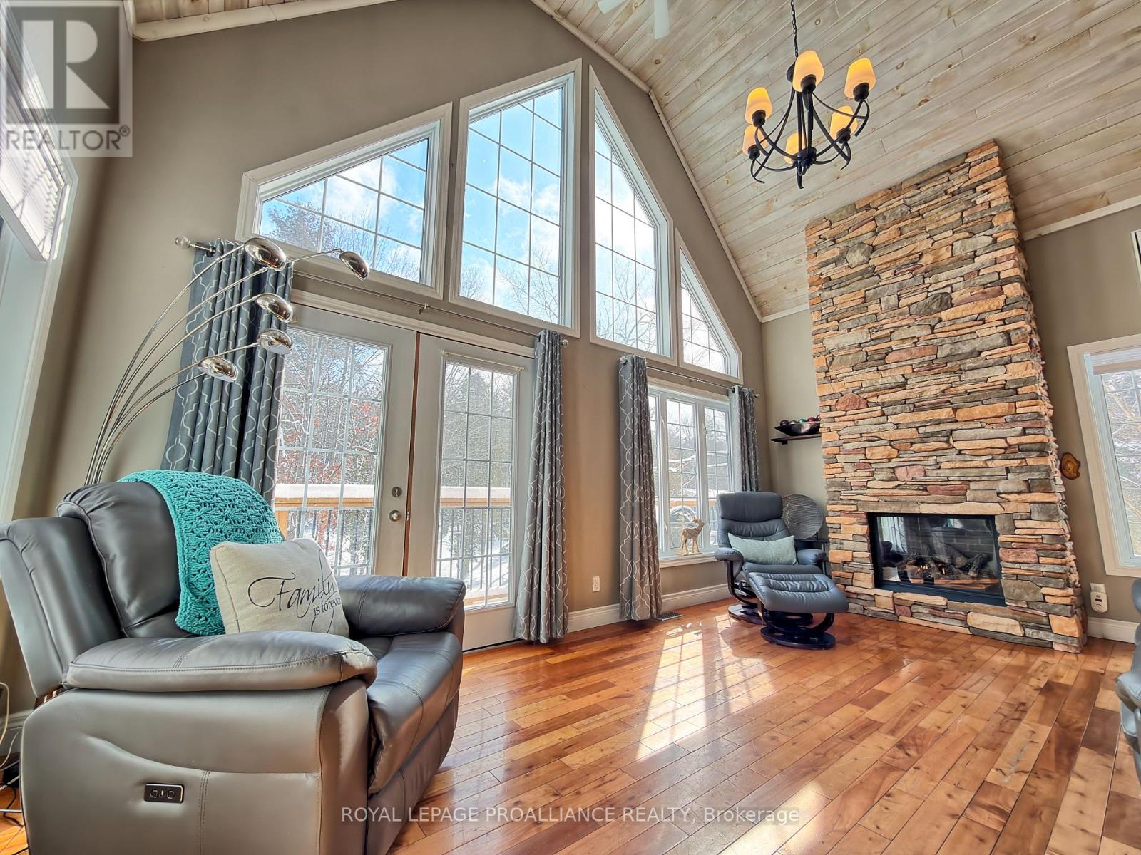 Step into this private wooded oasis! This 3 BR Executive Home is situated on just under an acre and has so much to offer! The main floor LR has beautiful vaulted ceilings made of white washed knotty pine and a show stopping propane fireplace with beautiful stonework from floor to ceiling, & walk-out to a full deck that goes across the entire front of the house! The spacious open concept Kitchen has granite countertops with a breakfast bar, additional island, & large eating area with 2 walk-outs leading to the front and back of the house, perfect for growing families. This floor also has a bedroom and 2pc with hardwood flowing throughout this level. The staircase leads you to a stunning vantage point from the second floor looking down and views of the wooded outdoors. PBR and another BR, along with a pc, also has several closets perfect to storage, also with hardwood flooring on the 2nd floor. The views of the mature trees from all of these windows are breathtaking! The basement is ground level with a walk-out to the front with a massive vestibule area with slated flooring that you can use as needed for your family, along with a cozy woodstove. On this floor you will find a 3pc & a large Media/Family Room with upgraded carpet and French doors. To complete this incredible property, is a detached double garage wired for your RV and a stylish & inviting bunkie for you, your kids, or guests. This property is well located between Havelock & Marmora with lots of amenities to choose from, in an area rich in lakes, boating, fishing and lots of local attractions and activities for the family. (id:61423)
