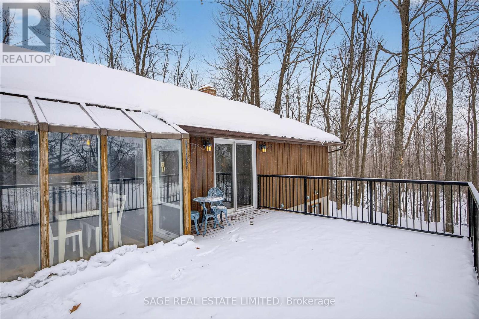 Country Club Heights is just far enough from town to feel secluded, yet minutes to everything you need. Tree-lined streets, with big lots with setbacks that give you the privacy you want in a friendly neighbourhood. Next door to the Eganridge Resort and Golf Club, dust off those clubs! The home offers a strong sense of privacy, surrounded by mature trees in a peaceful setting. This is about one-level living, with plenty of natural light and a strong connection to the outdoors via several walk-outs and large windows. The kitchen is the core of the main level, with excellent working space, eat-in dining and loads of room for guests to hang about while you cook. The formal dining room will accommodate those too-large Thanksgiving dinners. The principal rooms have vistas across the golf-course and out to Sturgeon Lake. The living room flows comfortably through the space and leads to the primary bedroom, with forest views and its own ensuite bath. A separate guest wing includes two additional bedrooms and updated bathroom, giving family and friends their own separate space. From the outset the open and spacious foyer says "this is a home for entertaining, come and chill". It has a homey vibe, a natural flow and when the house fills up, escape to down below. The lower level is designed for entertaining. Cocktails mixed behind the bar, game nights, catching up after a round of golf. The walk-out extends the space outdoors in warmer months, with flexibility for additional bedrooms, or a workshop, storage, and hobbies tucked neatly away. Hosting is easy here: golf in the summer, snowshoeing and cross-country skiing in the winter. Or spend your evenings at the country club pub, relaxing on the patio overlooking Sturgeon Lake. Conveniently positioned between two vibrant waterfront villages, Fenelon Falls and Bobcaygeon, you're close to popular shops, cafés, restaurants, live theatres, marinas, boat launches and everyday essentials...and under two hours from the GTA. (id:61423)