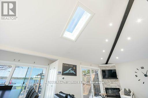 EXPERIENCE THE BEST OF KAWARTHA LAKE WATERFRONT LIVING IN SOUGHT-AFTER KIRKFIELD AREA BACKING ONTO CANAL LAKE. THIS STUNNING, FULLY RENOVATED DETACHED BUNGALOW OFFERS OVER 100FT OF PRISTINE WATERFRONT AND BREATHTAKING WESTERLY SUNSET VIEWS. SET ON 125 FT X 186 FT LOT, THIS PROPERTY DELIVERS THE PERFECT BLEND OF LUXURY, COMFORT, AND OUTDOOR LIVING LIFESTYLE. STEP INSIDE TO A BRIGHT, OPEN CONCEPT LAYOUT FEATURING HIGH END FINISHES THROUGHOUT, WALKOUT TO DECK, HIGH CEILINGS, FIREPLACE, AND PANORAMIC WATERFRONT VIEWS. THIS HOME COMES FULLY FURNISHED, MAKING IT TRULY MOVE-IN READY OR AN IDEAL TURNKEY INVESTMENT. OUTDOORS, ENJOY AN EXCEPTIONAL 2000 SQ FT OF INTERLOCKING ENTERTAINING SPACE OVERLOOKING CANAL LAKE DESIGNED FOR RELAXATION AND ENTERTAINING. MULTIPLE SEATING AREAS, A HOT TUB, FIRE PIT, AND EXPANSIVE DECK CREATE THE ULTIMATE WATERFRONT RETREAT. A LARGE PRIVATE DOCK PROVIDES EASY ACCESS FOR BOATING AND ENJOYING THE LAKE. A RARE OPPORTUNITY TO OWN A STUNNING WATERFRONT ESCAPE PERFECT FOR YEAR-ROUND LIVING OR A LUXURIOUS FAMILY COTTAGE GETAWAY. (BONUS: ENGINEERED DRAWINGS ARE ALREADY DONE AND PREVIOUSLY APPROVED FOR 16 FT X 25 FT GARAGE. ALL THIS JUST 1.5 HOURS FROM GTA AND CLOSE TO AMENITIES. (id:61423)