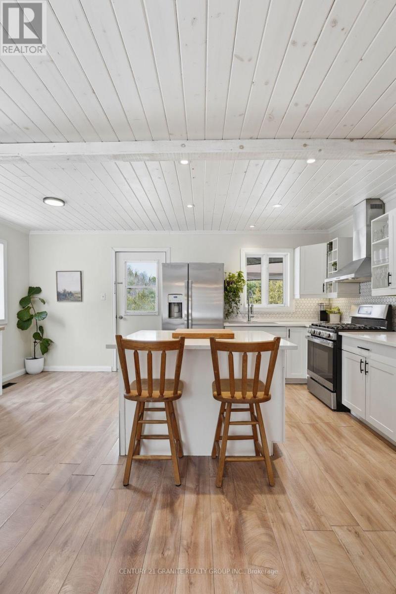 If you have been looking for a property that feels like home the moment you walk in, this is it. Welcome to this beautifully updated 3-bedroom home. Set on a generous 1.03 acre extremely level lot, the landscaped yard provides plenty of space for outdoor living, gardening, and family enjoyment. The property also features a sizeable garden shed and fenced garden with raised garden beds. The driveway allows ample parking for up to six vehicles. Inside, the home boasts stylish modern finishes throughout including quartz countertops, large chefs island with seating, stainless steel appliances and an exquisite coffee bar creating a fresh and inviting atmosphere. Step outside to a large, spacious back deck-ideal for entertaining, BBQing, relaxing, or soaking in the peaceful surroundings with glass railings. The fully finished basement features the additional bedroom, large rec room, laundry room and utilities as well as a spacious mudroom. Large windows on this level complete this bright living space. Convenient services include garbage and recycling pickup, along with year-round access on a municipally maintained road, adding ease of living. Located just 7 minutes from downtown Bancroft, this property offers privacy and accessibility-close to amenities while still enjoying the space and tranquility of rural living. A fantastic opportunity for families, retirees, or anyone looking to enjoy the best of both worlds. (id:61423)