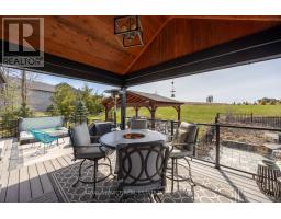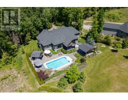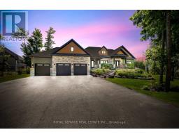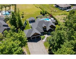 Discover unparalleled luxury living in this stunning ranch bungalow showcasing impeccable craftsmanship with stone and hardboard exterior. Nestled on 1.75 acres in a sought-after executive neighbourhood, this property offers the perfect blend of privacy and convenience for commuters with easy access to Hwy 115 and 407. The meticulously landscaped grounds feature impressive Armour stone accents, Trex decking, and an elegant pergola. Entertain in style around your inground salt water pool, surrounded by thoughtfully designed privacy landscaping. Unwind in your private hot tub accessible directly from the primary suite. Step inside to experience the sophisticated open concept living area and gourmet kitchen. The culinary enthusiast will appreciate the large centre island with premium stone countertops, professional gas stove, and convenient walk-in pantry. French doors provide seamless access to the expansive deck for indoor-outdoor entertaining. The formal dining room boasts coffered ceilings and oversized windows that flood the space with natural light. Beautiful engineered hardwood flooring flows throughout the main level elevating the home's elegant aesthetic. The lower level entertainment zone dazzles with a spacious recreation room, game area, wet bar, and California shutters throughout. Complete with a 3-car attached garage and countless upgrades throughout, this exceptional residence represents luxury living at its finest. (id:61423)