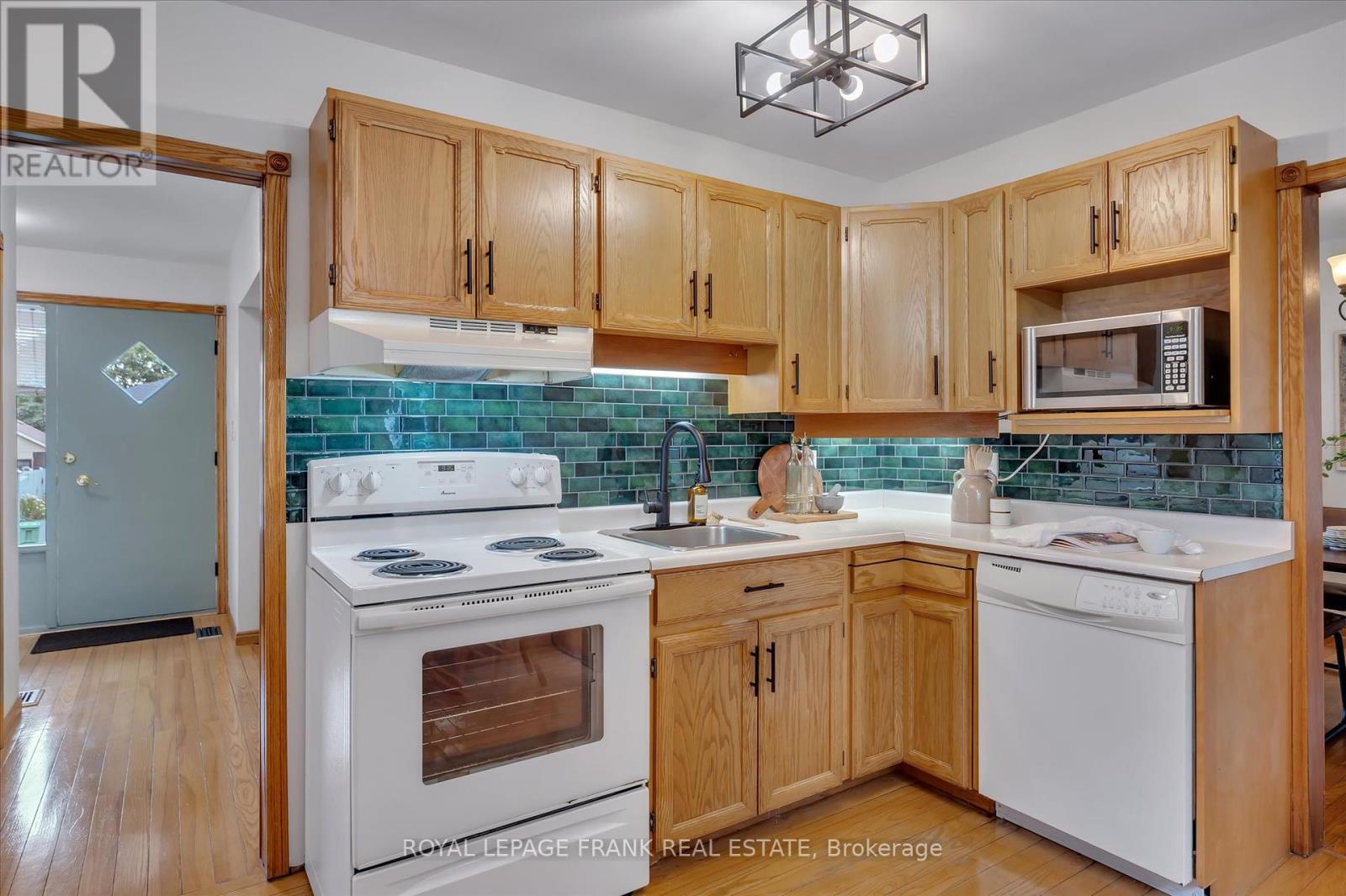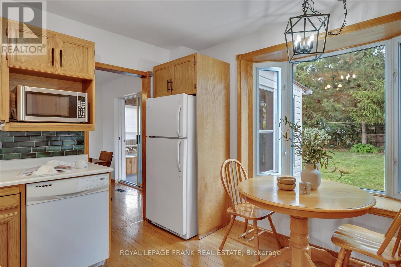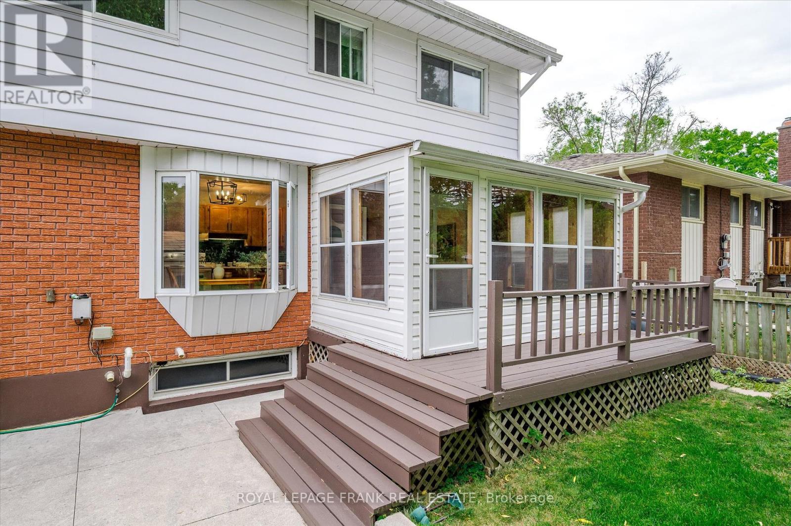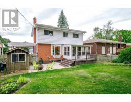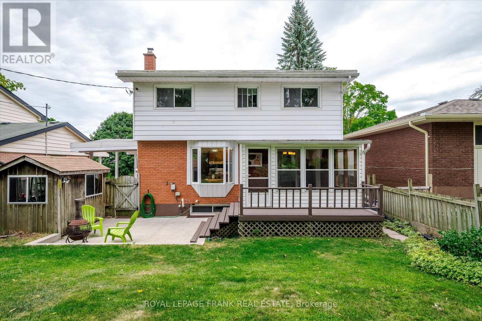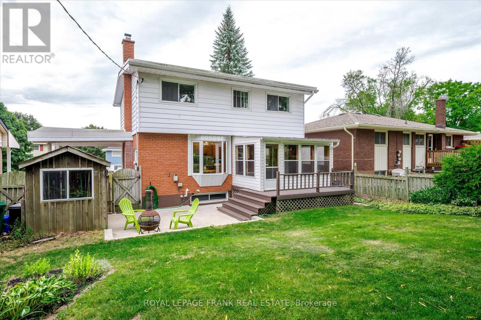 This spacious 4 bedroom family home is located on a quiet tree lined street in the central north end within walking distance to St. Annes, Queen Elizabeth and Adam Scott Schools. It is just a short walk to Brookdale Plaza and all the stores on Chemong Road. There are 4 good size bedrooms on the 2nd floor with vaulted ceilings and a 4 pc bath. Most of the house has hardwood floors. There is an L-shape living dining room with a walkout to a 3 season sunporch and the fully fenced and mature treed back yard. The kitchen has room for a small table and there is a main floor 2 pc bath off the side entrance under the carport. The basement has a finished rec-room with a large window and a large combination laundry/furnace/ storage room. The gas furnace was replaced in 2022 and the central A/C in 2017. New 5 inch eavestroughs and gutter guards in 2015 on the upper part of the house. This home has been pre-sale inspected. Please note: 1979 Survey shows former inground pool which was filled in sometime prior to current owner of 25 years. (id:61423)