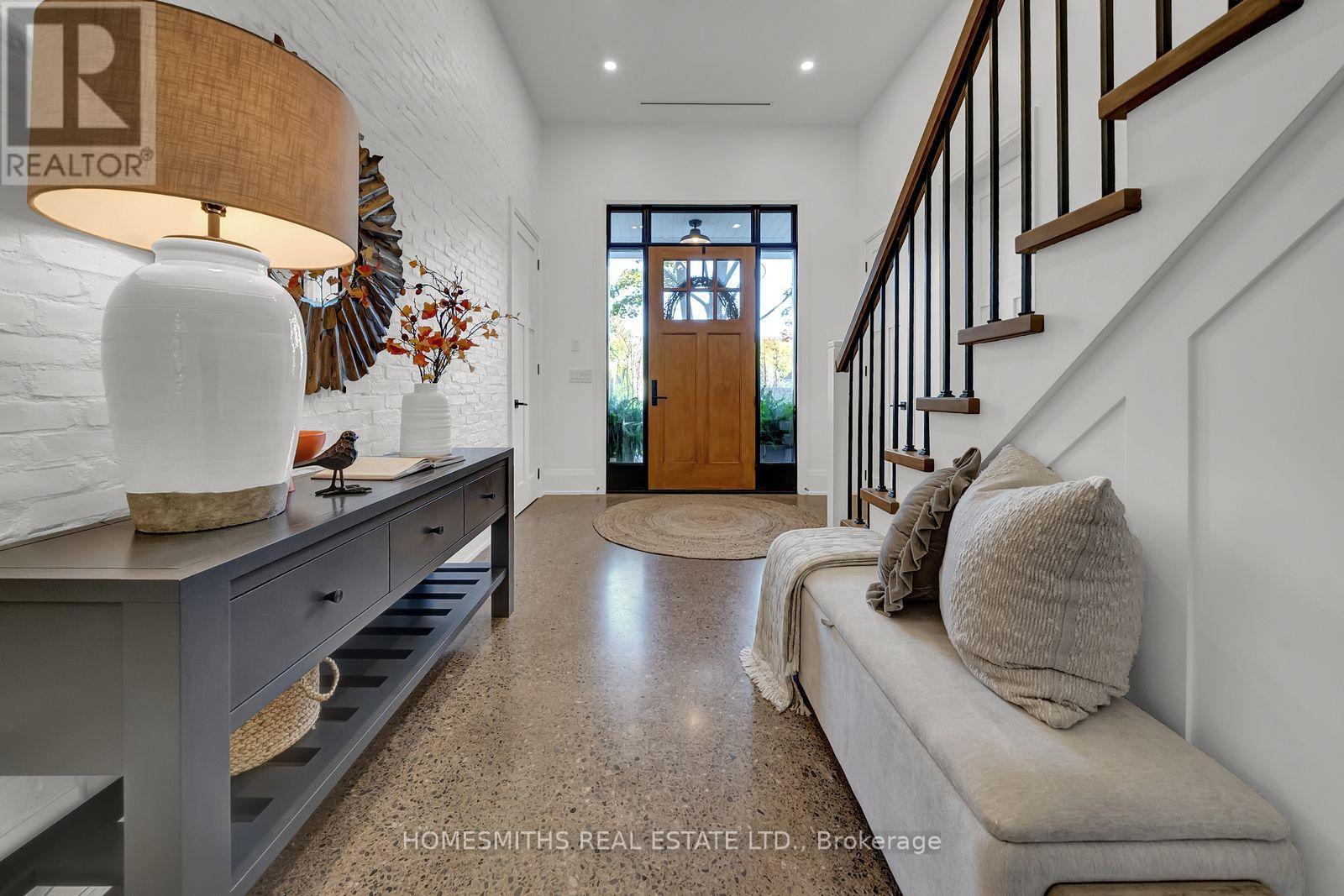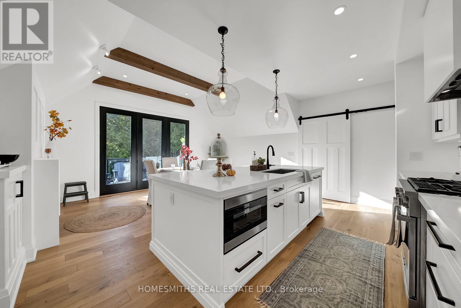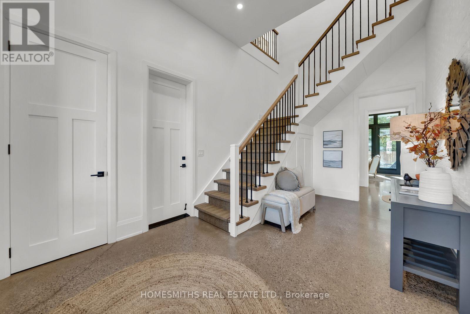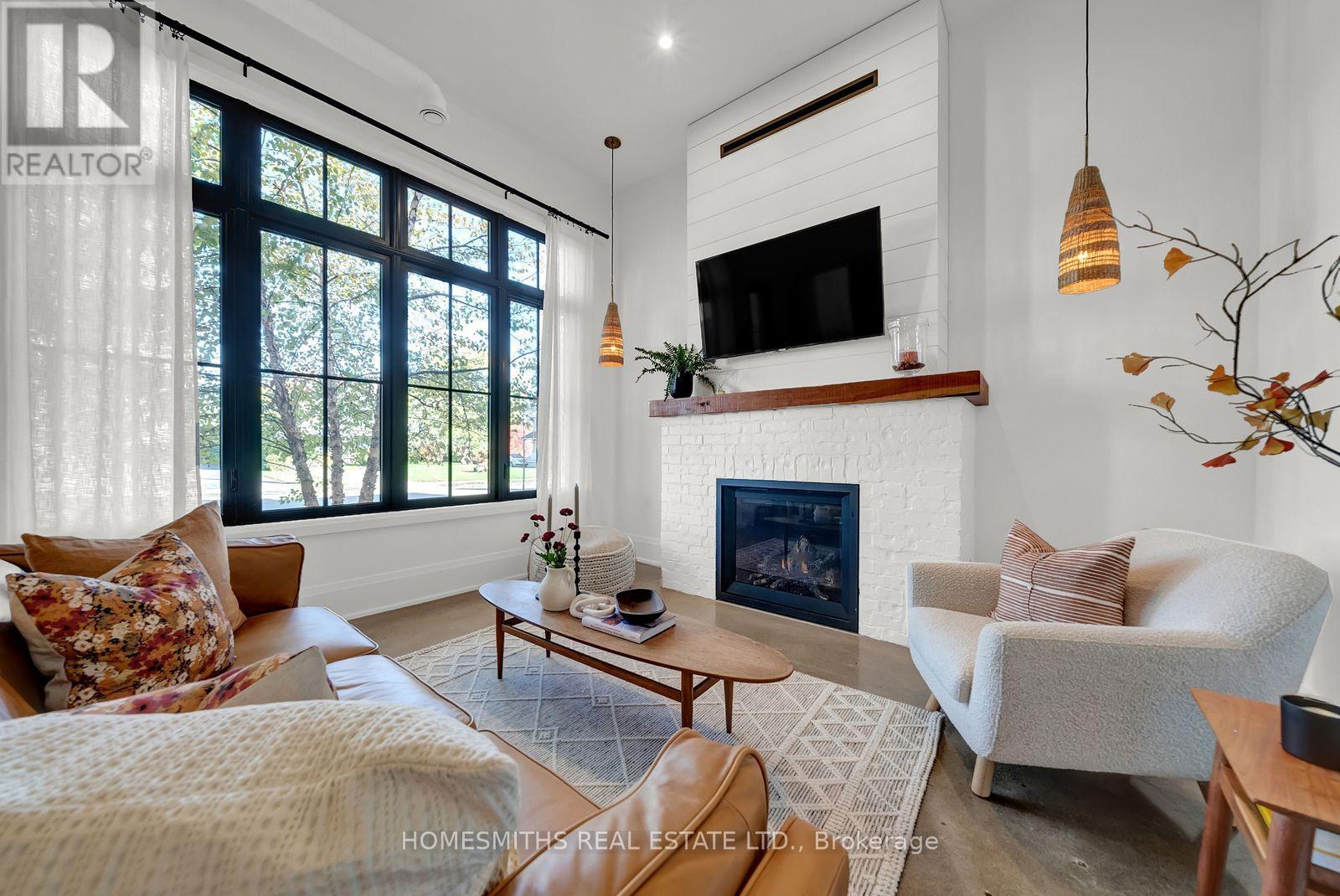 Welcome to 288 Beaver St S Newcastle, "The Carriage House" inspired by the character & aesthetic of a classic century carriage house this beautifully designed & unique offering combines modern amenity & efficiency w/ traditional charm & craftsmanship. Situated on a mature tree-lined street in the heart of Historic Downtown Newcastle walking distance to all amenities, schools, quaint shops/pubs/restaurants, 1 minute to Hwy 401 & under 1 hr to downtown T.O. Beautifully landscaped front exterior leads to a traditional front porch with bright entry with exposed brick interior wall & soaring 12-foot ceilings throughout the m/f. Ground floor features a beautifully appointed fully self-contained ADU apt with open-concept layout, large living area with gas f/p, custom kitchen w/ center island & quartz counters, large bedroom, three-piece bath w/ huge glass shower & en-suite laundry. Independent entry, heating/cooling making this space ideal for in-law, air bnb/income producing rental. The main house features a large m/f office/flex space, well suited for future bedroom, studio/gym/recreation rm or home based business, with a walkout to a covered rear porch & fully fenced backyard. Interior entry to heated & cooled 3+ car garage w/ 12-foot ceiling, epoxy floor & drive-through o/h door to the rear yard. Feature staircase up to the incredible 2nd floor with a gorgeous open living area with beamed cathedral ceilings, a custom kitchen w/ large center island, lux appliances, ensuite laundry & breakfast/dining area with a w/o to elevated rear deck o/l the backyard, surrounded by mature trees providing privacy & summer shade. Spacious primary suite with skylit ensuite bath with dual vanity & large shower, 2nd bdrm with 2nd skylit ensuite & dble closet. Classic wide plank engineered French Oak h/w floors through the 2nd floor, unique polished concrete terrazzo floor on the m/f. This is a show stopping, one of a kind, multidimensional home in a fantastic location. See Virtual Tour. (id:61423)