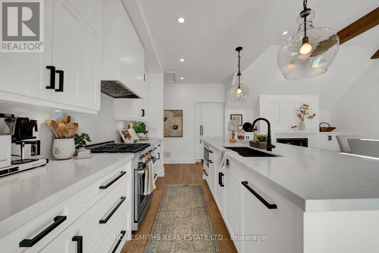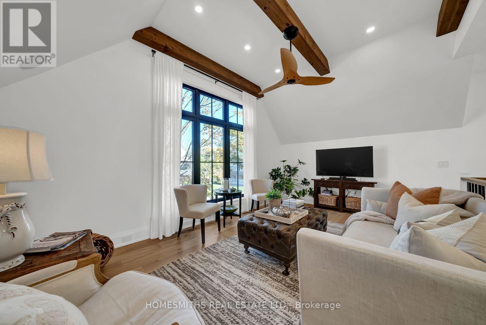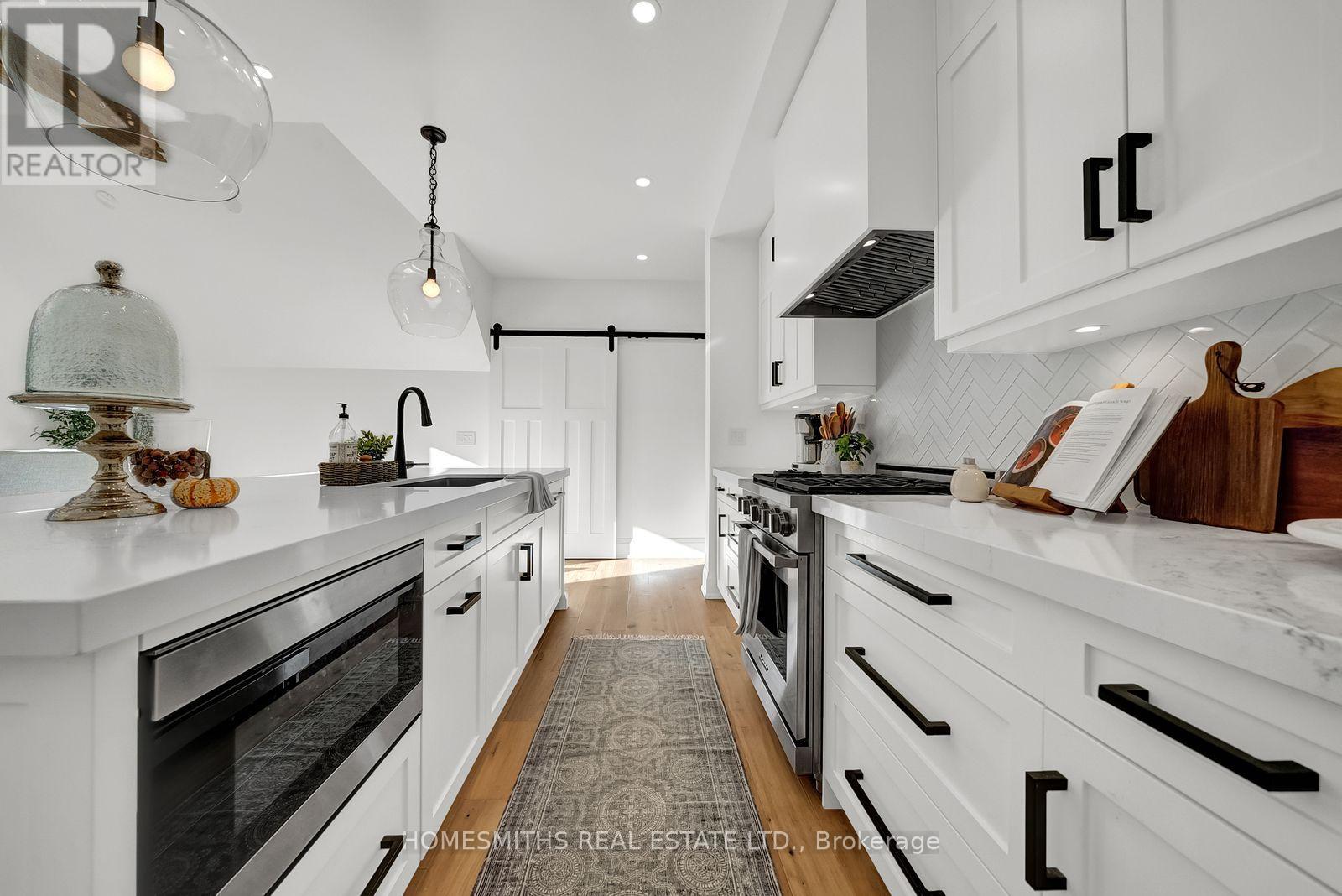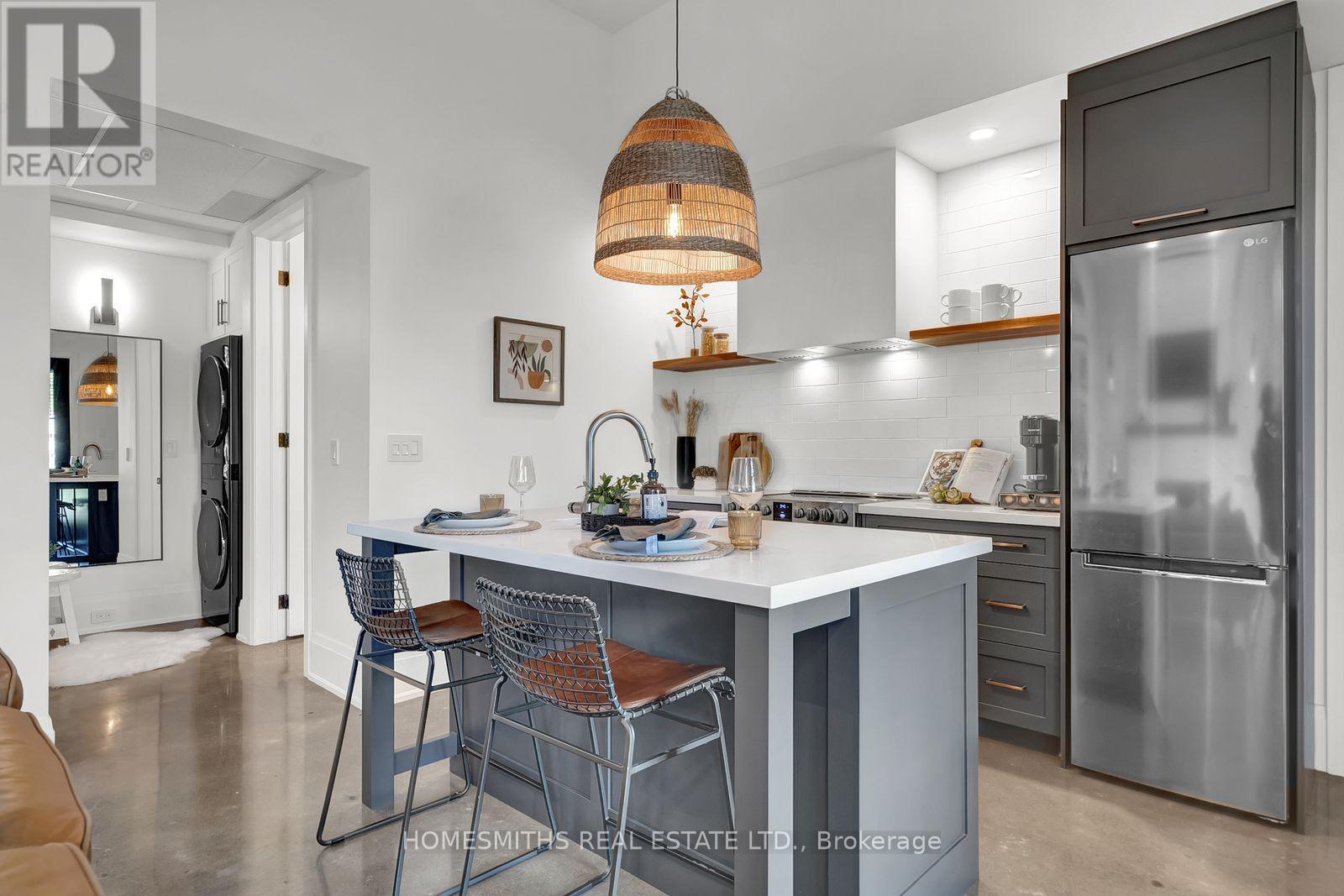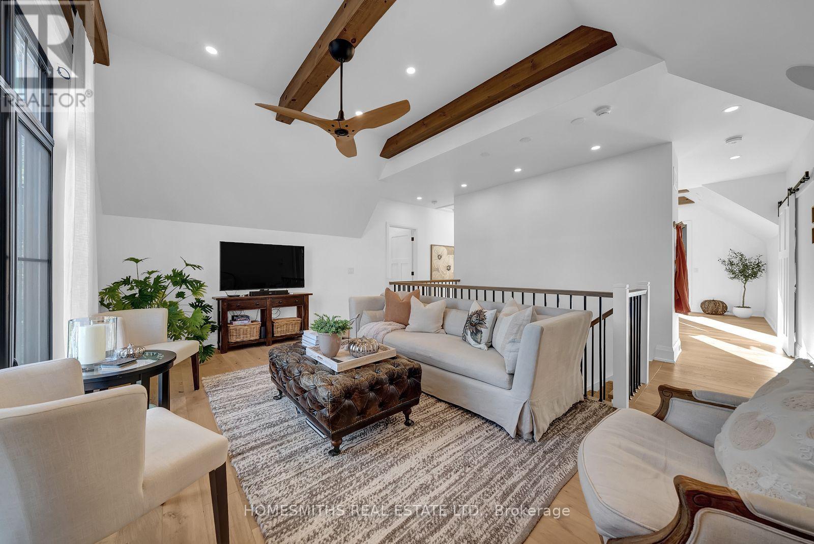 Welcome to 288 Beaver St S Newcastle, "The Carriage House" inspired by the character & aesthetic of a classic century carriage house this beautifully designed & unique offering combines modern amenity & efficiency w/ traditional charm & craftsmanship. Situated on a mature tree-lined street in the heart of Historic Downtown Newcastle walking distance to all amenities, schools, quaint shops/pubs/restaurants, 1 minute to Hwy 401 & under 1 hr to downtown T.O. Beautifully landscaped front exterior leads to a traditional front porch with bright entry with exposed brick interior wall & soaring 12-foot ceilings throughout the m/f. Ground floor features a beautifully appointed fully self-contained ADU apt with open-concept layout, large living area with gas f/p, custom kitchen w/ center island & quartz counters, large bedroom, three-piece bath w/ huge glass shower & en-suite laundry. Independent entry, heating/cooling making this space ideal for in-law, air bnb/income producing rental. The main house features a large m/f office/flex space, well suited for future bedroom, studio/gym/recreation rm or home based business, with a walkout to a covered rear porch & fully fenced backyard. Interior entry to heated & cooled 3+ car garage w/ 12-foot ceiling, epoxy floor & drive-through o/h door to the rear yard. Feature staircase up to the incredible 2nd floor with a gorgeous open living area with beamed cathedral ceilings, a custom kitchen w/ large center island, lux appliances, ensuite laundry & breakfast/dining area with a w/o to elevated rear deck o/l the backyard, surrounded by mature trees providing privacy & summer shade. Spacious primary suite with skylit ensuite bath with dual vanity & large shower, 2nd bdrm with 2nd skylit ensuite & dble closet. Classic wide plank engineered French Oak h/w floors through the 2nd floor, unique polished concrete terrazzo floor on the m/f. This is a show stopping, one of a kind, multidimensional home in a fantastic location. See Virtual Tour. (id:61423)