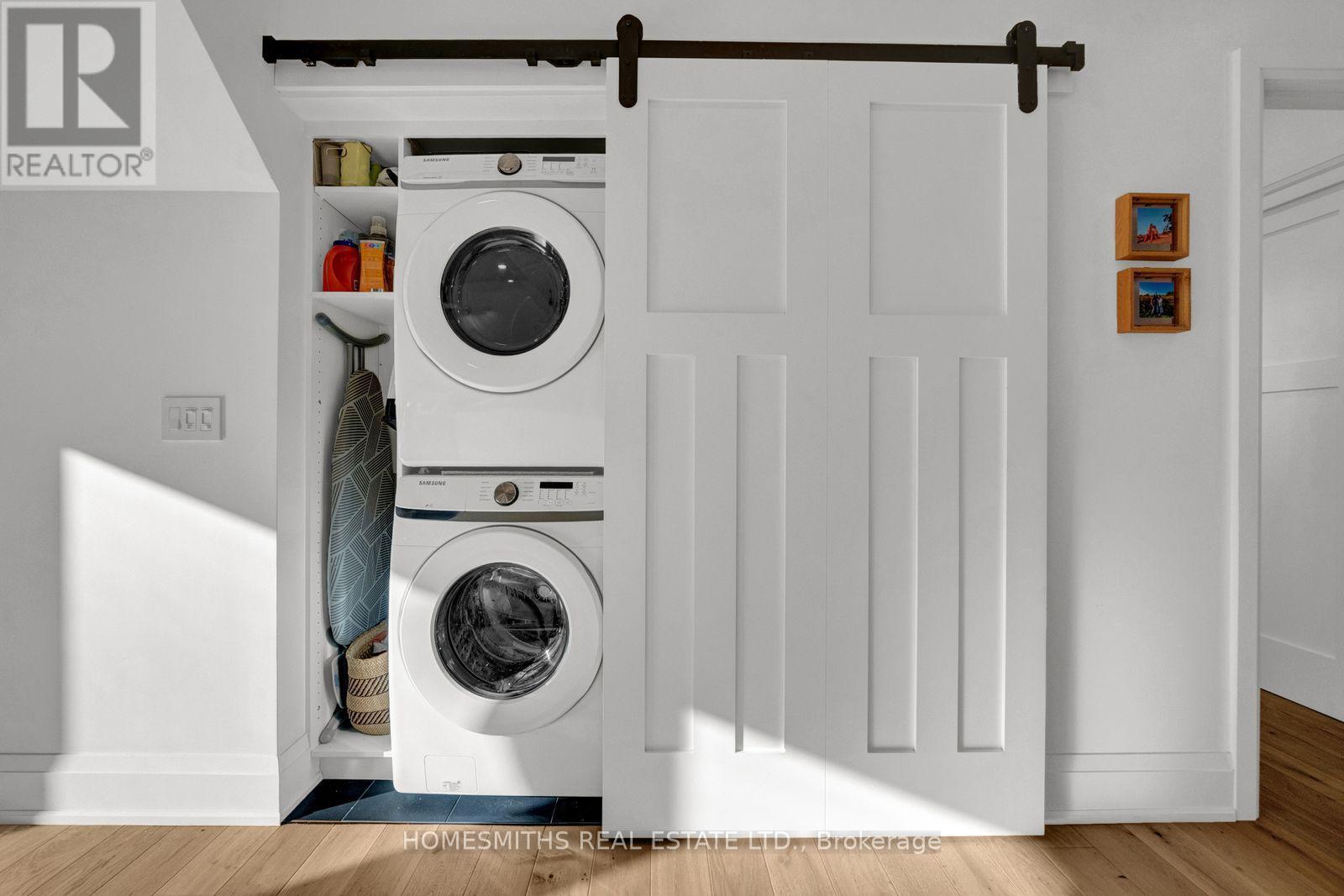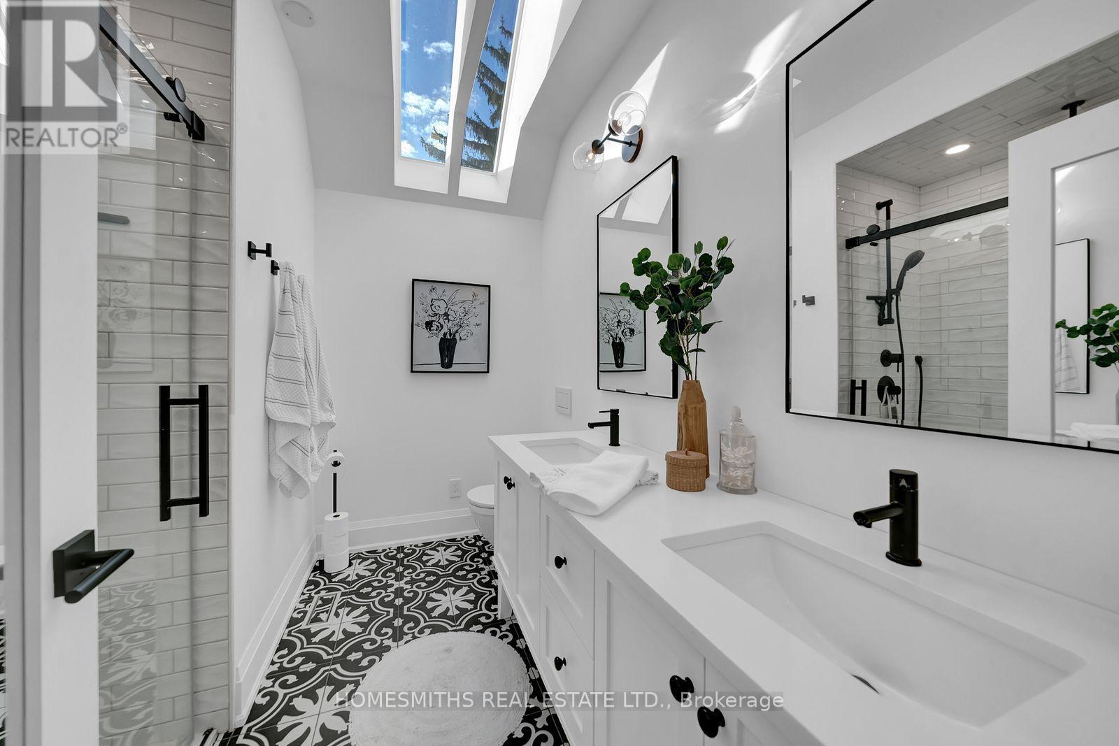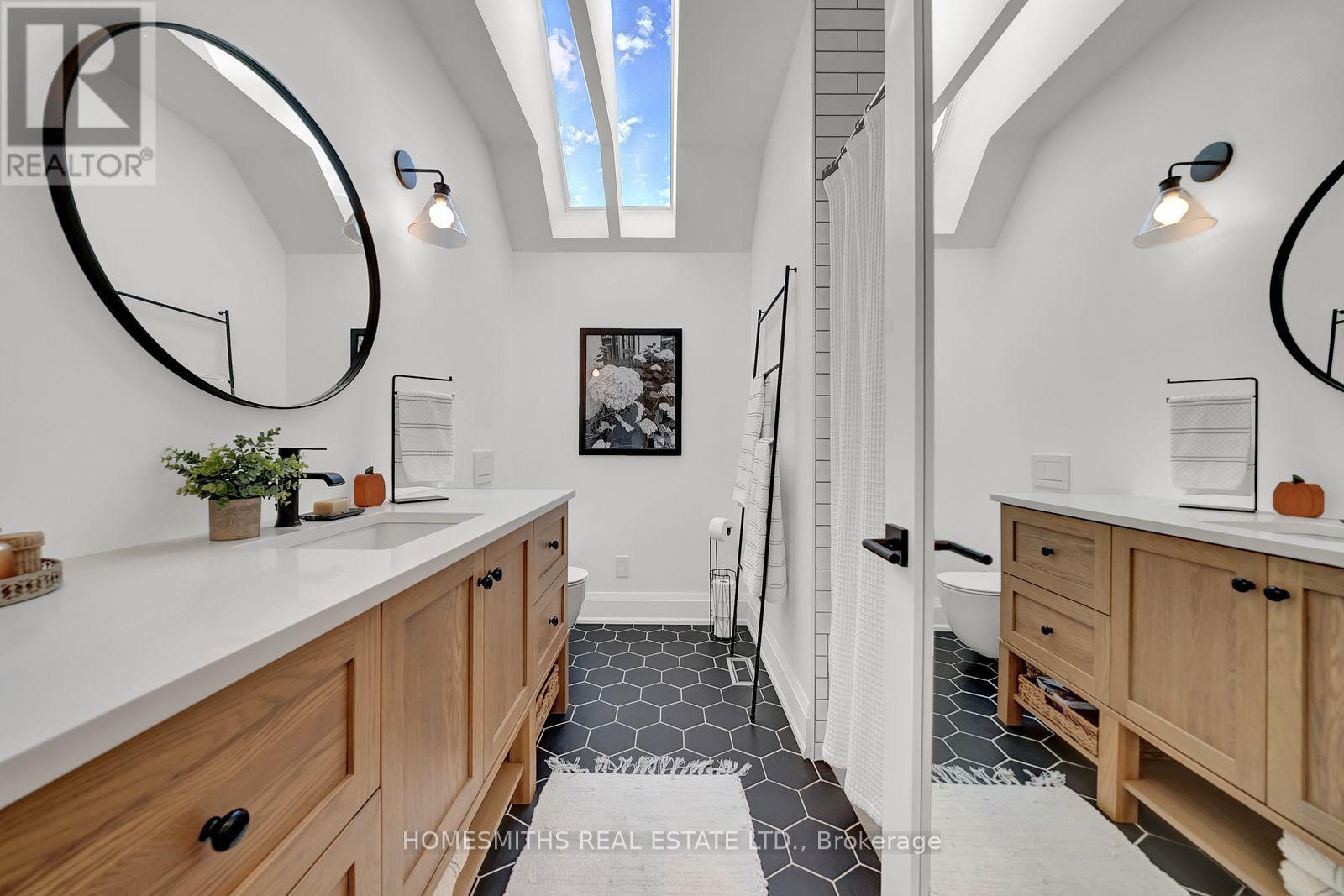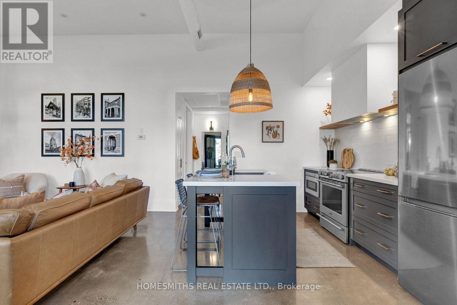 Welcome to 288 Beaver St S Newcastle, "The Carriage House" inspired by the character & aesthetic of a classic century carriage house this beautifully designed & unique offering combines modern amenity & efficiency w/ traditional charm & craftsmanship. Situated on a mature tree-lined street in the heart of Historic Downtown Newcastle walking distance to all amenities, schools, quaint shops/pubs/restaurants, 1 minute to Hwy 401 & under 1 hr to downtown T.O. Beautifully landscaped front exterior leads to a traditional front porch with bright entry with exposed brick interior wall & soaring 12-foot ceilings throughout the m/f. Ground floor features a beautifully appointed fully self-contained ADU apt with open-concept layout, large living area with gas f/p, custom kitchen w/ center island & quartz counters, large bedroom, three-piece bath w/ huge glass shower & en-suite laundry. Independent entry, heating/cooling making this space ideal for in-law, air bnb/income producing rental. The main house features a large m/f office/flex space, well suited for future bedroom, studio/gym/recreation rm or home based business, with a walkout to a covered rear porch & fully fenced backyard. Interior entry to heated & cooled 3+ car garage w/ 12-foot ceiling, epoxy floor & drive-through o/h door to the rear yard. Feature staircase up to the incredible 2nd floor with a gorgeous open living area with beamed cathedral ceilings, a custom kitchen w/ large center island, lux appliances, ensuite laundry & breakfast/dining area with a w/o to elevated rear deck o/l the backyard, surrounded by mature trees providing privacy & summer shade. Spacious primary suite with skylit ensuite bath with dual vanity & large shower, 2nd bdrm with 2nd skylit ensuite & dble closet. Classic wide plank engineered French Oak h/w floors through the 2nd floor, unique polished concrete terrazzo floor on the m/f. This is a show stopping, one of a kind, multidimensional home in a fantastic location. See Virtual Tour. (id:61423)