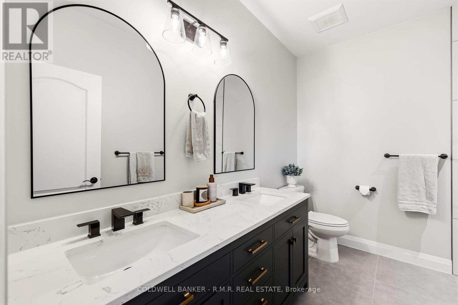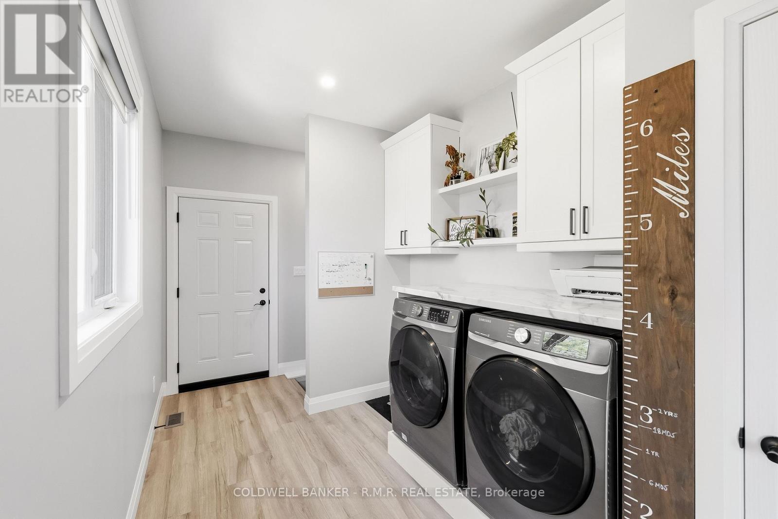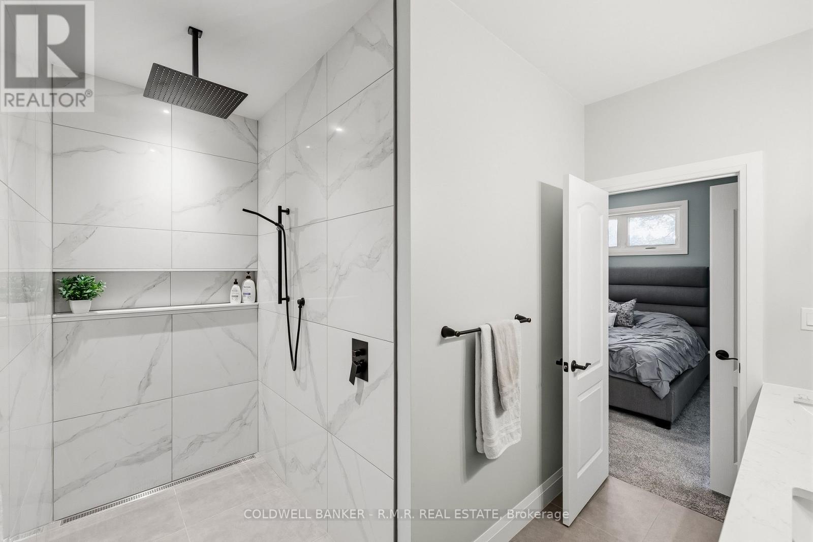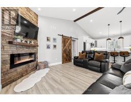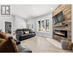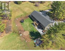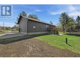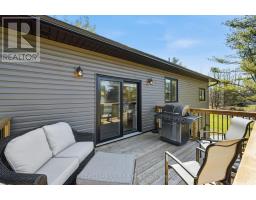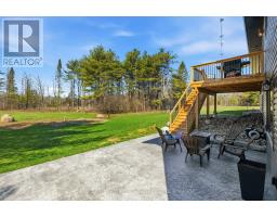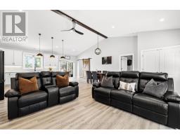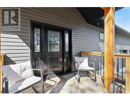 Welcome to this custom-built bungalow tucked away on a private country lot at the end of a paved cul-de-sac, surrounded by mature trees and offering desirable east/west exposure. Thoughtfully designed with 3 bedrooms and open-concept main-floor living, this home features 9' ceilings throughout and an impressive 12.5' vaulted ceiling in the living room. The kitchen is well appointed with a center island, ample storage, and patio doors leading to the deck-perfect for outdoor entertaining. The primary suite boasts a walk-in closet and a 4-piece ensuite with an enormous walk-in shower. Enjoy the convenience of main-floor laundry with direct access to the oversized garage. The fully finished walk-out basement offers a spacious rec room with large windows, a den, rough-in plumbing for a wet bar, and a 3-piece bath complete with a walk-in shower, seat, and linen closet. Exterior highlights include tremendous parking, a circular driveway, armour stone landscaping, and a stamped concrete patio area. Additional features include custom window coverings, propane forced-air heating, and a heat pump. A rare combination of privacy, quality craftsmanship, and functional living-this property truly has it all. (id:61423)