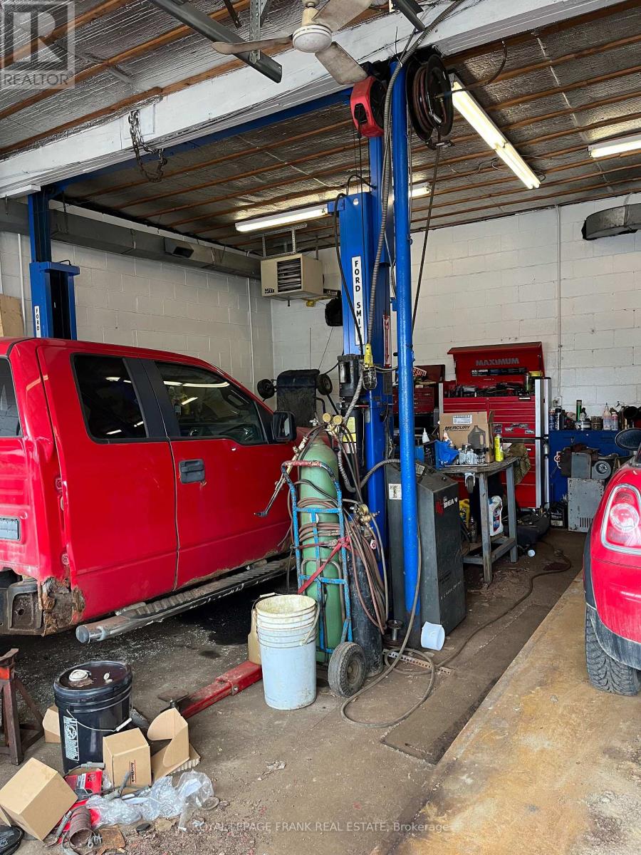 Exceptional live/work opportunity! Experience the perfect blend of home comfort and business potential with this one of a kind property. The 1,200 sq. ft. residence offers 4 spacious bedrooms, 1 updated bath, a modernized kitchen, and a finished basement, ideal for family living or extra workspace. A detached two-car garage and workshop is a dream setup for hobbyists or professionals, featuring oversized doors, two hoists, a compressor, and duel 200-amp hydro panels. Whether you're into automotive work, trades, or creative projects, this space has you covered. Adding to its versatility, the property includes a separate retail area and office, complete with two washrooms, the perfect setup for a storefront, studio, or small business. With easy highway access, a circular driveway and ample parking, convenience is built right in. Live, work, and grow - all in one property. Property sold in "As Is, Where Is" condition. (id:61423)