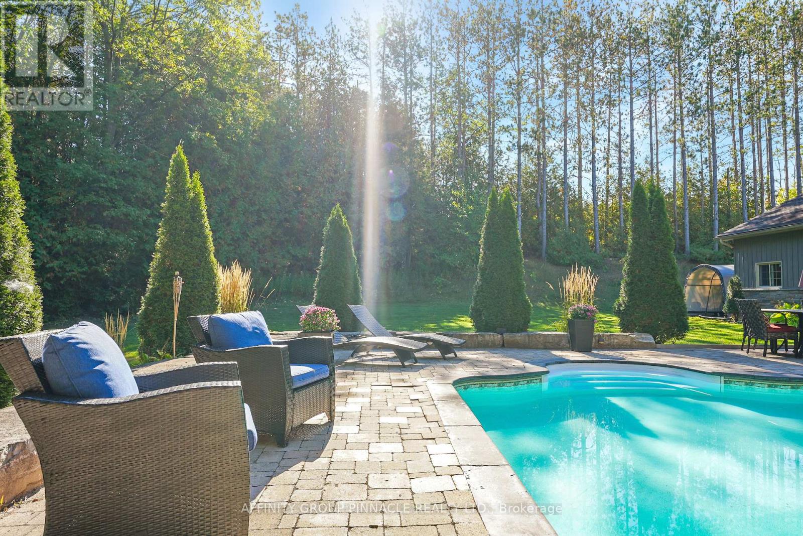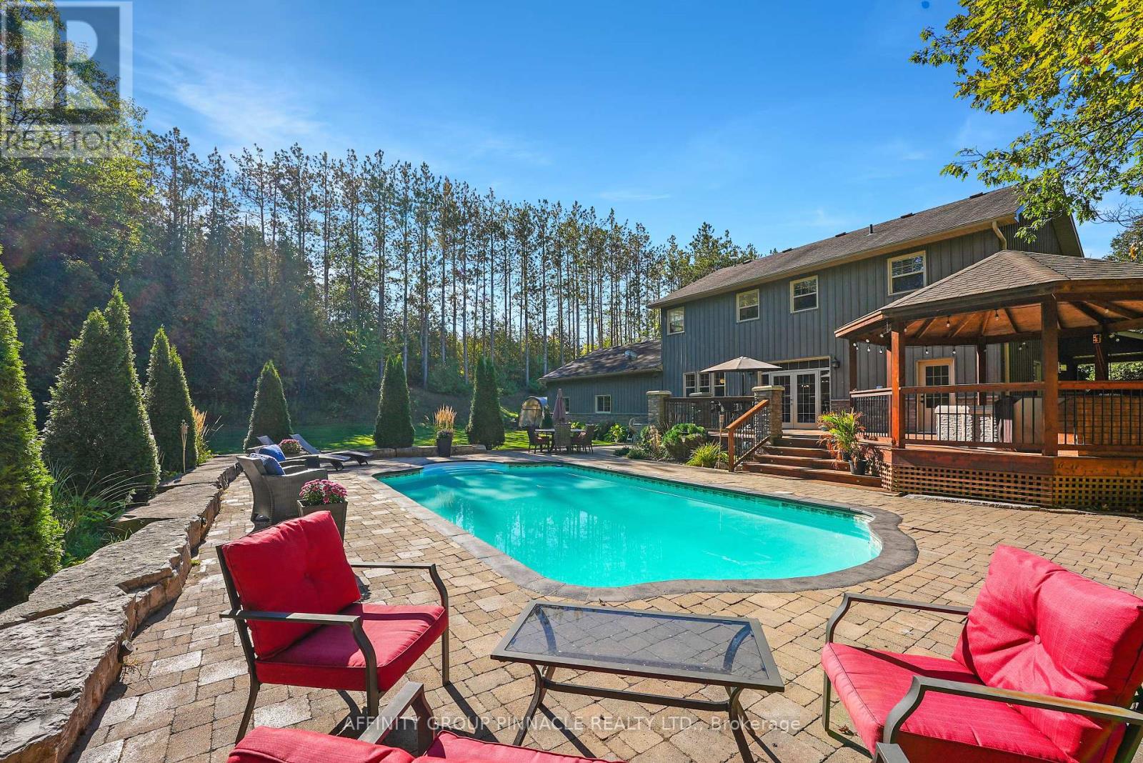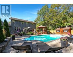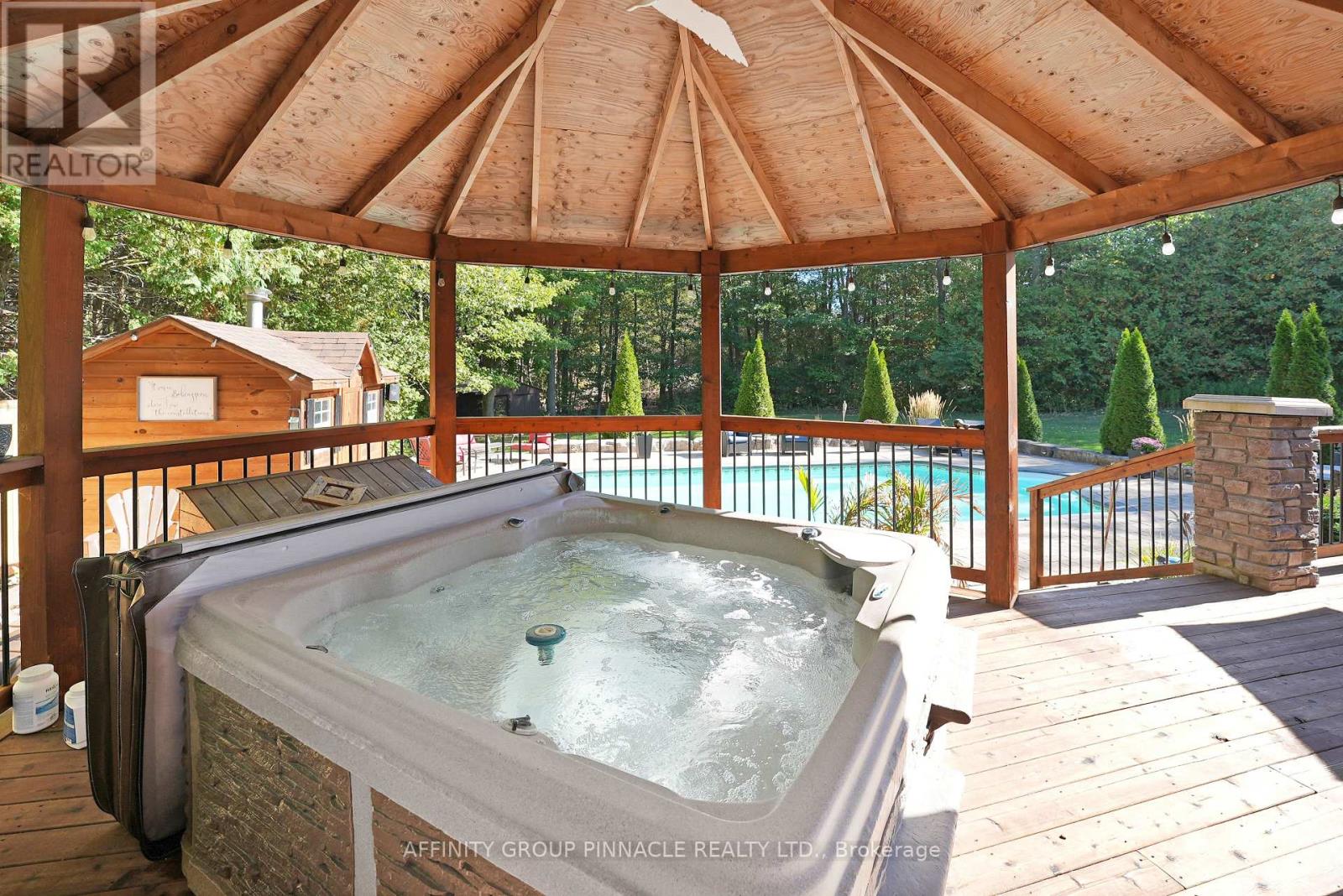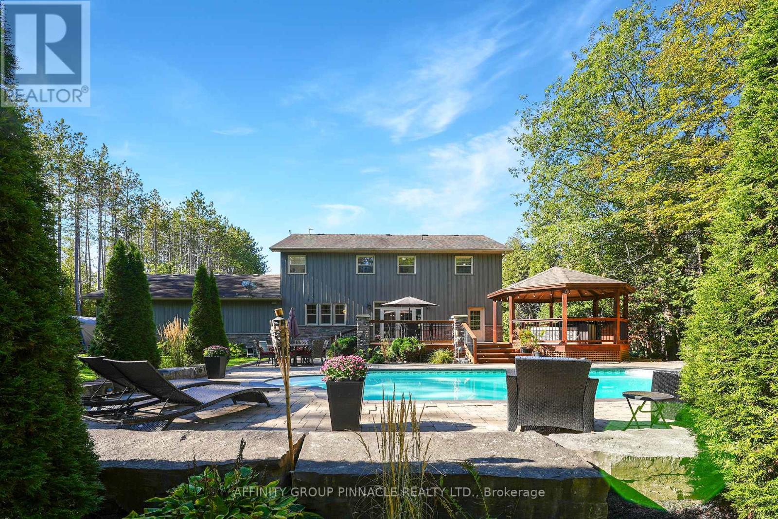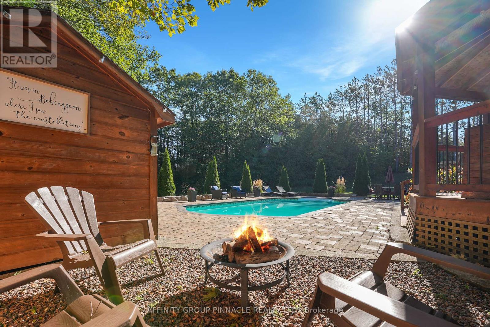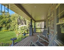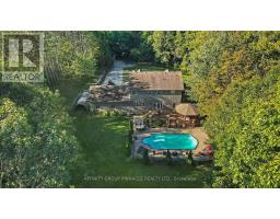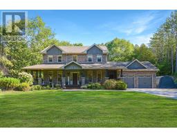 Tucked away in a serene forest with a winding driveway that leads to sprawling over 2500 sq ft custom home on a 4 ACRE Lot. This property is secluded, surrounded by towering trees and away from the hustle. The character of the home garners attention with the stone exterior, covered front porch and beautifully landscaped yard. This property is ideal for entertaining with features like the scenic pool, covered hot tub, massive deck, all contributing to a backyard oasis. The home has an attached 2-car garage plus extra storage onsite. Enter the home and notice the elegant kitchen with high-end S/S appliances, tons of cabinet space, pantries, and open concept dining. Wander into the cozy living room and enjoy the classic stone fireplace. In total, this house has 3 bedrooms and three bathrooms. The primary B/R includes an ensuite with a luxury tile shower and soaker tub. The basement is already framed with high ceilings ready for completion. Check out the spacious mudroom with garage access. Quiet country properties like this are rare to find! And only stones throw away from the local bakery and elementary school. 15 min to Lindsay / 15 min to Peterborough. This property is private, elegant and undoubtedly sets itself apart from other rural homes. (id:61423)