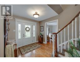 Meticulously maintained and situated on a desired court setting, this all-brick 4-bedroom home, on a deep approx 132ft lot, offers exceptional family living just minutes from the charming town of Newcastle. From the moment you arrive, the stunning interlock walkway, gardens, and expansive covered front porch create a warm and inviting first impression. No sidewalk to shovel also allows for 4 parking spots in the driveway. Step inside to a welcoming foyer with hardwood flooring and double closet, leading to spacious principal rooms designed for everyday comfort. The bright, eat-in kitchen features hardwood flooring, quartz countertops, tile backsplash, abundant cabinetry, and plenty of windows overlooking the backyard. Open to the kitchen, the inviting family room is the perfect gathering space with hardwood flooring, pot lighting, and a gas fireplace. Host memorable dinners in the formal dining room with hardwood flooring and crown moulding, while the separate living room offers additional space to relax or entertain. Convenient main floor laundry, with interior garage access, adds to the home's practical layout. Upstairs, you'll find four generous bedrooms, ideal for growing families. The spacious primary retreat includes a walk-in closet and luxurious 5-piece ensuite complete with double sinks, soaker tub, and tiled walk-in shower. Each additional bedroom offers double closets for excellent storage. Outside, enjoy your own private and manicured backyard, fully fenced with no neighbours behind. Mature trees & shrubs, a beautiful interlock patio, and a shed with hydro, make this outdoor space perfect for relaxing, gardening, or summer entertaining. The unfinished basement is ready for your personal vision, whether you dream of a recreation room, home gym, or additional living space. Interior access to the insulated double garage with heater. A wonderful opportunity to own a lovingly cared for home in a desirable location close to amenities and commuter routes. (id:61423)