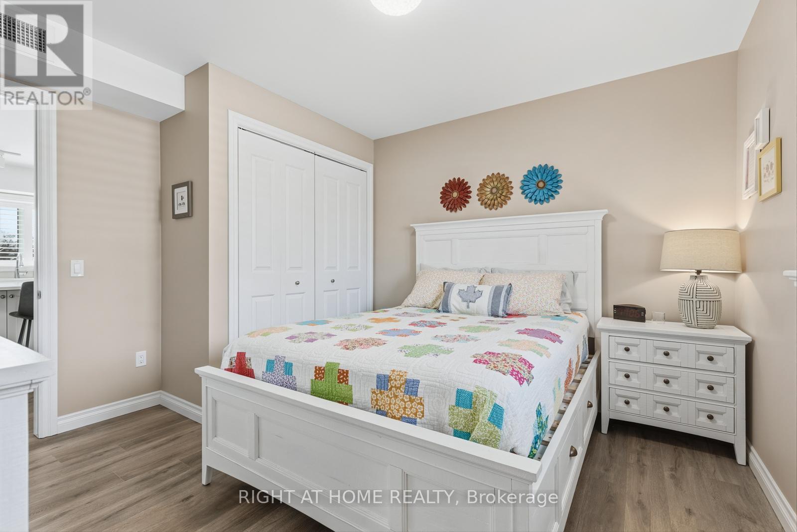 Welcome to this stunning top-floor, end-unit condominium in the highly sought-after Pyjama Factory-a newer (2019) boutique building beautifully located along the north shore of the Scugog River. Offering exceptional privacy, natural light, and serene surroundings, this 2-bedroom, 2-bath residence delivers both comfort and lifestyle.Step inside through the secure front foyer and enjoy elevator access to your floor. The open-concept layout showcases a stylish kitchen featuring quartz countertops, custom island, stainless steel appliances, and elegant wood cabinetry, flowing seamlessly into the bright living space. Enjoy breathtaking views of the dam, falls, and Lock 33 right from your kitchen window.The spacious primary bedroom offers a private ensuite with a walk-in tiled shower, creating a true retreat. Additional features include in-suite laundry, air conditioning, one dedicated parking space, guest parking, and a storage locker.Residents enjoy access to premium amenities, including a same-floor fitness room, party room, community BBQ area, and a beautiful riverside terrace. Located beside the Victoria Trail, this home is perfect for walking and biking, and just a short stroll to downtown shops, restaurants, and the historic Academy Theatre.All-inclusive maintenance fees cover heat, hydro, water, and building upkeep-offering exceptional value and peace of mind.A rare opportunity to own a quiet, top-floor unit in one of the area's most charming and well-located communities. (id:61423)