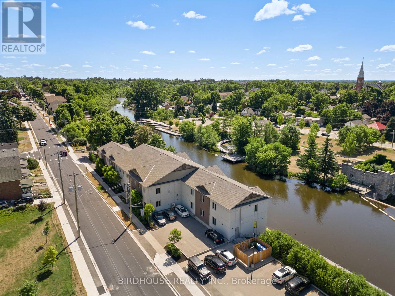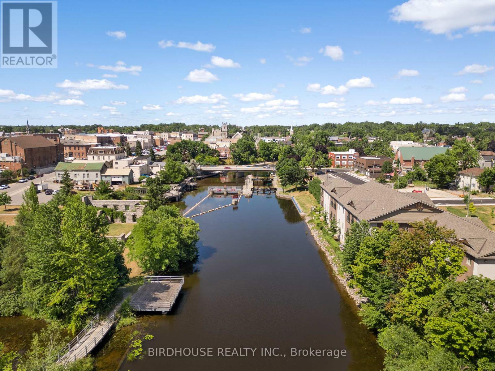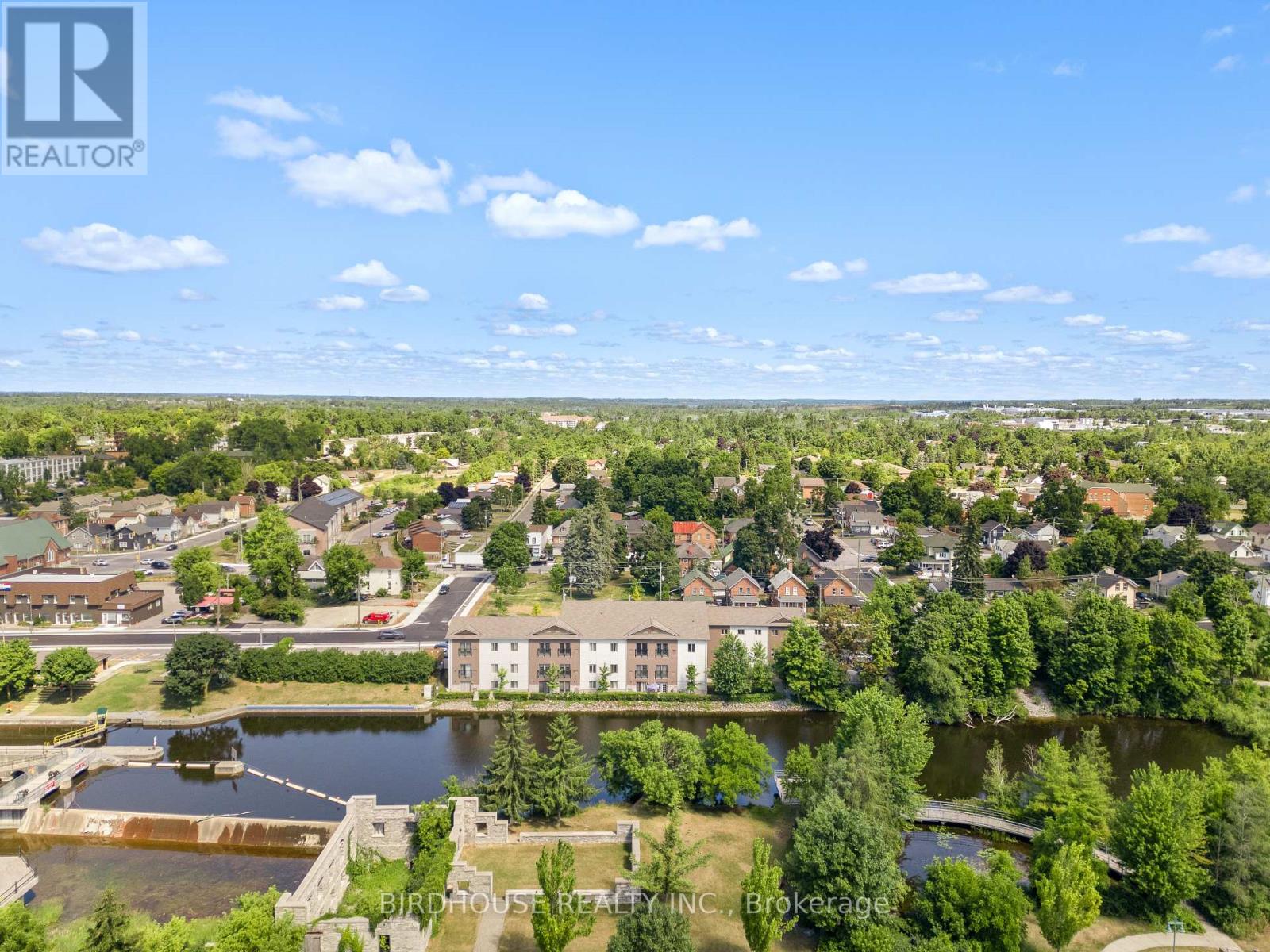$830.13 MonthlySTUNNING 2 bedroom 2 bath end unit on the top floor! Situated along the Scugog River, with beautiful views of the falls & Lock 33. Enter through the secured front foyer & skip the stairs by taking the elevator. The condo unit features an open concept living room & gorgeous kitchen with stainless steel appliances, large island and quartz countertops. Spacious primary bedroom features an ensuite with walk-in tiled shower. This unit includes in suite laundry, air conditioning, dedicated parking, guest parking, a storage locker plus access to common exercise room (same floor), party room & outdoor BBQ terrace area. Located beside the Victoria Trail, this condo is perfect for those who enjoy walking and biking, plus is just a short stroll to downtown shops, restaurants, and shows! (id:61423)