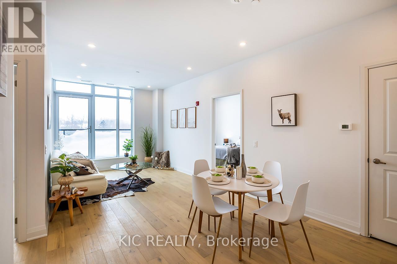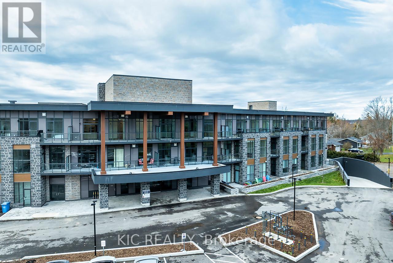 $649.51 MonthlyThe Moorings on Cameron offers luxury lakeside living in a wonderful, waterfront community! Prime location on the sparkling shores of Cameron Lake and steps to the Victoria Trail! Stunning and bright, 2-bed, 2-bath suite with 989 sq ft, 9 ft ceilings, extra large windows, and an open-concept layout. Upgraded kitchen with quartz counters, under-cabinet lighting, and stainless-steel appliances. Bright living area with walk-out to oversized terrace offering panoramic views and gas BBQ hookup. Primary suite features walk-in closet and spa-like ensuite with walk-in shower. Second bedroom ideal for guests or home office. In-suite laundry with storage. Additional 4 pc bath with tub. Engineered hardwood flooring and porcelain tile throughout. Includes large underground parking spot and locker. Resort-Style amenities include lake view fitness centre with state of the art equipment, yoga studio and sauna, owners lounge with full kitchen and tv/movie theatre and large lakeview terrace to enjoy anytime with stairs leading to waterfront, 2 guest suites available on site, outdoor heated pool & hot tub, tennis/pickleball courts, landscaped grounds, and future on-site boat slips and lakeside swim platform to be available. Just steps to trails, shopping, dining, and minutes to Lindsay & Bobcaygeon. Less than 90 minutes to the GTA, heat and internet included. Tarion Warranty in place. (id:61423)