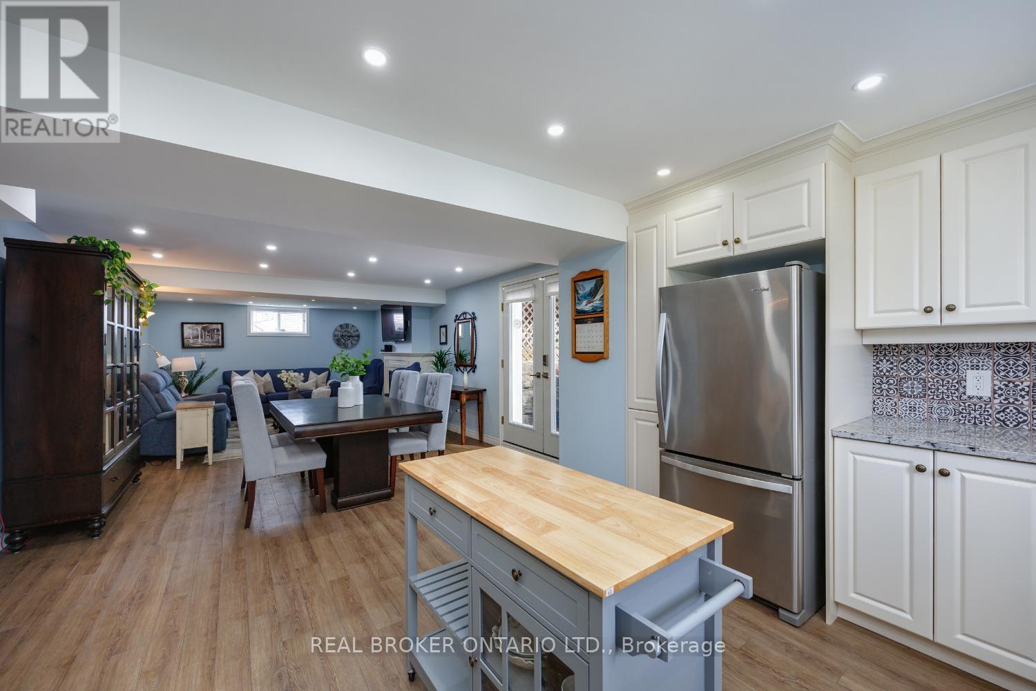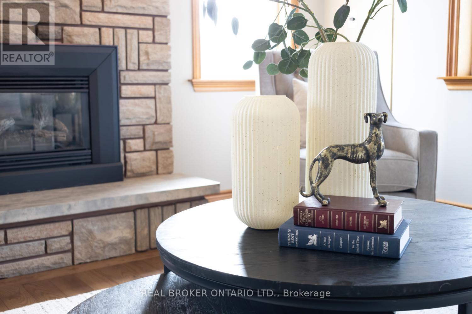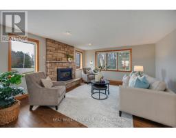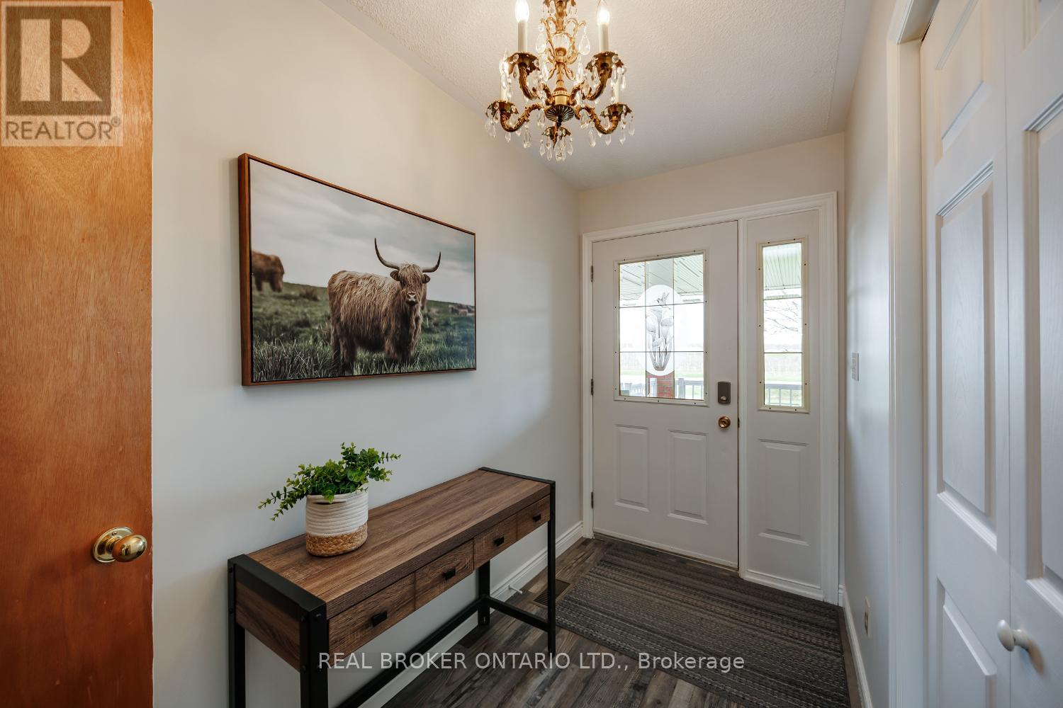 Discover the perfect blend of peaceful country living and everyday convenience in this all brick bungalow set on approx. one acre. Offering privacy, space, and versatility, this home is just a short drive to local amenities, delivering the best of both worlds. A welcoming covered front porch leads into a warm, well-maintained interior. The spacious kitchen features granite counters, a tile backsplash, and abundant cabinetry and prep space, overlooking a bright dining area with large windows and a walk-out to the deck, perfect for outdoor dining and entertaining. The inviting living room showcases rich hardwood flooring and a gas fireplace with a stone accent wall and mantle. Convenient, main floor laundry, adds to the ease of everyday living. Three bedrooms are located on the main level, all with hardwood flooring, including one currently set up as a home office with custom built-ins and desk, ideal for remote work or study. The fully finished, walk-out basement, offers impressive, additional living space, with large, above-grade windows and an open concept layout. A stylish wet bar with granite counters and ample cabinetry overlooks the dining and living areas, perfect for entertaining or multi-generational living. Two spacious bedrooms with large windows and double closets complete the lower level. Car enthusiasts and hobbyists will appreciate the attached two car garage with interior access, plus a detached, approx 24ft x 24ft, insulated and heated garage. Two driveways provide tons of parking space. Equipped with a Generac backup generator for added peace of mind, this home offers space, comfort, and functionality in a setting close to everything you need. (id:61423)