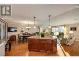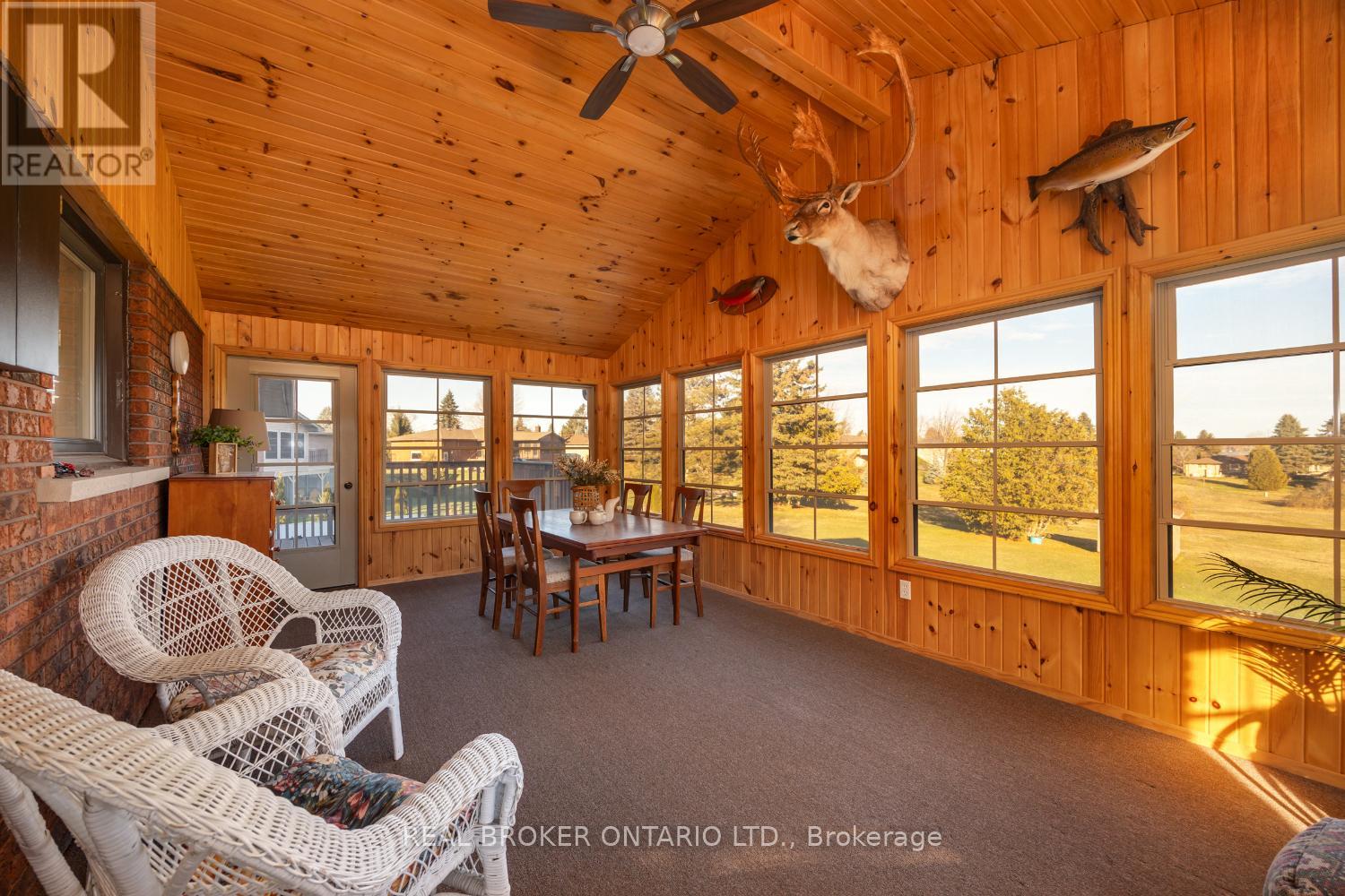 Nestled in the sought-after adult waterfront community of Victoria Place, this raised bungalow offers comfort, convenience, and an active lakeside lifestyle just minutes from Bobcaygeon. Residents enjoy access to two sand beaches, a dock slip on Pigeon Lake, a community centre, pool, tennis/ pickleball court, and a calendar of activities. Inside, the home features a bright, open-concept kitchen, dining, and living area, complete with gleaming hardwood floors. A walk-out from the dining area leads to a spacious, seasonal sunroom, perfect for relaxing and taking in the view of the lake. The main floor has two bedrooms including the primary bedroom and 3-pc main bathroom. The finished, lower level, with above-grade windows, offers exceptional additional living space. It boasts a third bedroom, a large rec room with a propane fireplace and a walk-out to the patio, a laundry room with a walk-out to the yard and an office with a convenient walk-up to the garage, which all add everyday functionality. Step outside to enjoy the deck and patio, overlooking the generous yard, ideal for quiet mornings or hosting friends. Explore the historic Trent Severn Waterway and take in everything the Kawarthas has to offer. Annual community fee: $780. (id:61423)