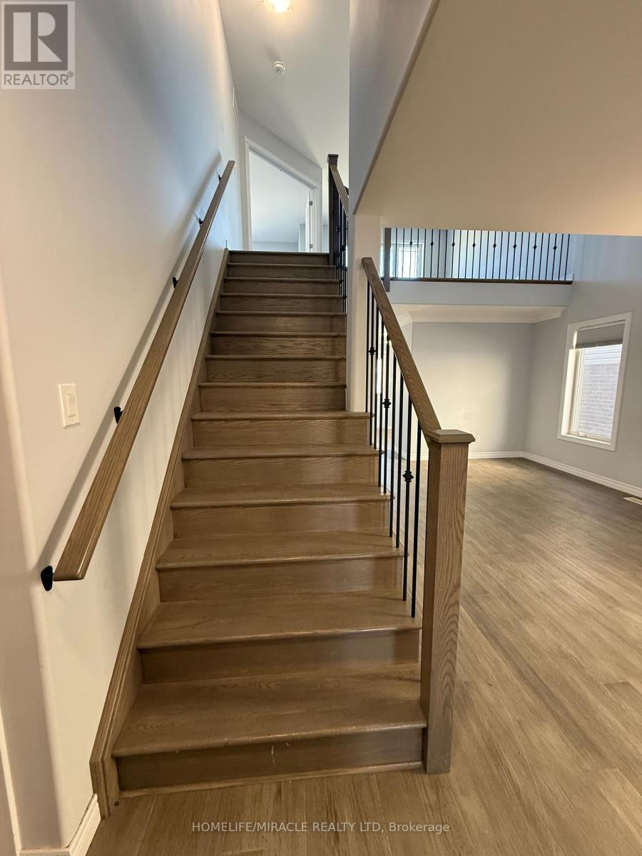 Beautifully crafted all-brick detached residence with nearly 3,600 sq. ft. of living space. This home showcases 5 generously sized bedrooms, including a primary suite with a walk-in closet and a 4-piece ensuite. Designed for modern living, the main floor features 9' ceilings, hardwood floors, and an elegant oak staircase. The chef-inspired kitchen offers quartz countertops and opens to a spacious great room with a gas fireplace. Step out from the dining area onto a 10' x 12' deck, perfect for gatherings. Comes complete with stainless steel appliances-fridge, stove, dishwasher, range hood, washer & dryer. Conveniently located just 45 minutes from the GTA with quick access to Highways 115, 401 & 407. Don't Miss out! (id:61423)