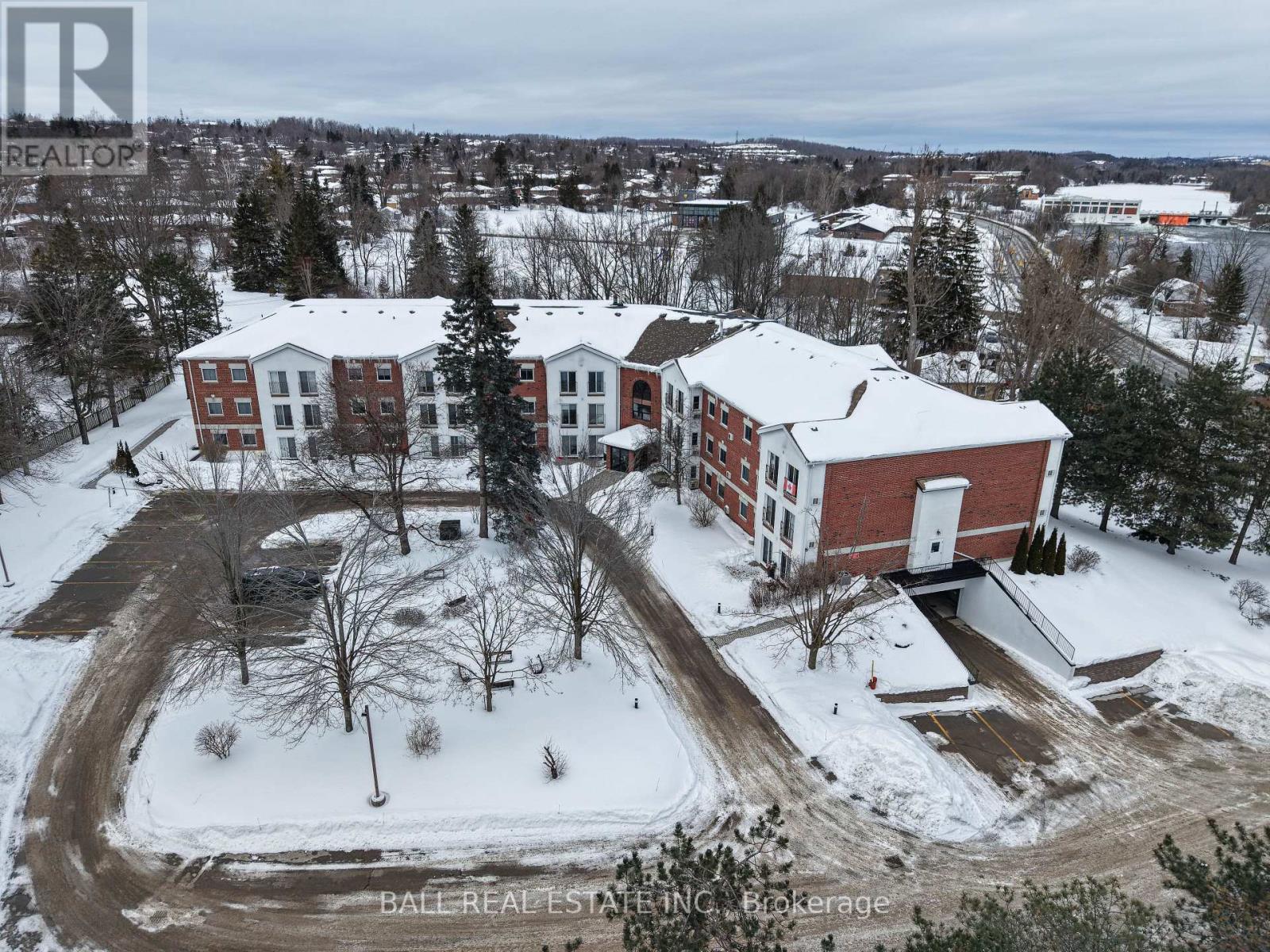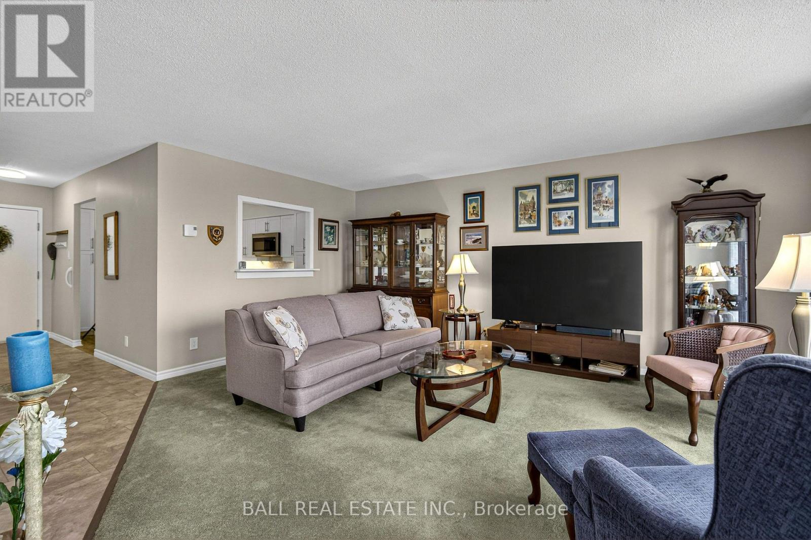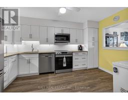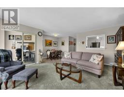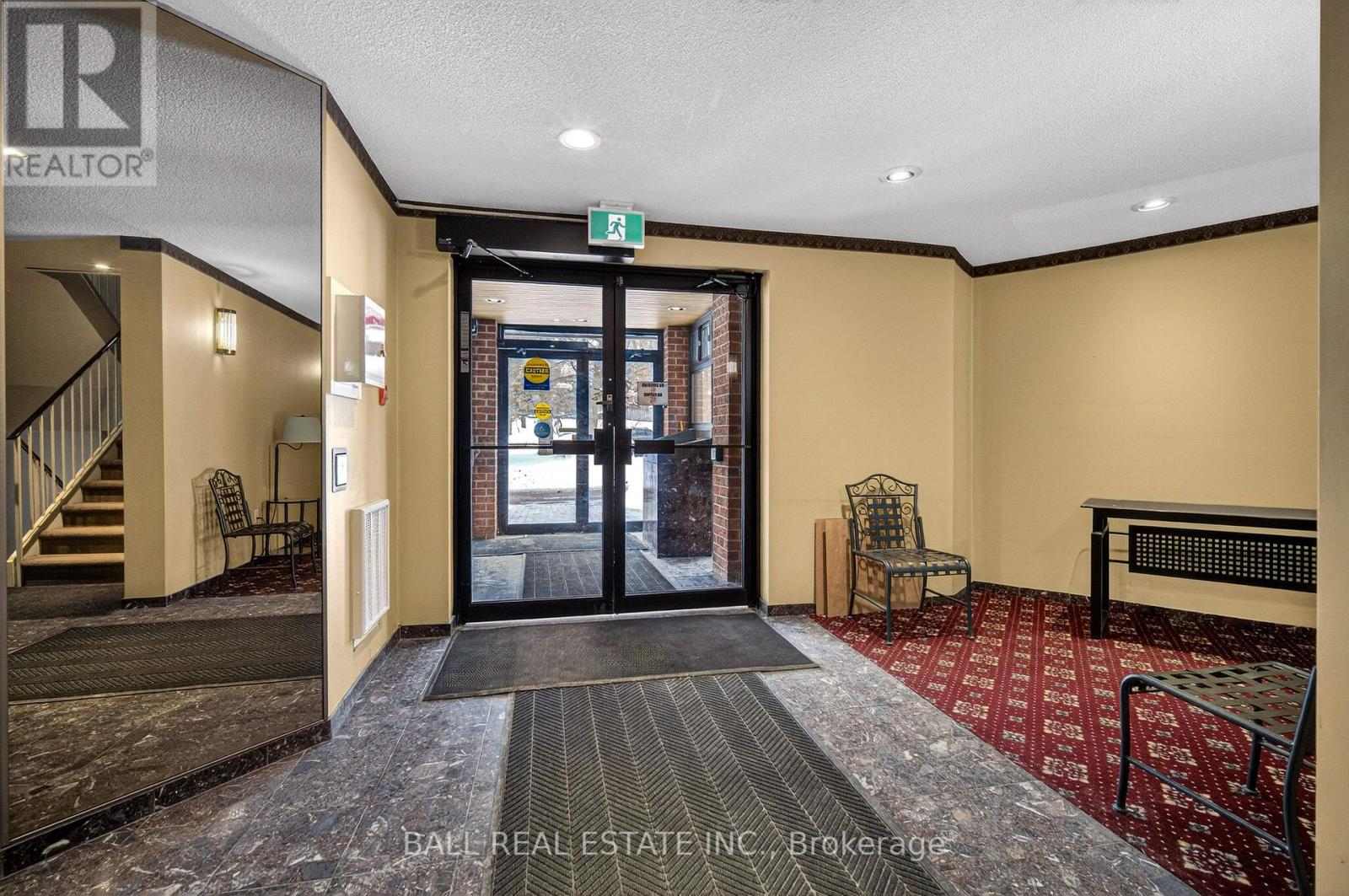 $643.56 MonthlyTHE MAPLES - one of Peterborough's most desired condominium communities, located beside Bear Creek and across from the Otonabee River! Offering 999 sq ft of carefree living space in this beautifully updated 2-bedroom, 2-bathroom condo making it perfect for downsizers or anyone looking for low-maintenance living. Move in ready. The bright, North/East facing living and dining area is open and inviting, featuring updated lighting and three large patio doors offering an abundance of natural light. The newly updated kitchen showcases classic white cabinetry with pot drawers, soft close doors, pantry, quartz countertops, new appliances and flooring. Bonus office nook with patio door for natural light. The generous primary bedroom includes a double closet and an extra closet for linen. A second bedroom for guests with a closet. The four-piece bathroom has been tastefully updated with quality finishes. Additional highlights include in-suite laundry, a separate storage unit, heated underground parking, and a secure entry system. Residents enjoy excellent shared amenities such as an exercise area, library, common lounge/meeting room, visitor parking, and beautifully landscaped grounds. Conveniently situated close to shopping, dining, public transit and Riverview Park. With comfort and a carefree lifestyle making this the perfect place to call home! (id:61423)