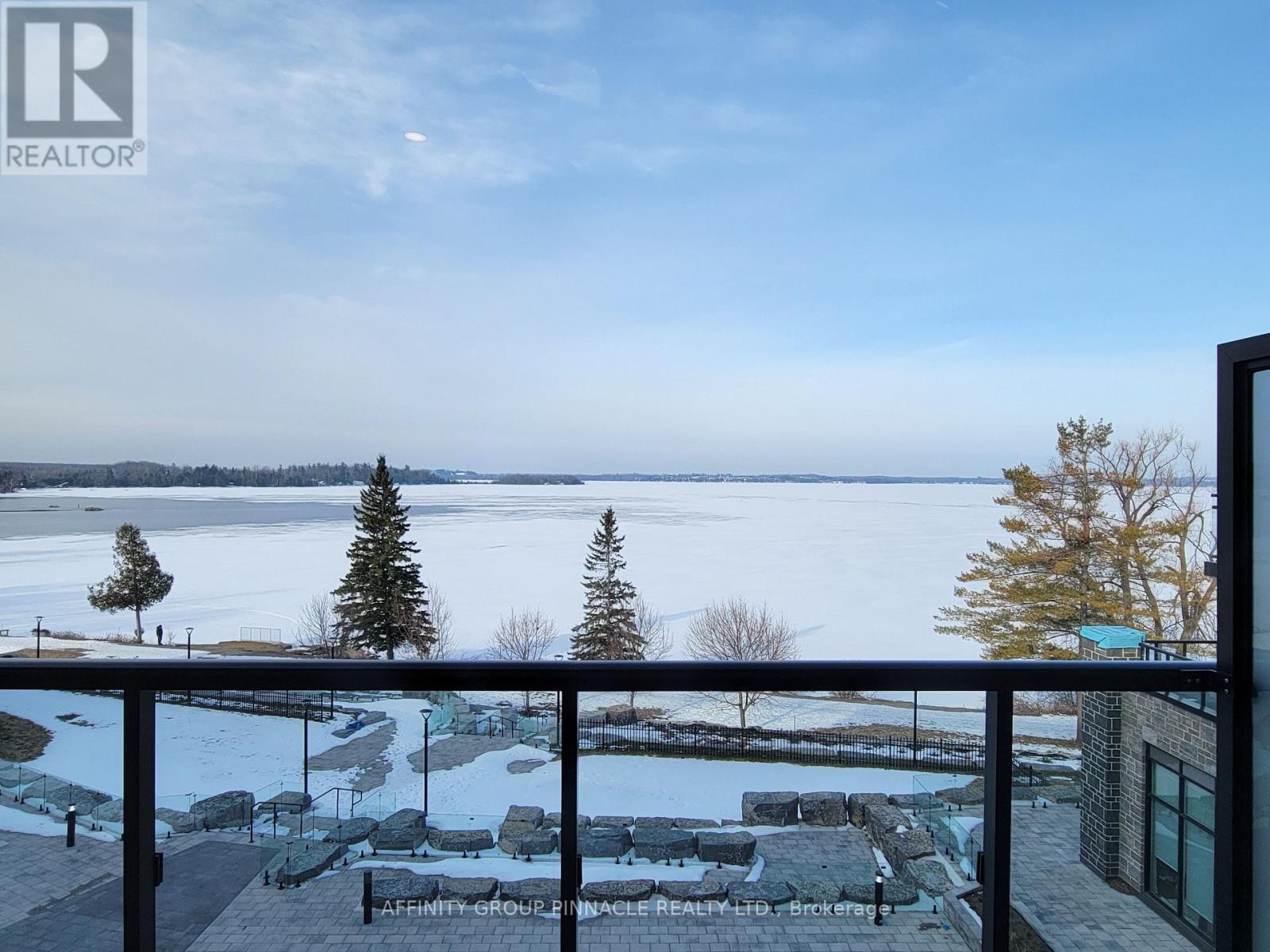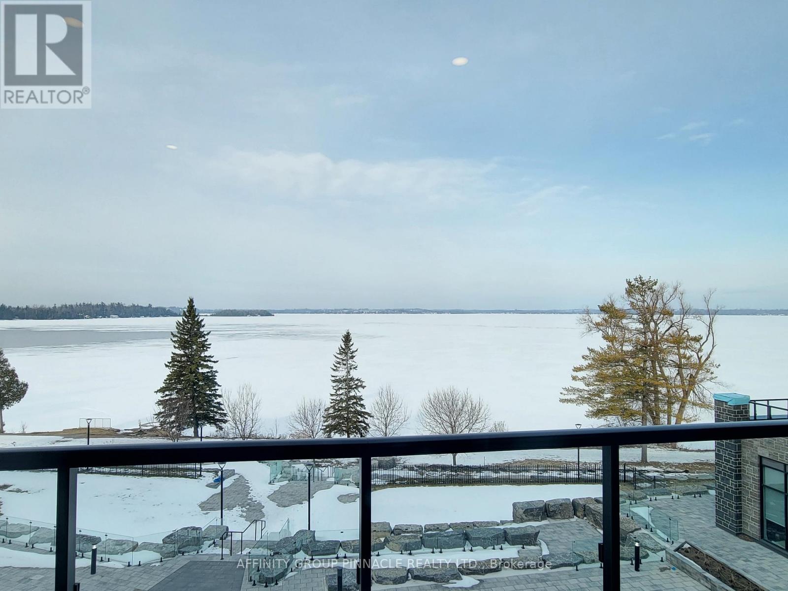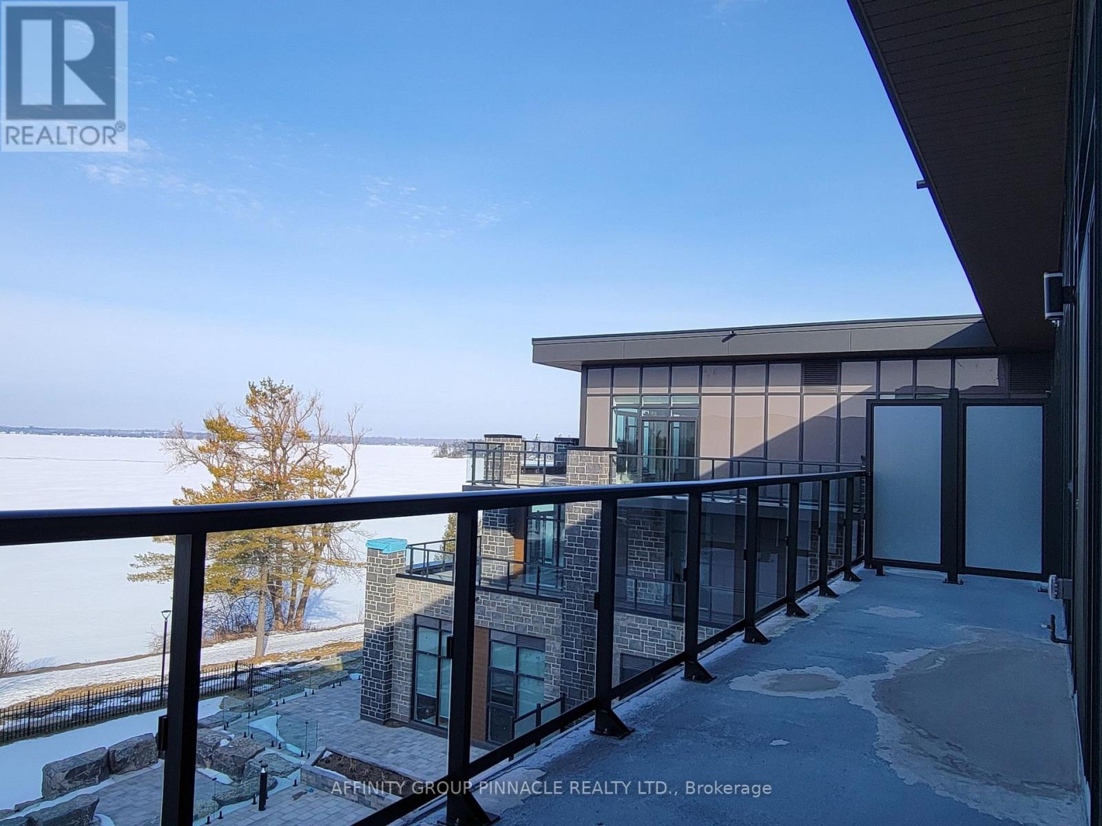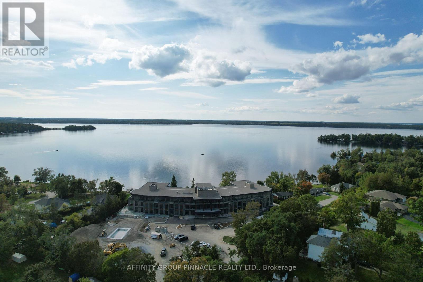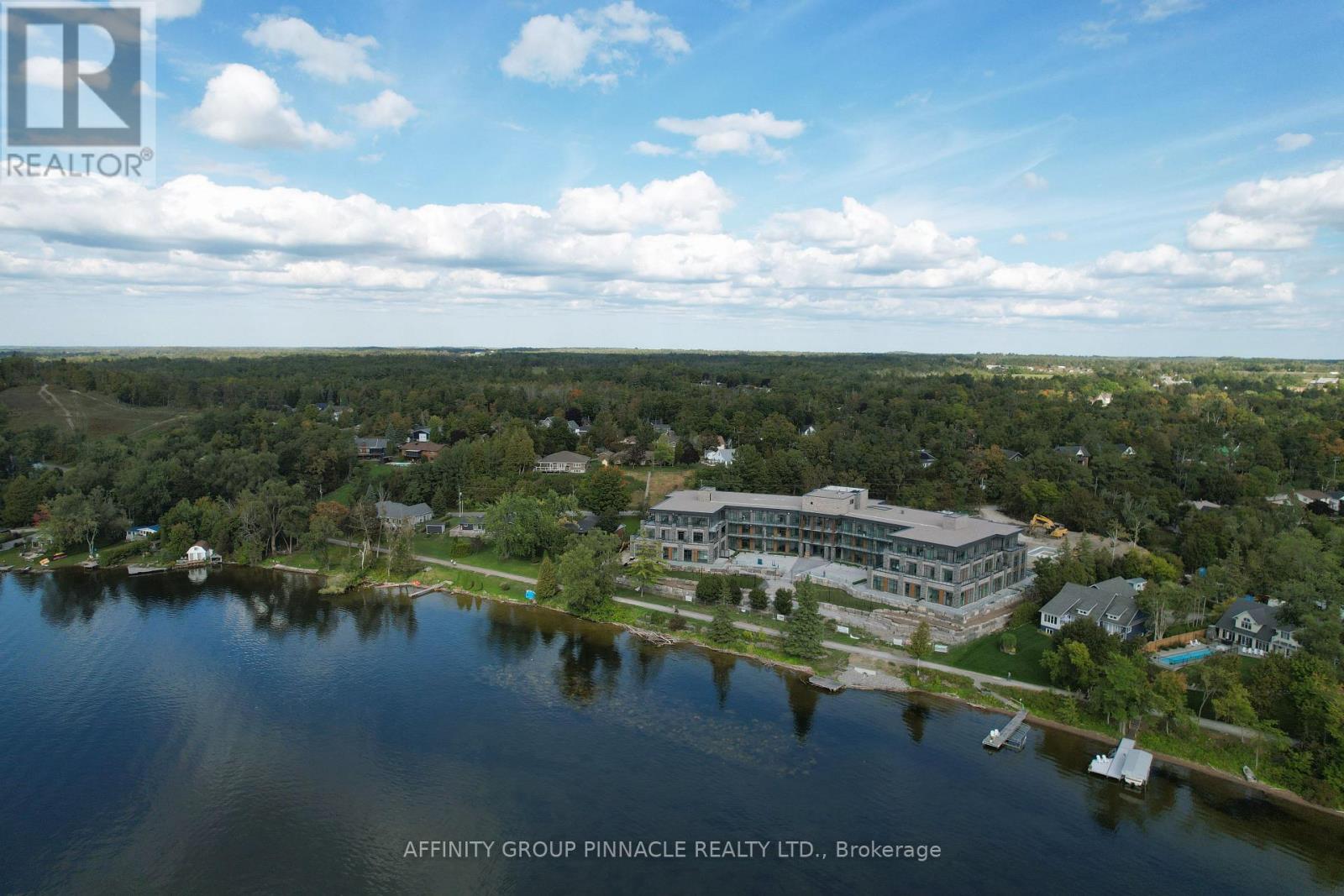 The Moorings on Cameron Lake offers luxury condominium living in the heart of Kawartha Lakes. Enjoy Blazing sunsets with unobstructed views of Cameron Lake. Suite 309 located on the Top Floor as a two-bedroom, two-bath suite measuring 1,087 square feet, with 9-foot ceilings and abundant windows. The interior features engineered hardwood and porcelain tile floors, stainless steel KitchenAid appliances, quartz countertops, in-suite laundry with Whirlpool washer/dryer and bar fridge. The primary bedroom includes a four-piece ensuite, walk-in closet, and access to a balcony equipped with a natural gas line for a barbeque. The unit also provides a secure, underground parking spot with a roughed-in EV charging outlet and a private storage locker. Building amenities are exceptional. The third-floor owners' lounge, located adjacent to Unit 309, can be booked for private events and offers lake views through wall-to-wall windows. It is fully appointed with a caterer's kitchen, dining seating, fireside lounge, high-top tables, and an in-house theater room featuring cinema seating. The second-floor fitness center offers cardio and weight machines, change rooms, a dedicated yoga/Pilates room, and an attached cedar sauna. Outdoor amenities include a heated pool and spa, tennis/pickleball courts, a lakeside courtyard. Condo fees cover high-speed internet and natural gas; a boat slip is also available for purchase. Located on the shores of Cameron Lake with panoramic sunset views, The Moorings provides residents with a refined and active lifestyle in Fenelon Falls, Ontario. Enjoy biking, hiking, snowmobiling, and ATV activities on the Victoria Rail Trail, boating along the renowned Trent Severn Waterway, and easy access to dining, shopping, and entertainment in historic Fenelon Falls. With contemporary amenities and scenic surroundings typical of the Kawarthas, this condominium offers a low maintenance yet vibrant living experience. (id:61423)